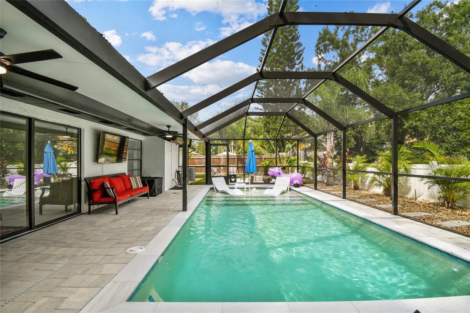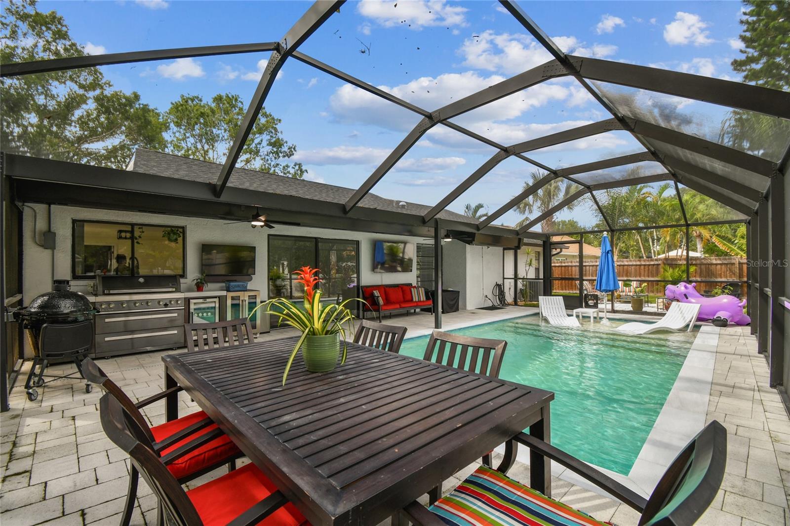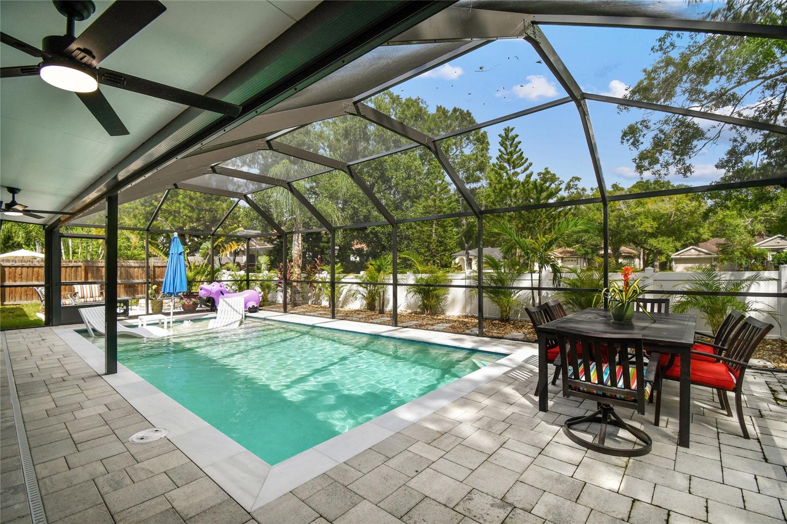 Welcome to this sleek and modern 4 bedroom 2 bathroom home in the heart of "Carrollwood" in the neighborhood of Country Place! As you enter you will notice the classy design this home has to offer. Soaring ceiling in your family room and plenty of nature light. You will enjoy entertaining in this kitchen that offers all the latest style. Stone counter tops and stainless steel appliance show off this roomy eat in kitchen adjacent to the spacious dining room with access to the screen in salt water pool and entertainment area. Laundry room has been converted into a private work space for a work at home option. Down the hallway you will find a lovely primary bedroom and stunning full bathroom with shower and double sink vanity. 3 additional bedroom and updated full bathroom with a double vanity and shower/tub combo. The outdoor space is an oasis on its own. Fully screened in Salt water pool 2024 with concrete pavers and covered cooking/entertainment area with view of the pond. Fire-pit 2024 and so much more. Yard is fully fenced and meticulously landscaped, This home is move in ready!! Low HOA and No CDD!! Roof 2024. Conveniently located to restaurants and shops. This gem is a must see inside-Contact us today for your private showing.