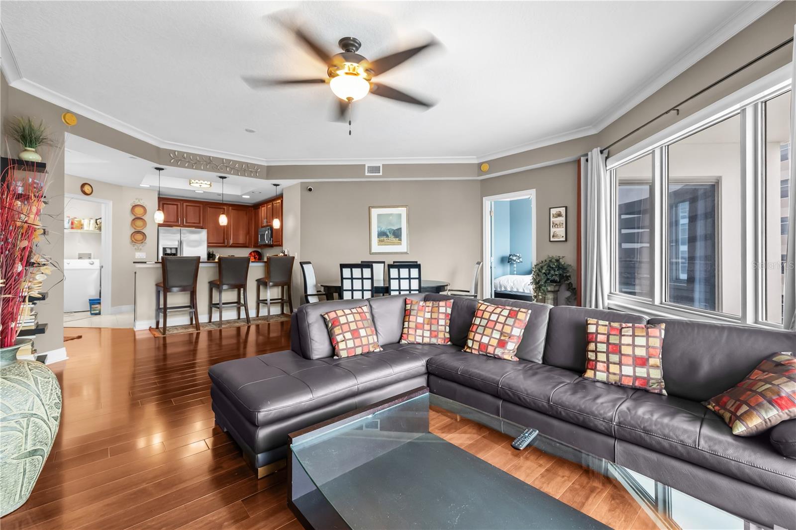 MOTIVATED SELLER, 2026 Taxes to also be paid by seller.Perched on the 7th floor of the Towers of Channelside, this one-of-a-kind luxury residence offers a front-row seat to the energy and evolution of Tampa’s most iconic district. From the moment you enter, your eyes are drawn to sweeping views of Water Street’s architectural marvels, The Heron, and the highly anticipated Phase 2 of Water Street Tampa—a dynamic skyline that continues to redefine luxury living in the city. From sunrise to sunset, your private wraparound terrace captures the unfolding story of Tampa’s growth, offering a vibrant backdrop for every moment. Every detail of this two-bedroom, two-and-a-half-bath residence is designed with both elegance and comfort in mind. Two expansive suites feature spa-inspired ensuite baths and direct access to the terrace for seamless indoor-outdoor living. A stylish powder room adds convenience for guests. Rich hardwood floors, tray ceilings, custom crown molding, granite countertops, and a chef-inspired kitchen with stainless steel appliances create a timeless, sophisticated atmosphere throughout. Whether you’re preparing a gourmet meal, hosting a candlelit dinner, or sipping morning coffee with the skyline as your backdrop, every experience is elevated here. Practical luxury also shines in the details: two secured garage spaces (with extra room for a motorcycle or additional storage), a private oversized storage unit, and the peace of a low-density floor that ensures added privacy. Living in the Towers of Channelside means more than just a home—it’s an exclusive lifestyle. Residents enjoy resort-style amenities, 24/7 security, and one of the most sought-after addresses in Tampa Bay, where the best of downtown, Water Street, Amalie Arena, Sparkman Wharf, and the Riverwalk are just steps away. This is more than a property—it’s a rare opportunity to claim a signature piece of Tampa’s evolving skyline. Turn the key and elevate your life.
