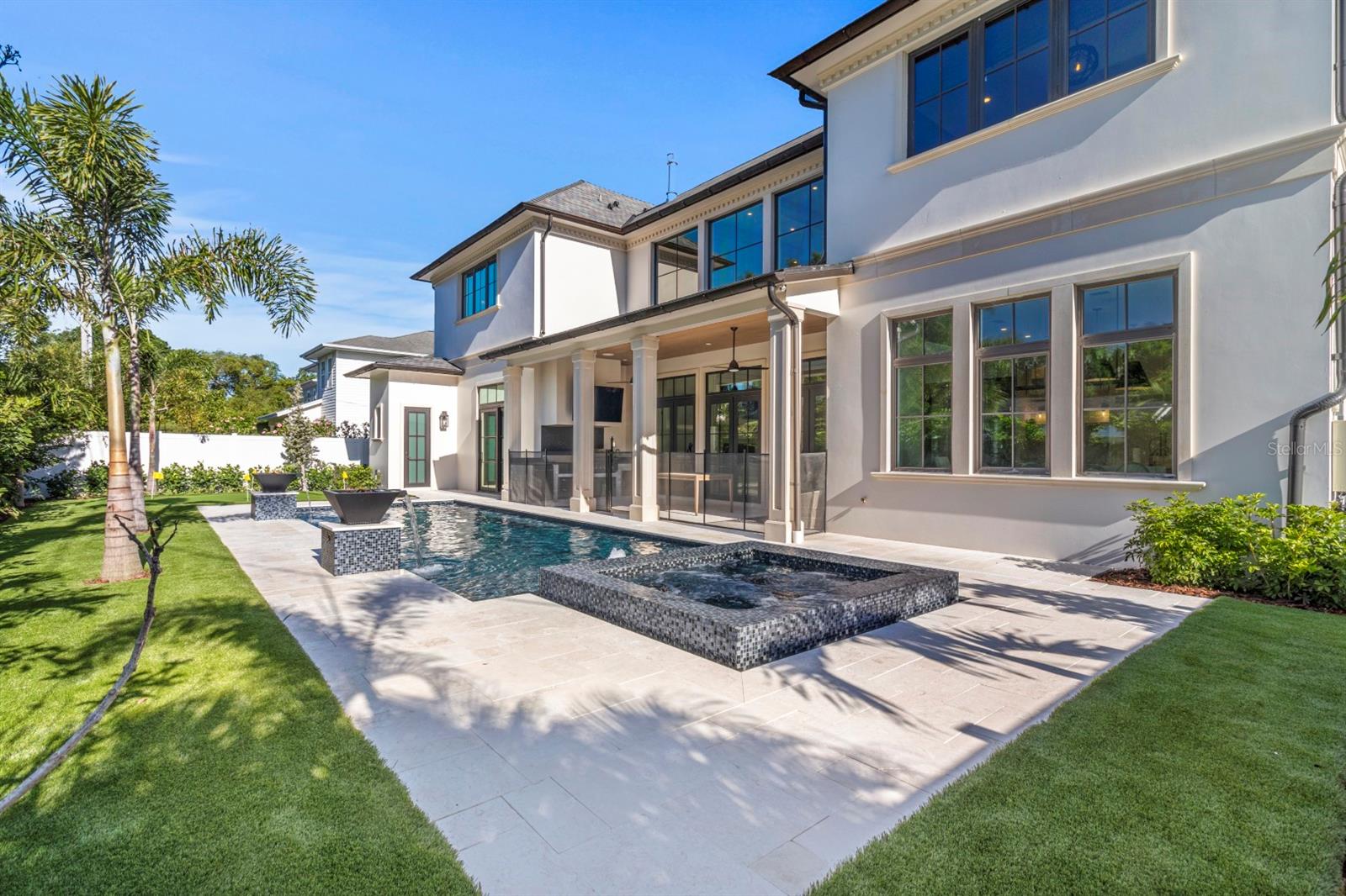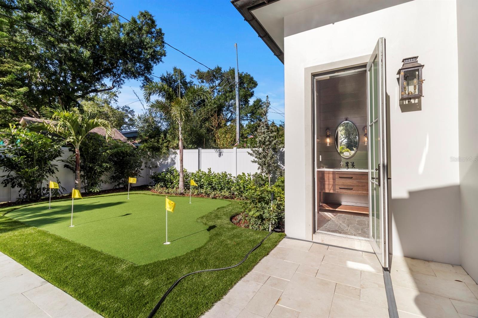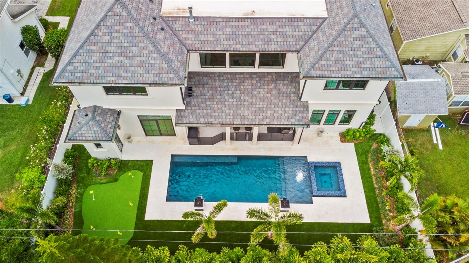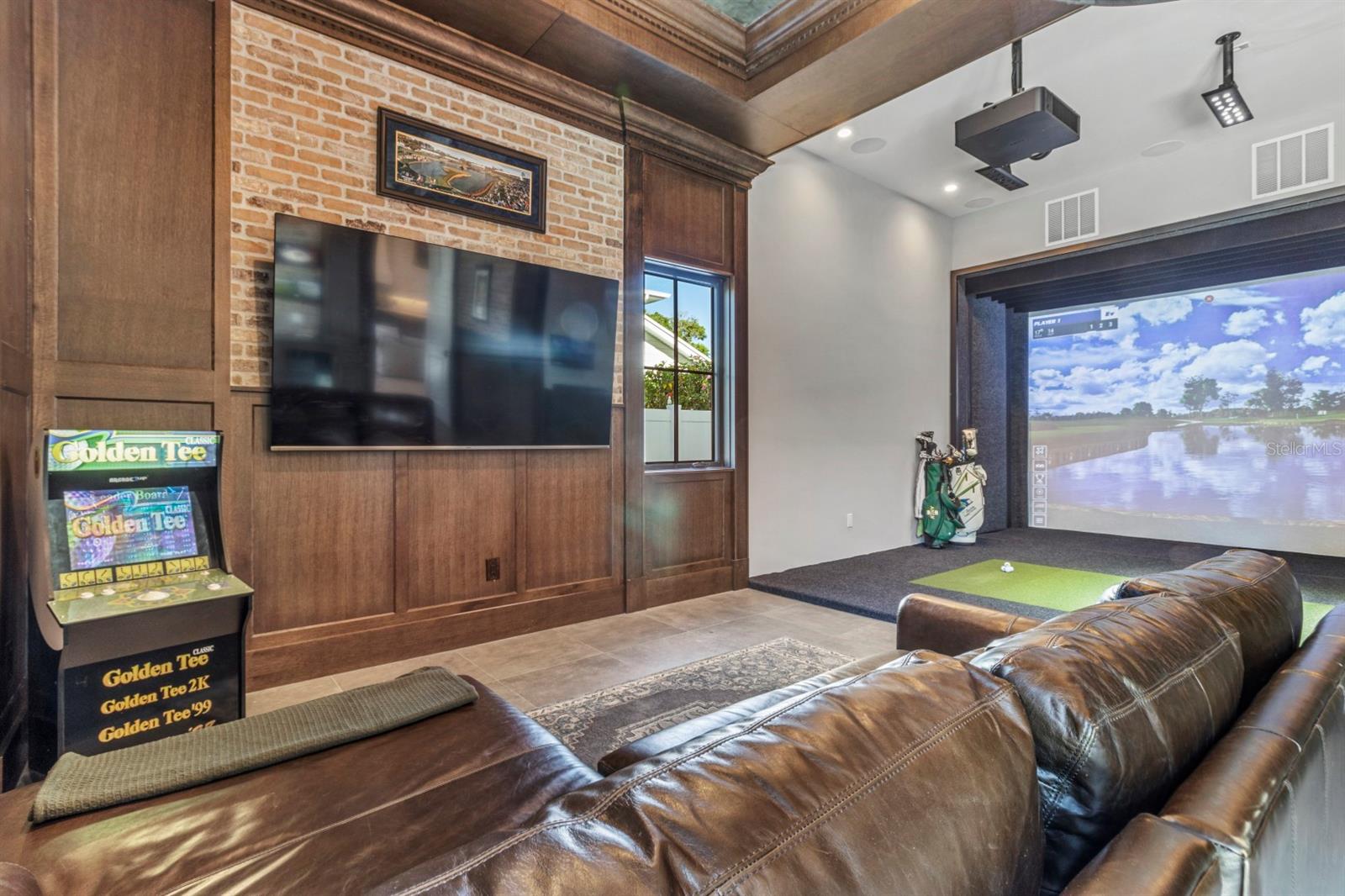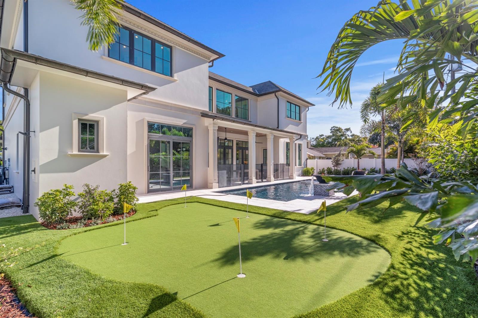Welcome to this exquisite 5-bedroom, 5 full bath, 2 half bath residence built by Milana Custom Homes, offering over 5,400 square feet of luxury living space. Nestled in one of South Tampa's most sought-after neighborhoods, this custom-built home blends refined craftsmanship with modern convenience. Step inside and be greeted by soaring ceilings, custom paneling throughout the grand foyer, and a dramatic curved staircase beneath a sparkling chandelier. Wide-plank hardwood floors flow into the open-concept living area, anchored by a gourmet chef's kitchen featuring custom cabinetry, high-end appliances, and an oversized island. A glass-enclosed 400-bottle, temperature-controlled wine room adds a sophisticated centerpiece for entertaining. The wood-paneled club room is a showstopper, featuring a full bar and a state-of-the-art Full Swing Pro Series Golf Simulator. This premier simulator offers industry-leading ball flight and club path tracking technology, premium widescreen enclosure, laser projection, and an immersive selection of championship courses. Beyond golf, it also includes multisport and laser shot gaming packages, providing year-round entertainment for family and guests. Retreat to the primary suite, complete with a spa-inspired bath featuring a freestanding soaking tub, dual vanities, and an oversized walk-in shower. A boutique-style custom closet with built-in cabinetry and a center island ensures both beauty and function. For added convenience, a stackable washer and dryer is also tucked into the master closet in addition to the home's main laundry room. Outdoors, enjoy Florida living at its finest with a private pool, separate pool bath, covered lanai, and outdoor kitchen. A backyard putting green adds to the resort-style experience, while a two-car garage provides ample parking and storage. Additional highlights include multiple living spaces, ensuite baths in every bedroom, and a fully functioning back kitchen with refrigerator, sink, and dishwasher. Prime location minutes from Tampa's finest dining, shopping, and A-rated schools.
