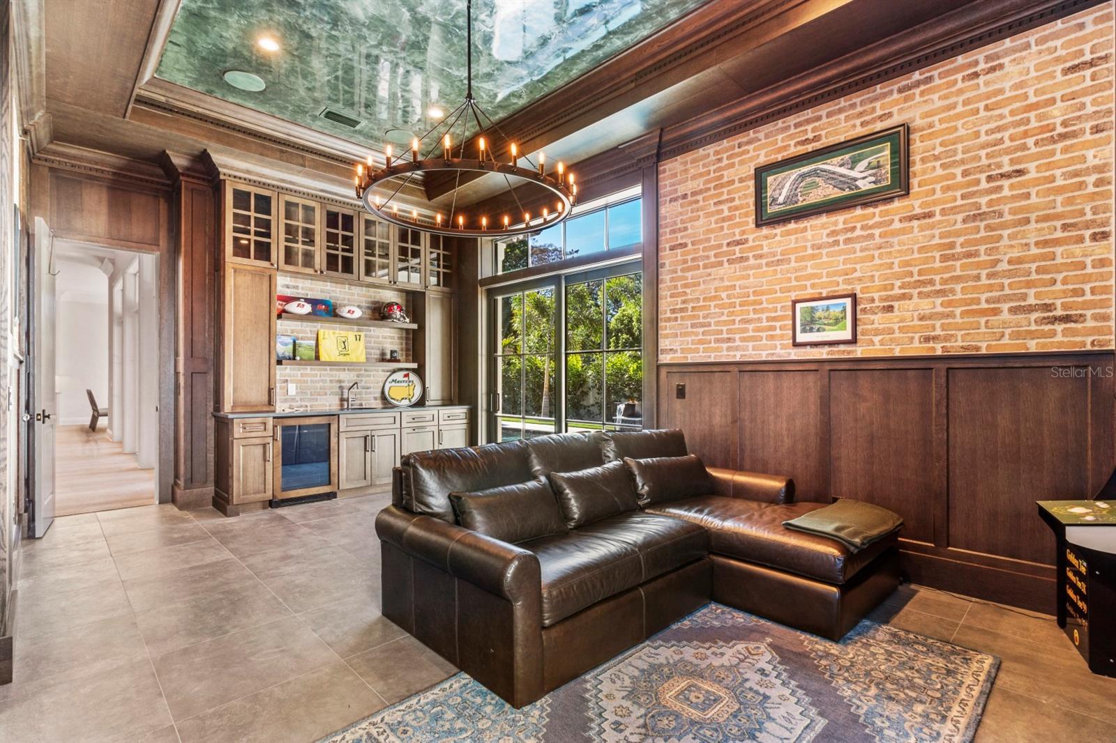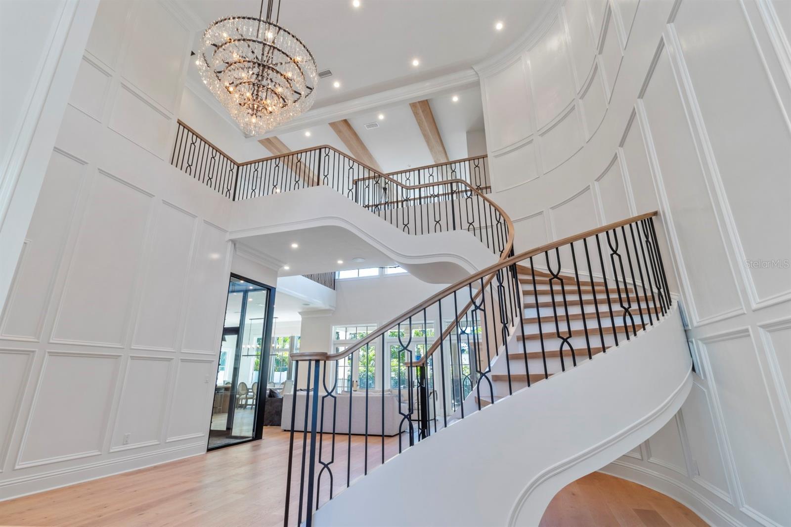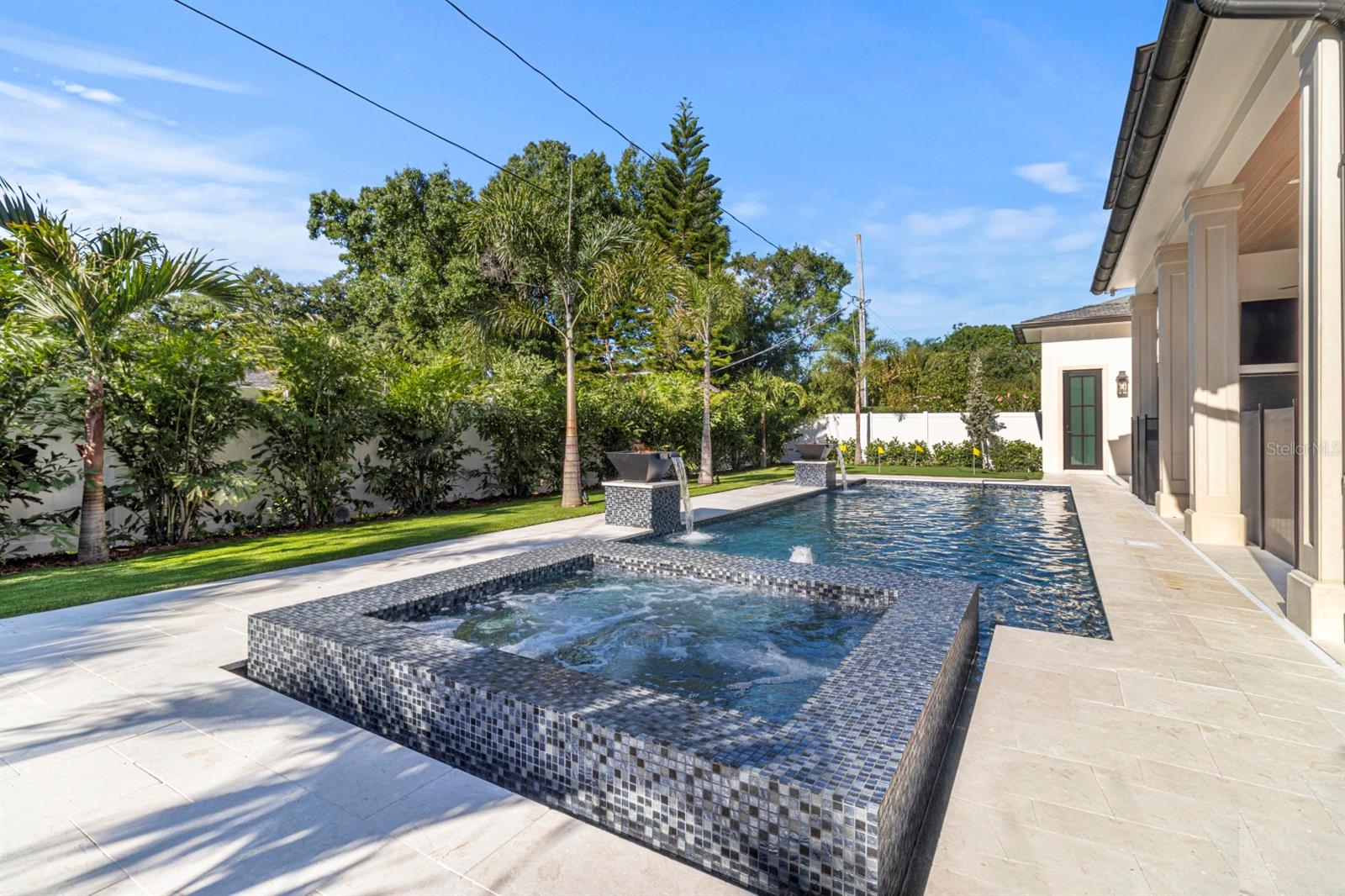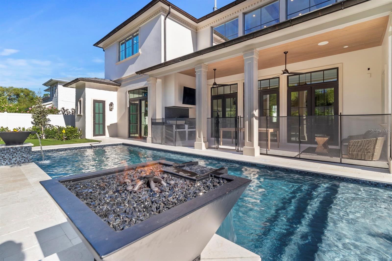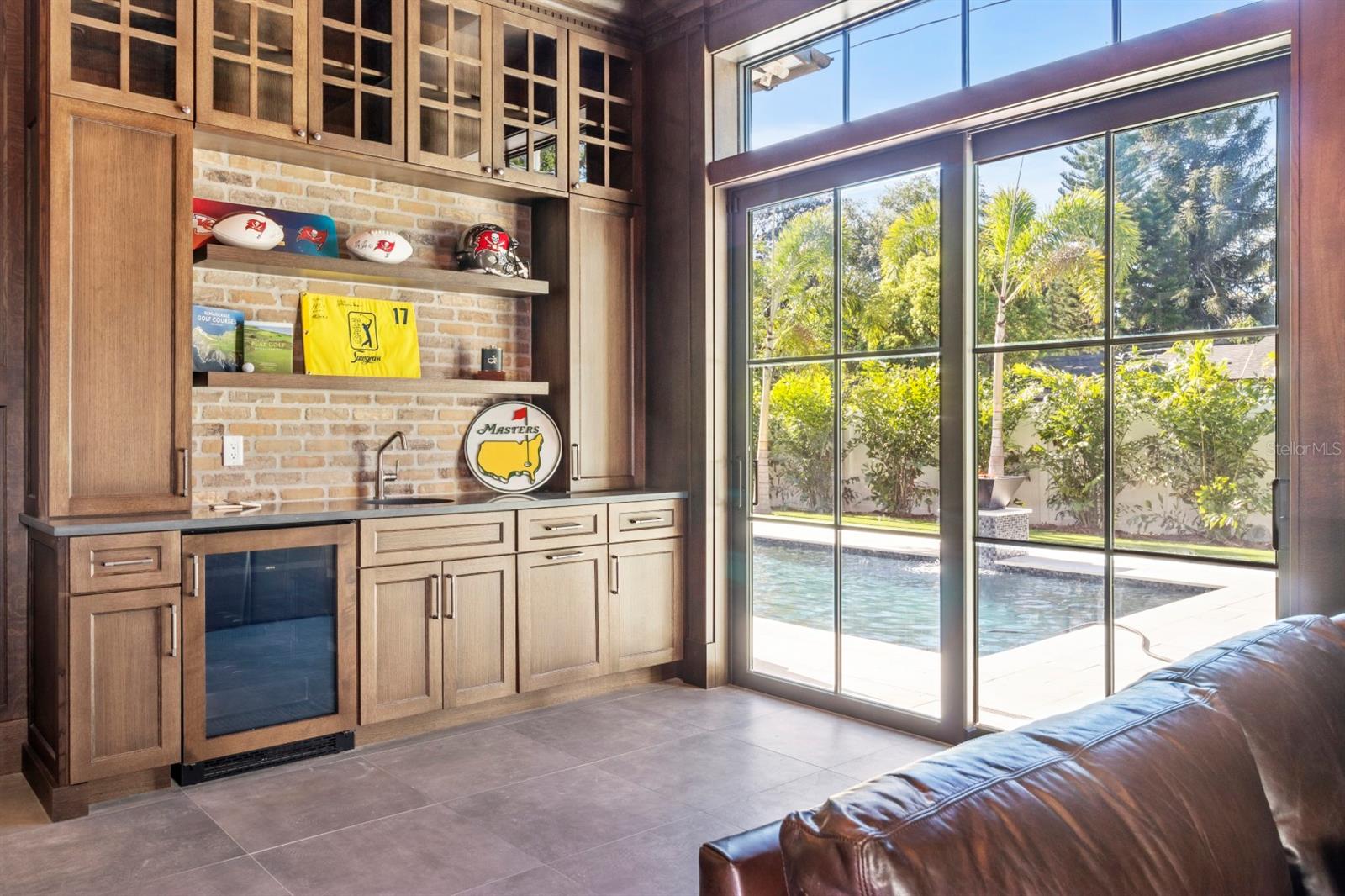 Welcome to this exquisite 5-bedroom, 5 full bath, 2 half bath residence built by Milana Custom Homes, offering over 5,400 square feet of luxury living space. Nestled in one of South Tampa's most sought-after neighborhoods, this custom-built home blends refined craftsmanship with modern convenience. Step inside and be greeted by soaring ceilings, custom paneling throughout the grand foyer, and a dramatic curved staircase beneath a sparkling chandelier. Wide-plank hardwood floors flow into the open-concept living area, anchored by a gourmet chef's kitchen featuring custom cabinetry, high-end appliances, and an oversized island. A glass-enclosed 400-bottle, temperature-controlled wine room adds a sophisticated centerpiece for entertaining. The wood-paneled club room is a showstopper, featuring a full bar and a state-of-the-art Full Swing Pro Series Golf Simulator. This premier simulator offers industry-leading ball flight and club path tracking technology, premium widescreen enclosure, laser projection, and an immersive selection of championship courses. Beyond golf, it also includes multisport and laser shot gaming packages, providing year-round entertainment for family and guests. Retreat to the primary suite, complete with a spa-inspired bath featuring a freestanding soaking tub, dual vanities, and an oversized walk-in shower. A boutique-style custom closet with built-in cabinetry and a center island ensures both beauty and function. For added convenience, a stackable washer and dryer is also tucked into the master closet in addition to the home's main laundry room. Outdoors, enjoy Florida living at its finest with a private pool, separate pool bath, covered lanai, and outdoor kitchen. A backyard putting green adds to the resort-style experience, while a two-car garage provides ample parking and storage. Additional highlights include multiple living spaces, ensuite baths in every bedroom, and a fully functioning back kitchen with refrigerator, sink, and dishwasher. Prime location minutes from Tampa's finest dining, shopping, and A-rated schools.