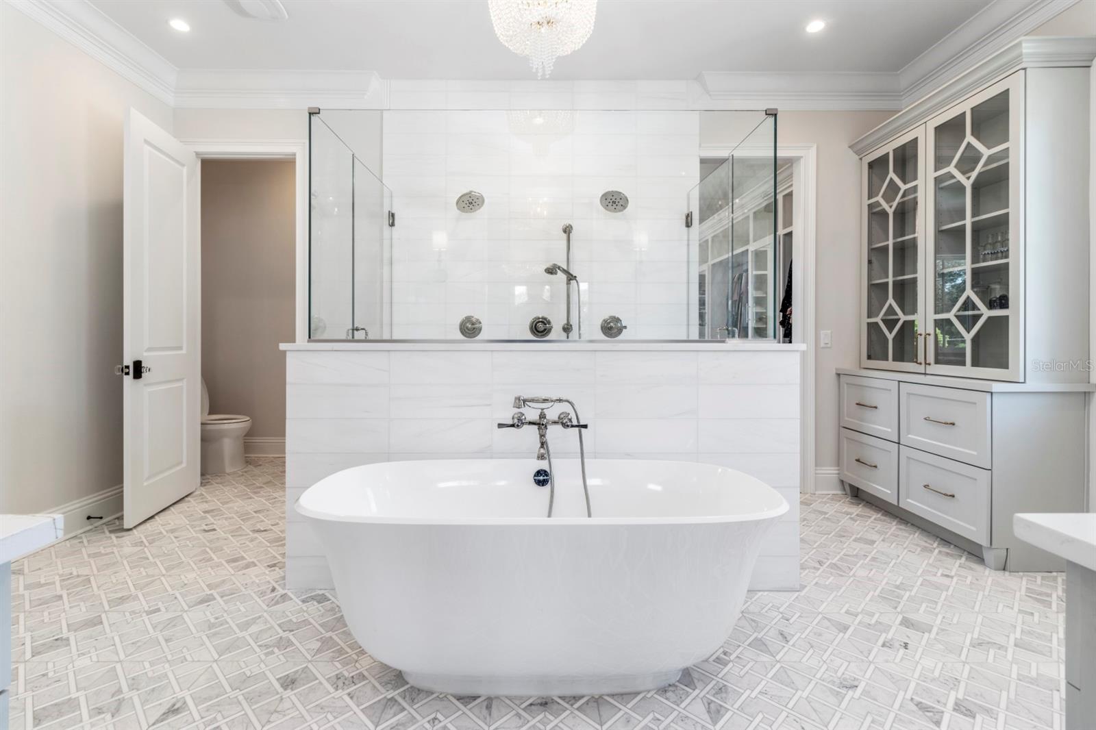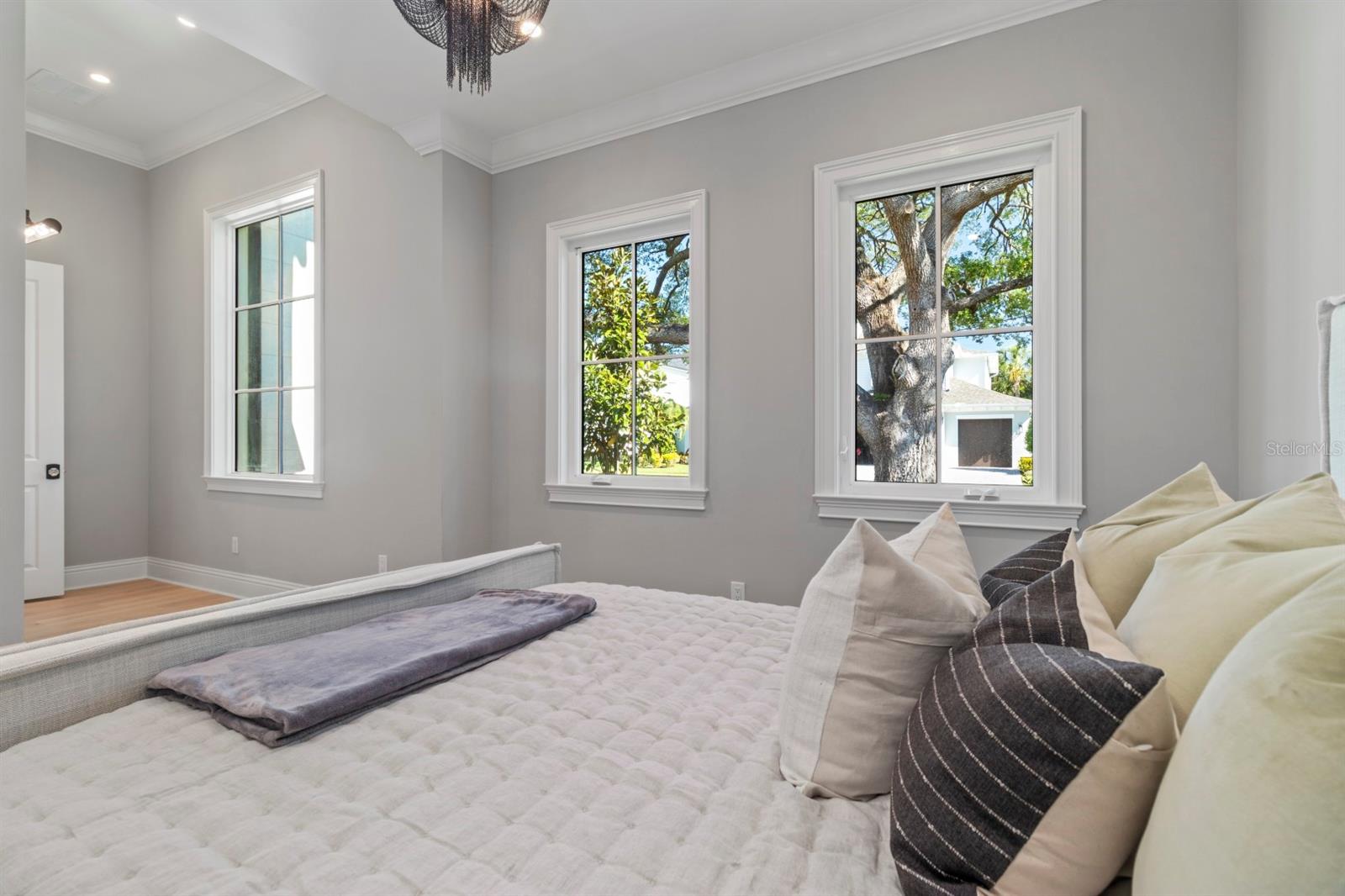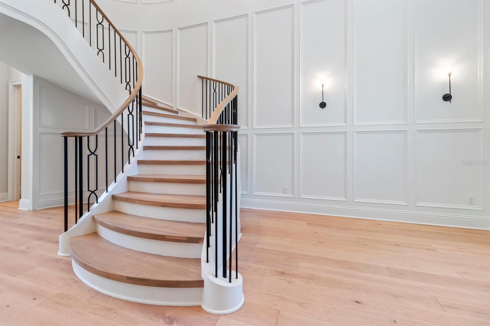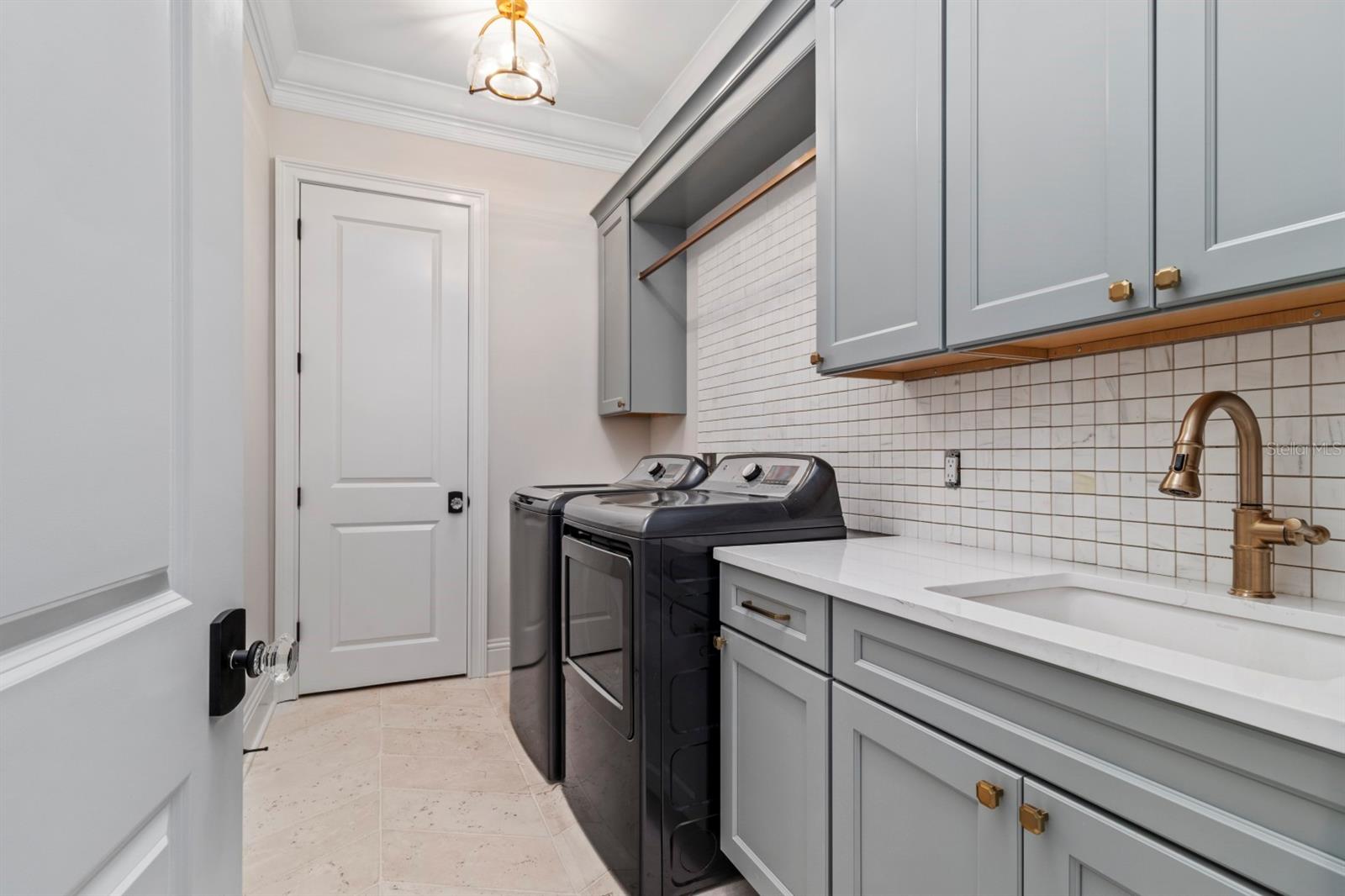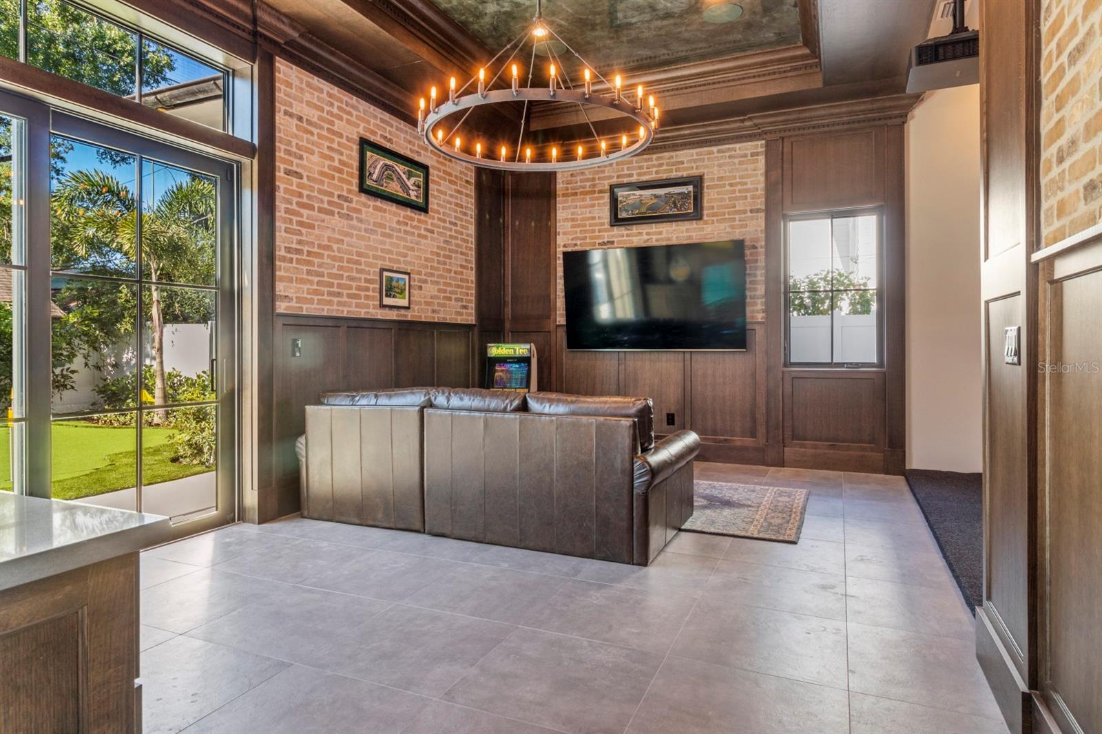 Welcome to this exquisite 5-bedroom, 5 full bath, 2 half bath residence built by Milana Custom Homes, offering over 5,400 square feet of luxury living space. Nestled in one of South Tampa's most sought-after neighborhoods, this custom-built home blends refined craftsmanship with modern convenience. Step inside and be greeted by soaring ceilings, custom paneling throughout the grand foyer, and a dramatic curved staircase beneath a sparkling chandelier. Wide-plank hardwood floors flow into the open-concept living area, anchored by a gourmet chef's kitchen featuring custom cabinetry, high-end appliances, and an oversized island. A glass-enclosed 400-bottle, temperature-controlled wine room adds a sophisticated centerpiece for entertaining. The wood-paneled club room is a showstopper, featuring a full bar and a state-of-the-art Full Swing Pro Series Golf Simulator. This premier simulator offers industry-leading ball flight and club path tracking technology, premium widescreen enclosure, laser projection, and an immersive selection of championship courses. Beyond golf, it also includes multisport and laser shot gaming packages, providing year-round entertainment for family and guests. Retreat to the primary suite, complete with a spa-inspired bath featuring a freestanding soaking tub, dual vanities, and an oversized walk-in shower. A boutique-style custom closet with built-in cabinetry and a center island ensures both beauty and function. For added convenience, a stackable washer and dryer is also tucked into the master closet in addition to the home's main laundry room. Outdoors, enjoy Florida living at its finest with a private pool, separate pool bath, covered lanai, and outdoor kitchen. A backyard putting green adds to the resort-style experience, while a two-car garage provides ample parking and storage. Additional highlights include multiple living spaces, ensuite baths in every bedroom, and a fully functioning back kitchen with refrigerator, sink, and dishwasher. Prime location minutes from Tampa's finest dining, shopping, and A-rated schools.