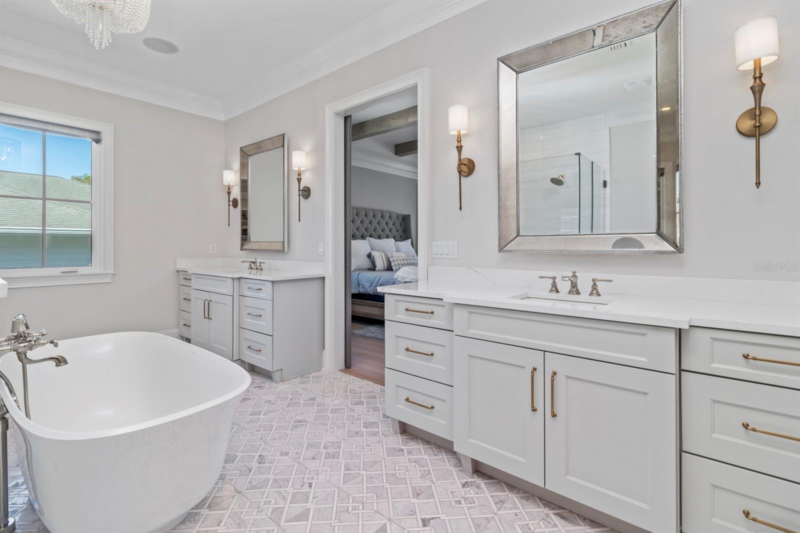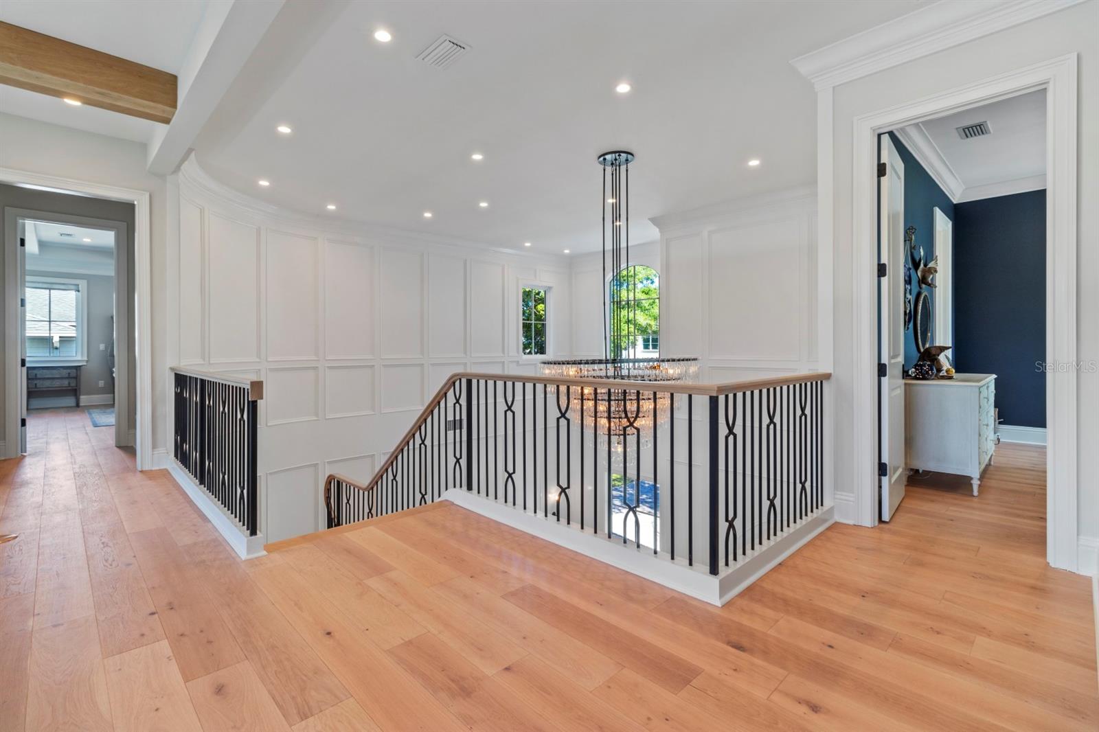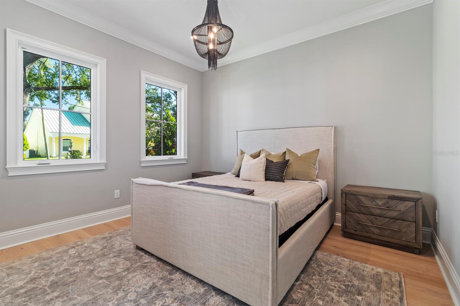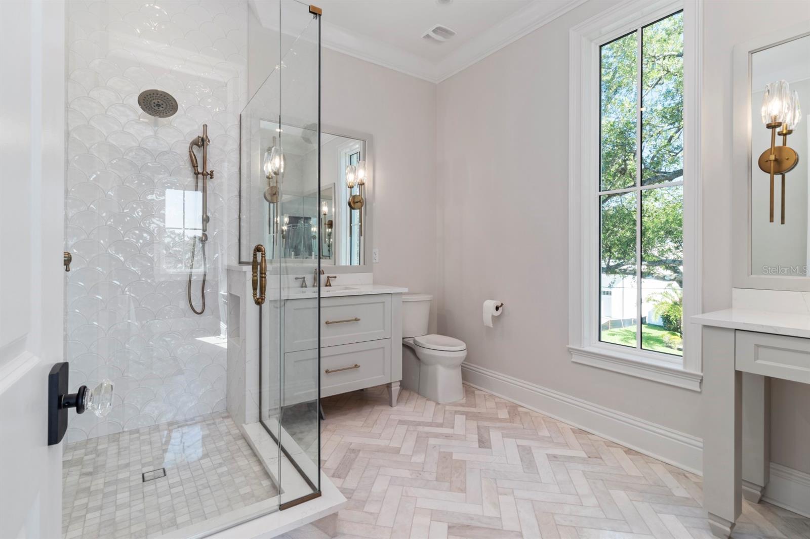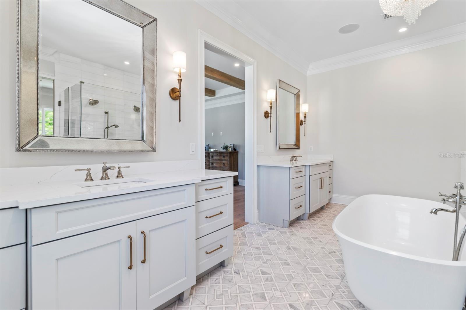 Welcome to this exquisite 5-bedroom, 5 full bath, 2 half bath residence built by Milana Custom Homes, offering over 5,400 square feet of luxury living space. Nestled in one of South Tampa's most sought-after neighborhoods, this custom-built home blends refined craftsmanship with modern convenience. Step inside and be greeted by soaring ceilings, custom paneling throughout the grand foyer, and a dramatic curved staircase beneath a sparkling chandelier. Wide-plank hardwood floors flow into the open-concept living area, anchored by a gourmet chef's kitchen featuring custom cabinetry, high-end appliances, and an oversized island. A glass-enclosed 400-bottle, temperature-controlled wine room adds a sophisticated centerpiece for entertaining. The wood-paneled club room is a showstopper, featuring a full bar and a state-of-the-art Full Swing Pro Series Golf Simulator. This premier simulator offers industry-leading ball flight and club path tracking technology, premium widescreen enclosure, laser projection, and an immersive selection of championship courses. Beyond golf, it also includes multisport and laser shot gaming packages, providing year-round entertainment for family and guests. Retreat to the primary suite, complete with a spa-inspired bath featuring a freestanding soaking tub, dual vanities, and an oversized walk-in shower. A boutique-style custom closet with built-in cabinetry and a center island ensures both beauty and function. For added convenience, a stackable washer and dryer is also tucked into the master closet in addition to the home's main laundry room. Outdoors, enjoy Florida living at its finest with a private pool, separate pool bath, covered lanai, and outdoor kitchen. A backyard putting green adds to the resort-style experience, while a two-car garage provides ample parking and storage. Additional highlights include multiple living spaces, ensuite baths in every bedroom, and a fully functioning back kitchen with refrigerator, sink, and dishwasher. Prime location minutes from Tampa's finest dining, shopping, and A-rated schools.