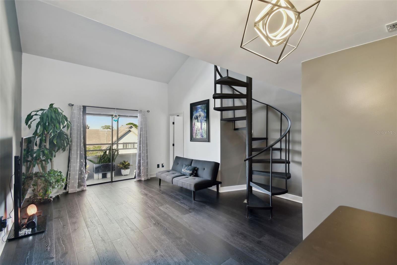 Welcome to this stunning, fully renovated condominium in the heart of the desirable Carrollwood community! This elegant and modern residence offers 1 spacious bedroom, 2 full bathrooms, and a versatile bonus room—perfect as an office, guest room, or cozy bedroom to suit your needs. Step inside and enjoy the open floor plan that seamlessly connects the dining and living areas, highlighted by brand-new premium laminate flooring. A striking spiral staircase adds architectural charm and leads you to the primary suite, featuring a generous walk-in closet and a luxuriously updated bathroom. The bonus room is conveniently located on the main floor, complete with its own full bathroom and direct access to a large covered lanai—an ideal space for relaxing or entertaining. The stylish kitchen showcases sleek quartz countertops, integrated laundry space, and a bright window that brings in natural light with a pleasant view of the outdoor area. Enjoy an unbeatable location with easy access to Carrollwood Village Park, West Village Basketball Court, and Carrollwood Village Skate Park. The community offers fantastic amenities, including tennis courts and a sparkling pool. Plus, the HOA covers water, sewer, exterior maintenance, roof, and cable TV—adding extra value and convenience. This condo is truly the perfect blend of elegance, comfort, and lifestyle. ?? Schedule your private showing today!