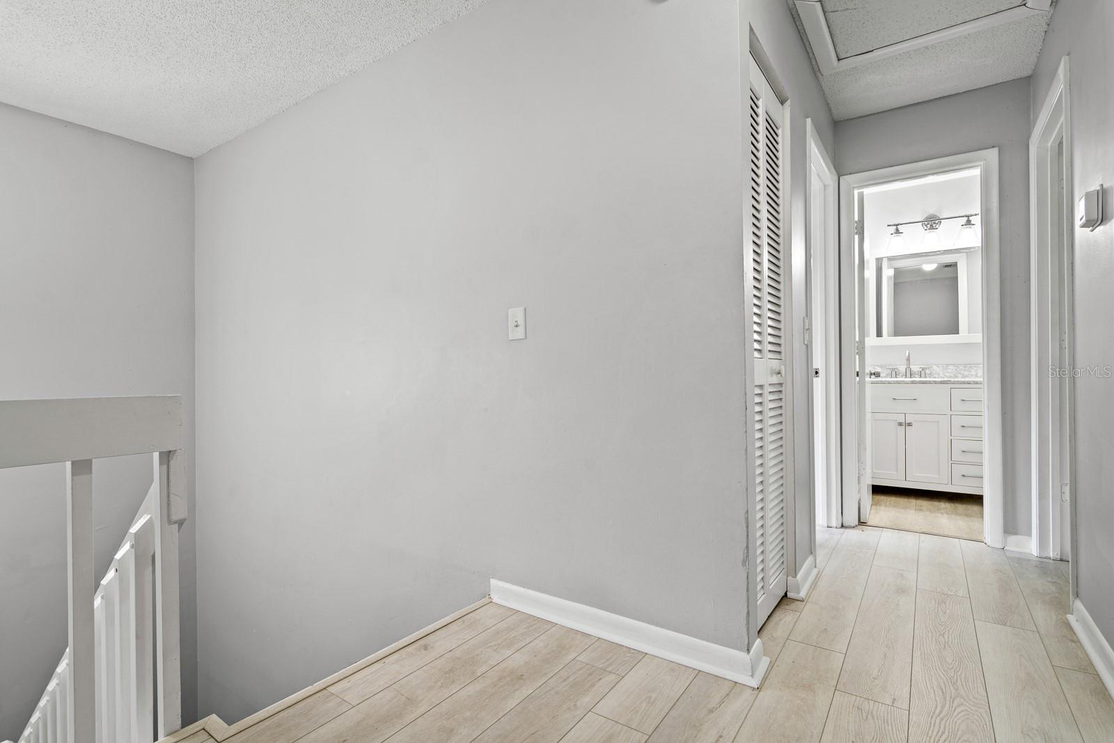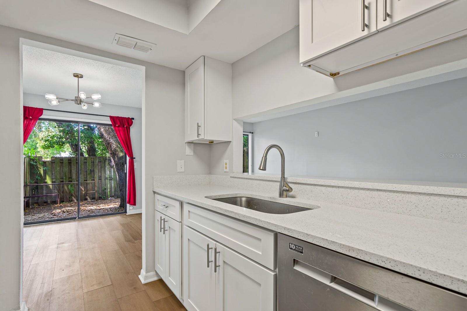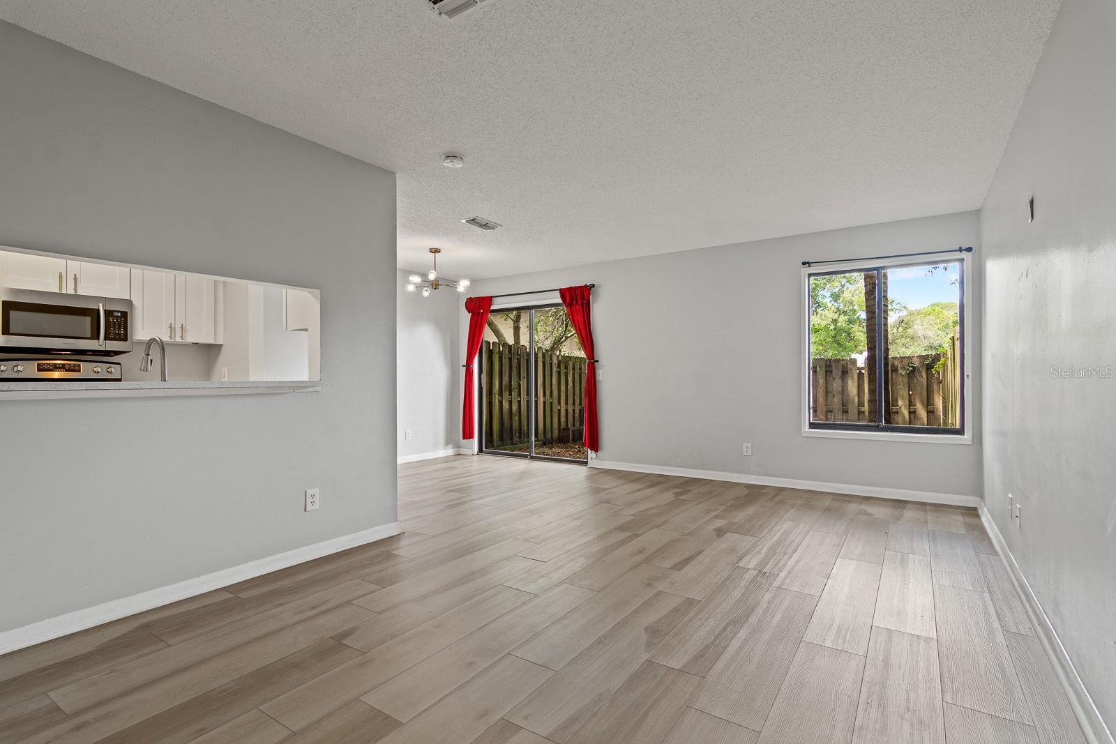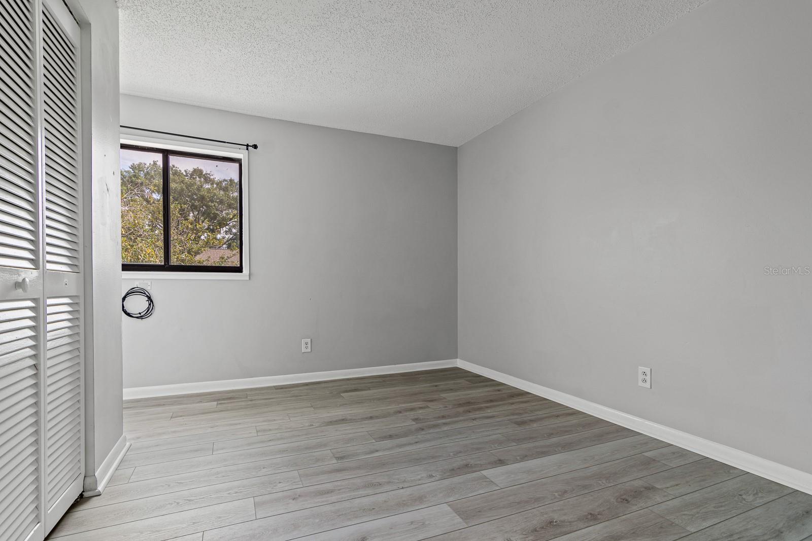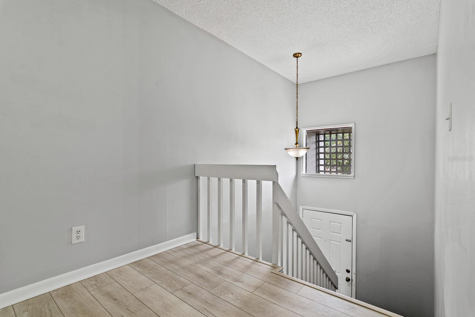 Welcome to this beautifully updated two-story home in the desirable Carlyle Garden community. Offering 2 bedrooms, 1.5 bathrooms, and a 1-car garage, this 1,072 sq ft condo combines comfort, convenience, and modern finishes in a well-maintained setting. Step inside to an open floor plan featuring fresh paint and brand-new laminate flooring throughout. The updated kitchen boasts sleek quartz countertops, stainless steel appliances, a closet pantry, and a breakfast bar overlooking the spacious living room—perfect for entertaining. A conveniently located half bath sits just off the kitchen, leading toward the attached garage, where you'll also find a washer and dryer. Upstairs, you'll discover a functional landing area ideal for a small home office or study nook. The master bedroom includes a generous walk-in closet, and both bedrooms offer plenty of natural light. Enjoy outdoor living in the private, fenced-in courtyard shaded by mature oak trees—perfect for relaxing or gardening. The community is clean and well-maintained, and its location offers quick access to shopping, dining, schools, local hospitals, and I-275 for easy commuting.