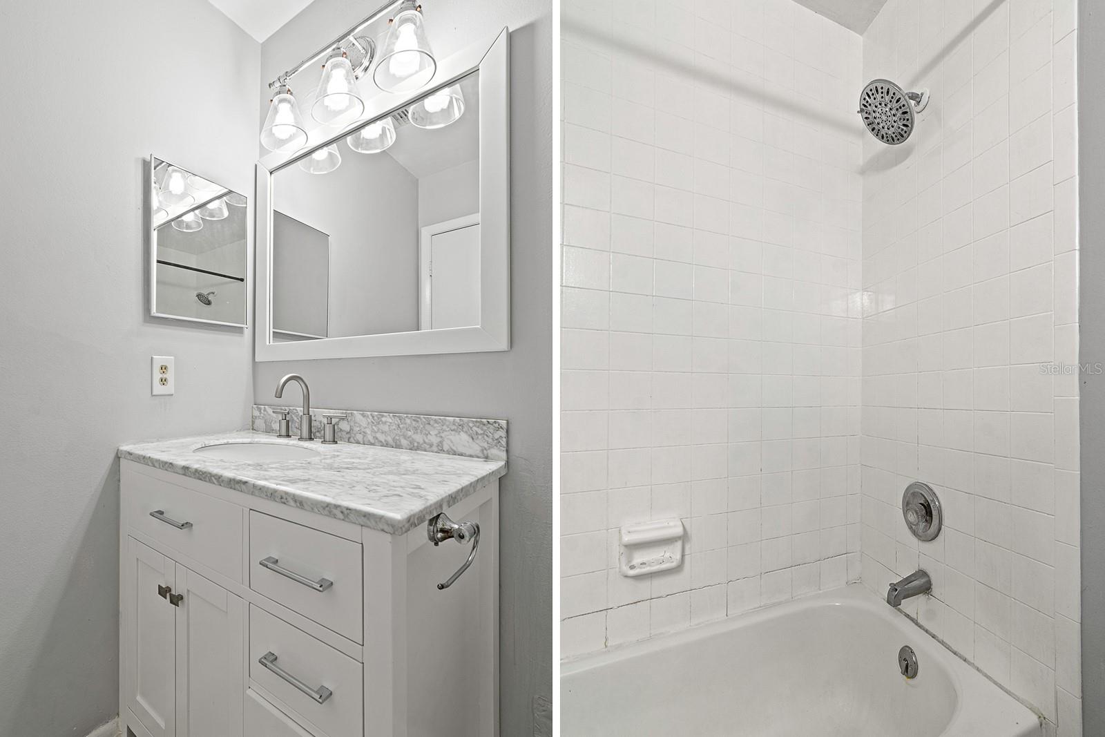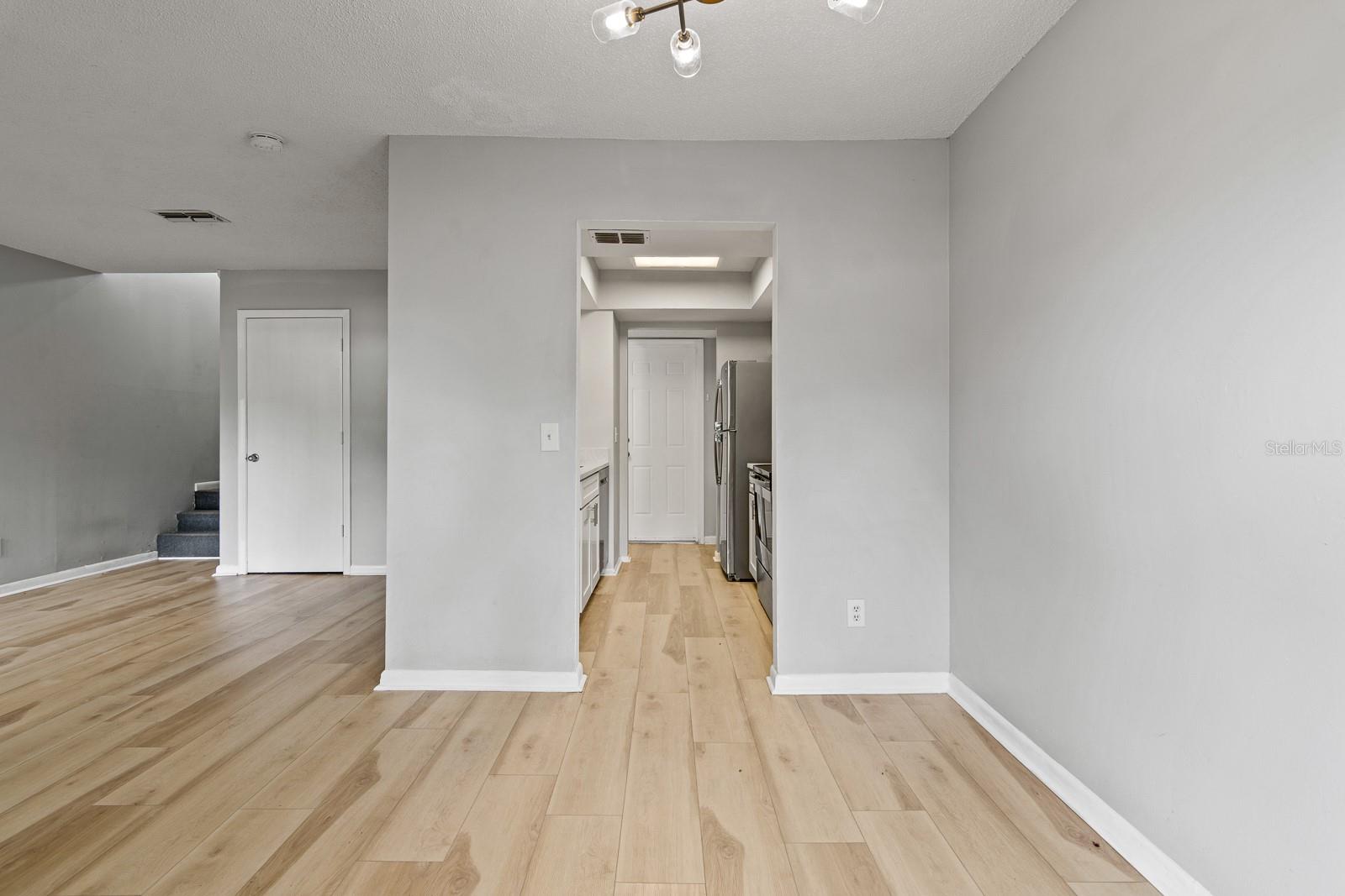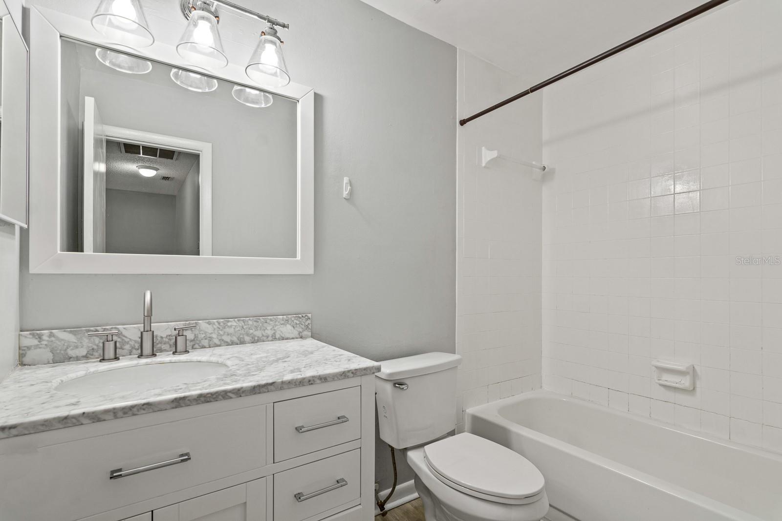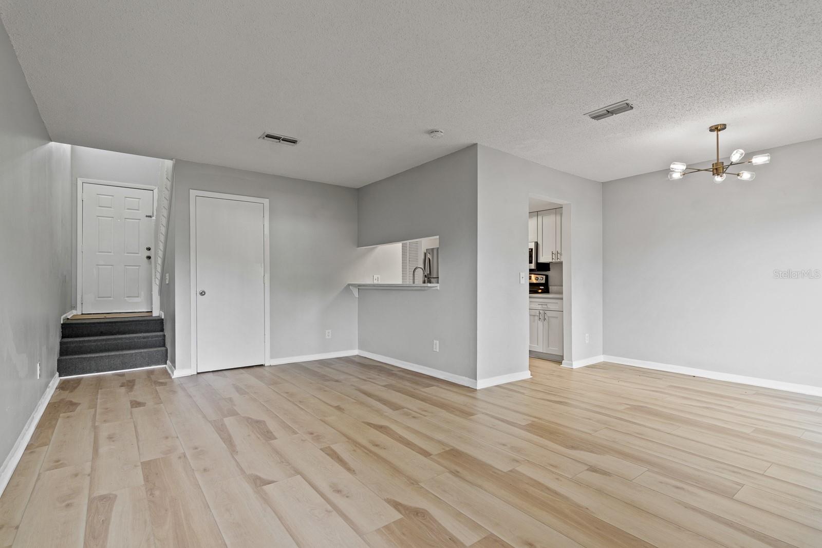 Welcome to this beautifully updated two-story home in the desirable Carlyle Garden community. Offering 2 bedrooms, 1.5 bathrooms, and a 1-car garage, this 1,072 sq ft condo combines comfort, convenience, and modern finishes in a well-maintained setting. Step inside to an open floor plan featuring fresh paint and brand-new laminate flooring throughout. The updated kitchen boasts sleek quartz countertops, stainless steel appliances, a closet pantry, and a breakfast bar overlooking the spacious living room—perfect for entertaining. A conveniently located half bath sits just off the kitchen, leading toward the attached garage, where you'll also find a washer and dryer. Upstairs, you'll discover a functional landing area ideal for a small home office or study nook. The master bedroom includes a generous walk-in closet, and both bedrooms offer plenty of natural light. Enjoy outdoor living in the private, fenced-in courtyard shaded by mature oak trees—perfect for relaxing or gardening. The community is clean and well-maintained, and its location offers quick access to shopping, dining, schools, local hospitals, and I-275 for easy commuting.