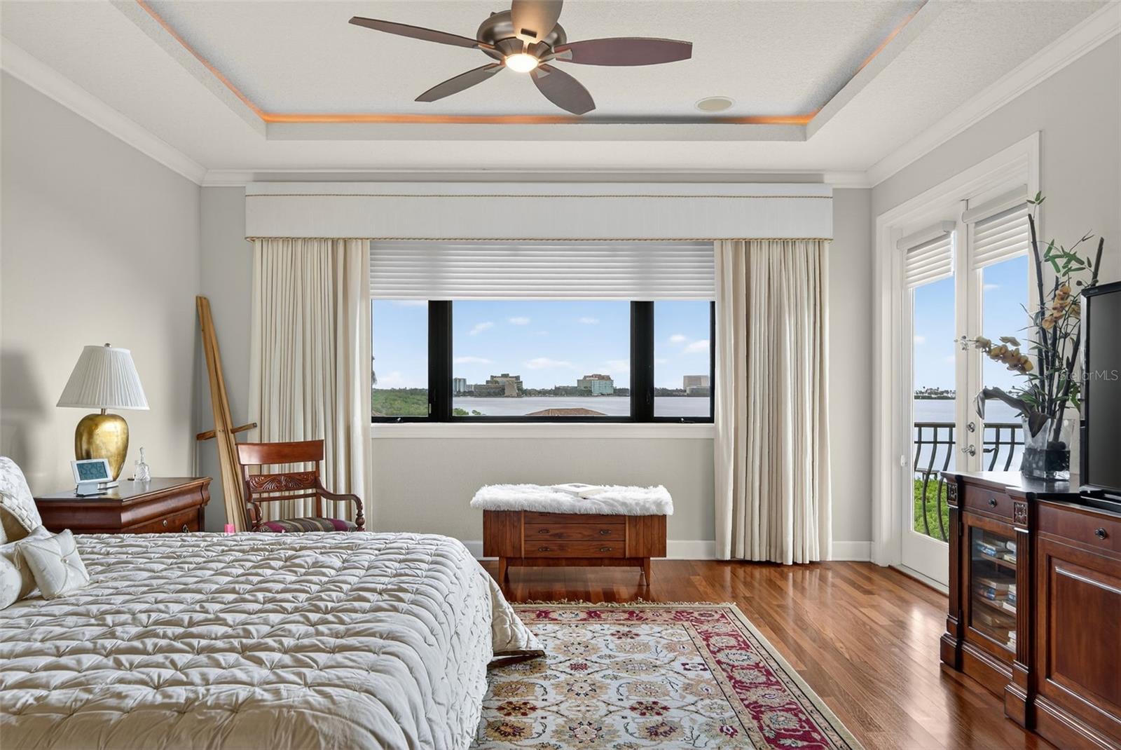 Welcome to The Reserve of Old Tampa Bay—Tampa Bay’s most coveted gated waterfront enclave, where timeless elegance meets resort-style living. Tucked away behind lush tropical palms, this renowned community offers unparalleled privacy, direct water access, and the kind of sunrises and sunsets that define Florida’s West Coast lifestyle. Custom-built in 2006 by the esteemed Alvarez Homes, this architectural masterpiece makes an unforgettable impression from the moment you arrive. Double custom entry doors open into a grand two-story foyer, crowned by a dazzling crystal chandelier. To the left, an elegant formal dining room sets the stage for exquisite dinner parties, while the formal living room offers dramatic floor-to-ceiling bay views, anchored by a Baby Grand player piano. The first level is designed for both luxury and convenience, featuring a guest or mini-owner’s suite complete with a private balcony perfect for morning coffee with serene views, direct poolside access, an ensuite bath, and a walk-in closet—ideal for multigenerational living or extended stays. A statement powder room showcases an artistic floor-to-ceiling Florida mural, while a discreet private entrance to the one-car garage ensures privacy. The chef’s kitchen is nothing short of extraordinary, outfitted with professional-grade appliances: Wolf gas cooktop, Bosch convection oven, Profile microwave, Sub-Zero refrigerator, wine chiller, and Bosch dishwasher. Custom cabinetry, granite counters, and an expansive island elevate both form and function. Nearby, the laundry suite connects to a two-car garage with a custom lift, tankless water heater, water softener, and reverse osmosis system. Designed for entertaining, the open-concept family and dining areas boast custom built-ins, an in-house audio system, and fully pocketing glass sliders that dissolve the boundary between indoor luxury and outdoor splendor. Step onto the expansive patio and experience resort living at its finest: a private heated saltwater pool, cascading spa, and sauna, all with panoramic bay views. A poolside half bath and fully equipped outdoor kitchen—complete with granite bar, counter seating, and gas grill—make alfresco entertaining effortless. After dinner, launch your boat from the private lift and cruise the sparkling waters of Old Tampa Bay. Ascending via the chandelier-lit elevator, the second level is equally impressive. A dramatic catwalk leads to two spacious guest suites, each with walk-in closets, a shared Jack-and-Jill bath, and private balconies. Across the way, a loft and bonus room conceal a hidden passage to the show stopping primary suite. Here, indulgence awaits in a spa-inspired retreat: dual vanities, two private water closets, a deep jetted soaking tub, and a grand walk-in shower. Just minutes from Downtown Tampa, the Gulf Beaches, and Tampa International Airport, The Reserve of Old Tampa Bay offers the perfect balance of exclusivity and convenience. This is more than a residence—it is a statement of prestige, comfort, and unparalleled waterfront living.