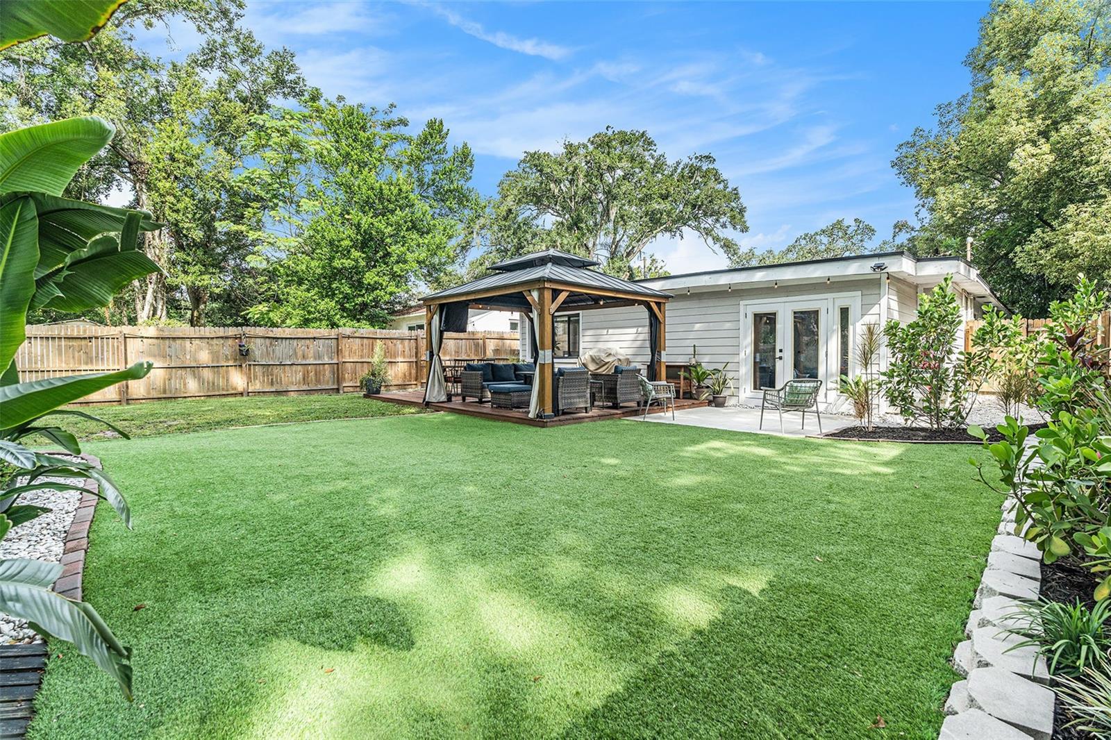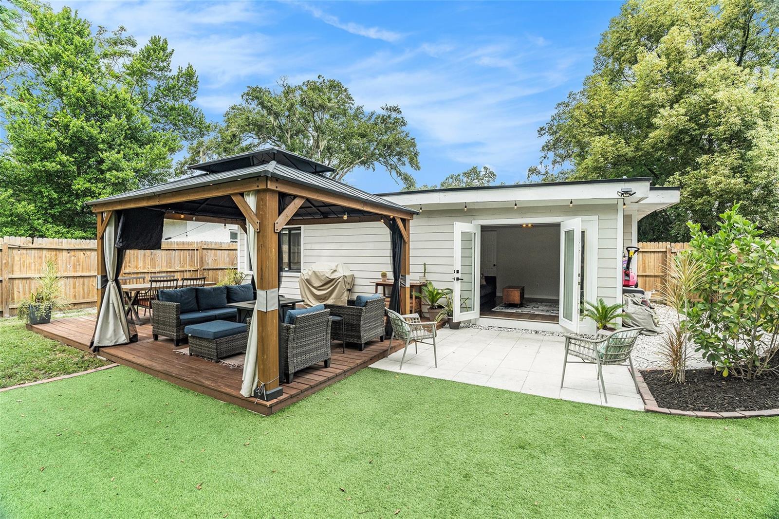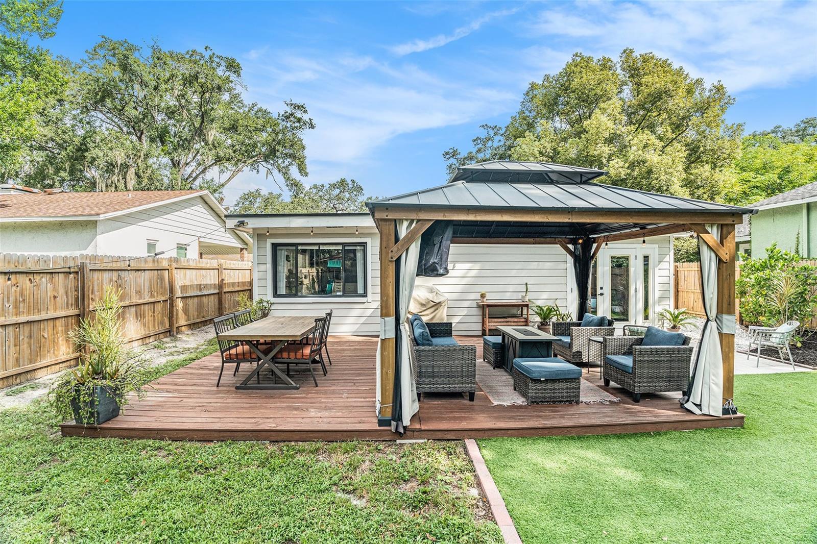 One or more photo(s) has been virtually staged. This Old Seminole Heights home was fully renovated in 2020 and offers both modern finishes and generous living space. The kitchen features white granite counters and cabinets, modern fixtures, and opens directly to the main living area making it perfect for entertaining and family life. The beautiful engineered hardwood floors flow throughout the home. All four bedrooms are spacious and get plenty of natural light, making them easy to use for guests, work, or whatever you need. Both bathrooms were updated during the renovation and have a clean, modern look. The backyard offers plenty of room and is fully fenced with low-maintenance turf, making it easy to keep tidy. It’s a versatile space that works well for pets, casual get-togethers, or simply spending time outdoors. The deck just off the house is an ideal spot for weekend barbecues, and the covered gazebo adds a comfortable place to unwind. A storage shed provides additional space for tools or bikes. The roof was replaced in 2020, and the French doors were added in 2021.The home is just minutes from restaurants, breweries, and shops, with quick access to downtown Tampa and major highways making commuting a breeze.