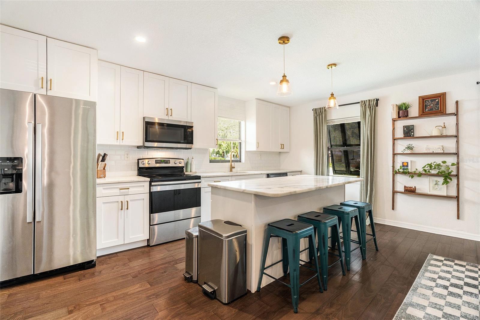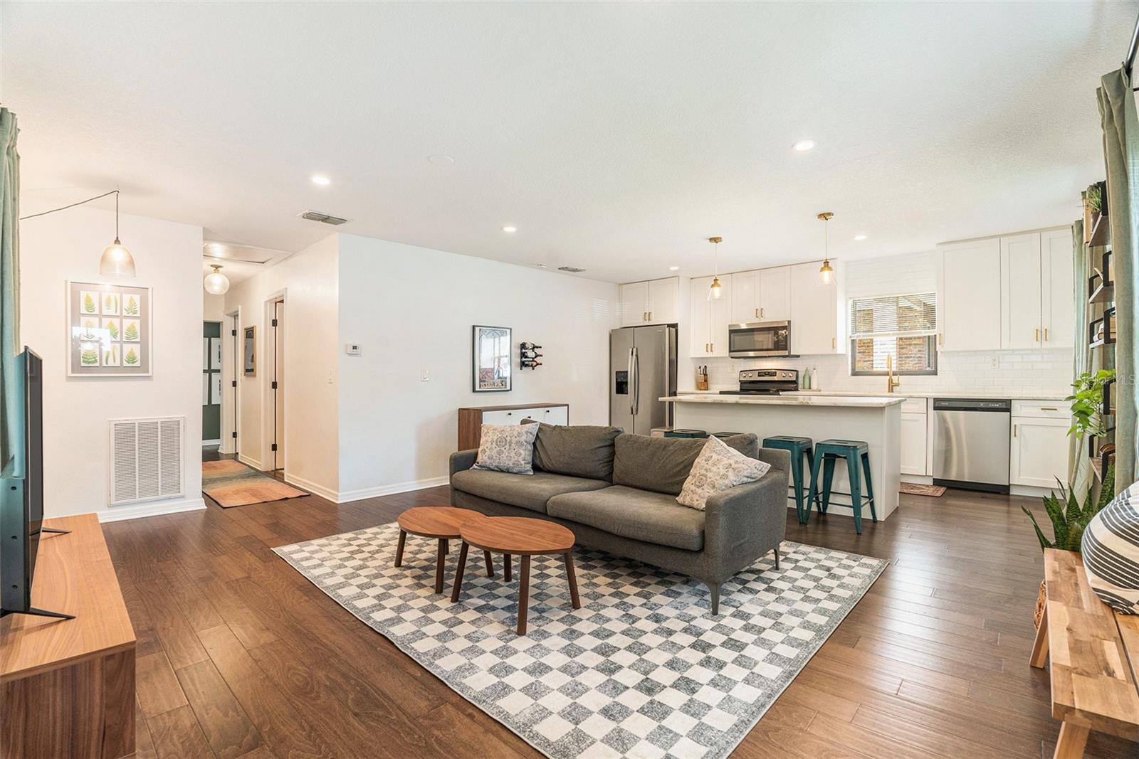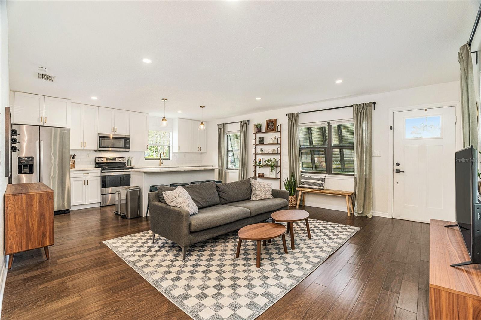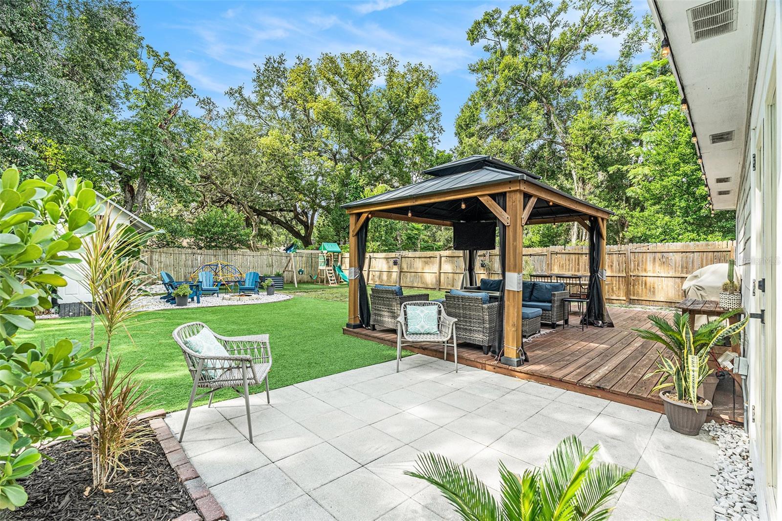 One or more photo(s) has been virtually staged. This Old Seminole Heights home was fully renovated in 2020 and offers both modern finishes and generous living space. The kitchen features white granite counters and cabinets, modern fixtures, and opens directly to the main living area making it perfect for entertaining and family life. The beautiful engineered hardwood floors flow throughout the home. All four bedrooms are spacious and get plenty of natural light, making them easy to use for guests, work, or whatever you need. Both bathrooms were updated during the renovation and have a clean, modern look. The backyard offers plenty of room and is fully fenced with low-maintenance turf, making it easy to keep tidy. It’s a versatile space that works well for pets, casual get-togethers, or simply spending time outdoors. The deck just off the house is an ideal spot for weekend barbecues, and the covered gazebo adds a comfortable place to unwind. A storage shed provides additional space for tools or bikes. The roof was replaced in 2020, and the French doors were added in 2021.The home is just minutes from restaurants, breweries, and shops, with quick access to downtown Tampa and major highways making commuting a breeze.