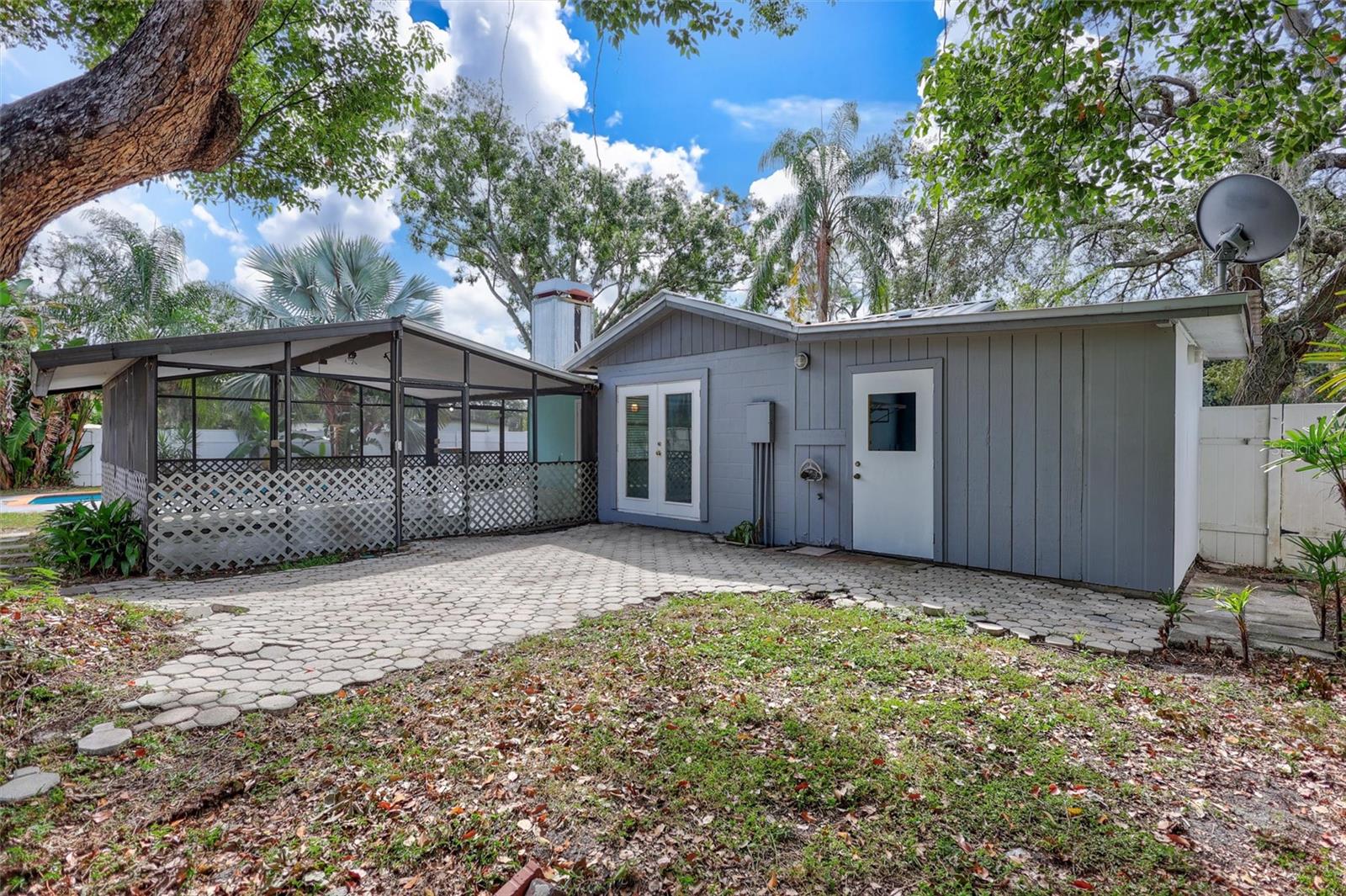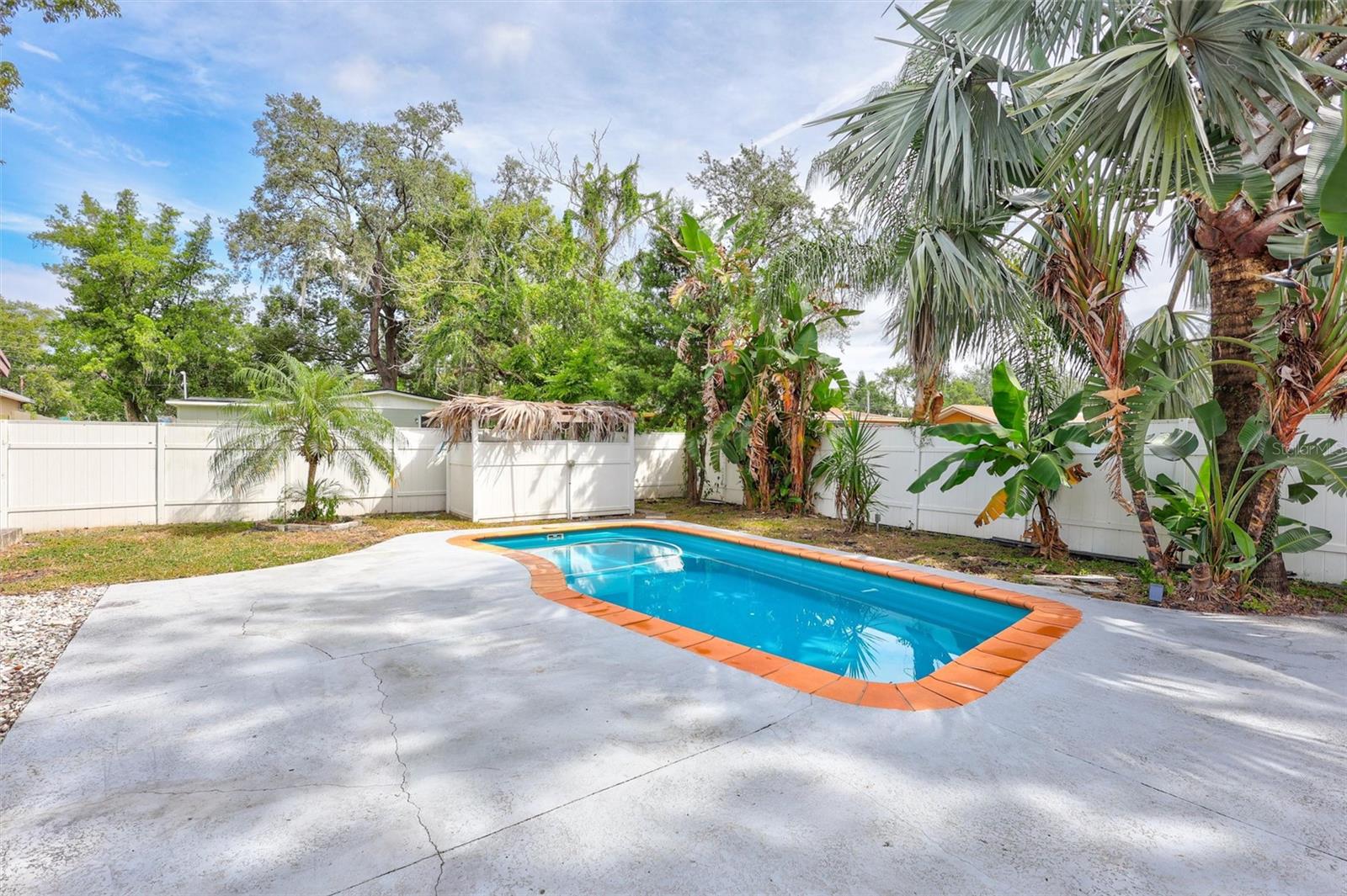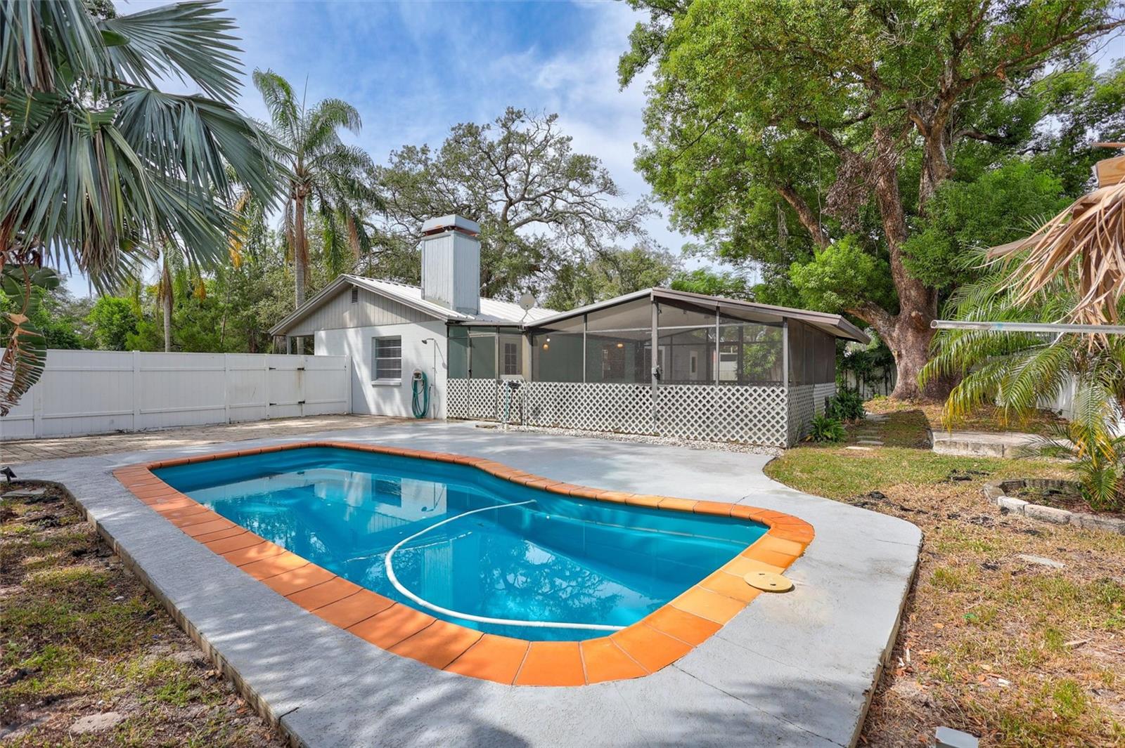 Welcome to 1712 N Club Ct, a well-cared-for home in a prime Tampa location just minutes from the University of South Florida and with quick access to I-275. This 3-bedroom, 1.5-bath home has had only one owner since it was purchased new from the builder. Block construction with cedar siding on the front, it also features a durable metal roof for peace of mind. Inside, the family room showcases teak flooring, cathedral ceilings, and a cozy wood-burning fireplace. The outdoor space is just as inviting, with a private pool under a large screened enclosure and a paved patio area perfect for entertaining. A spacious front and back yard provide plenty of room to enjoy, and the attached laundry room with backyard access adds convenience.
