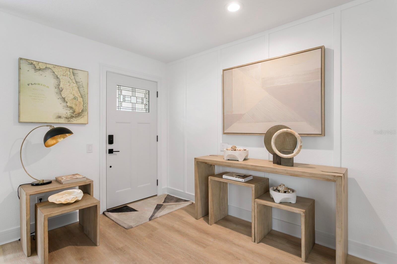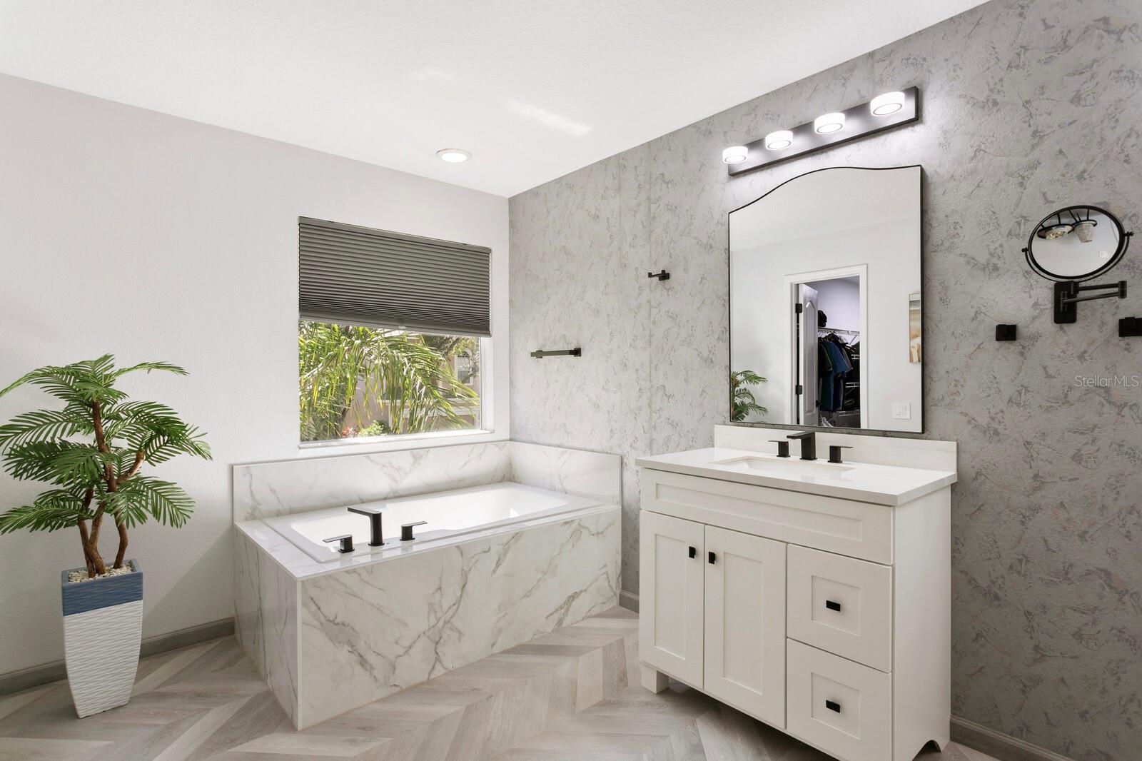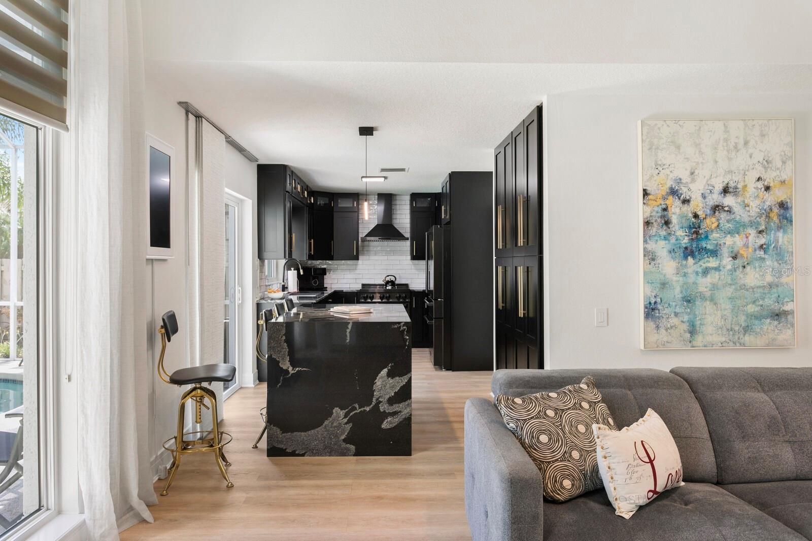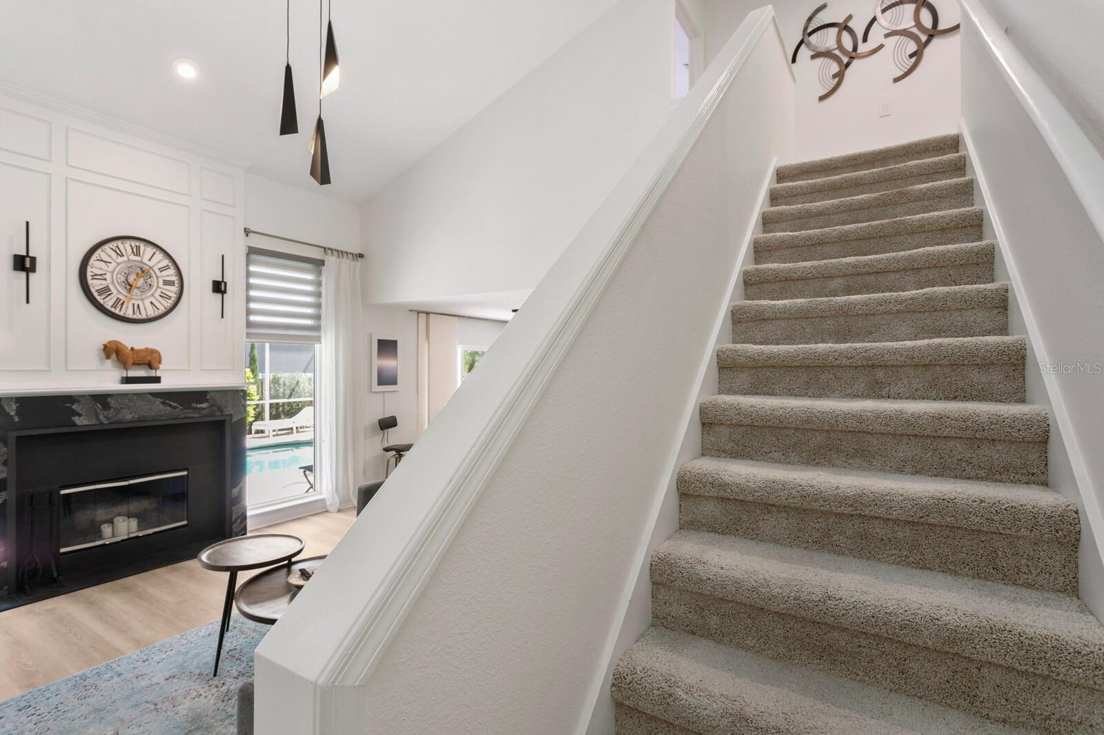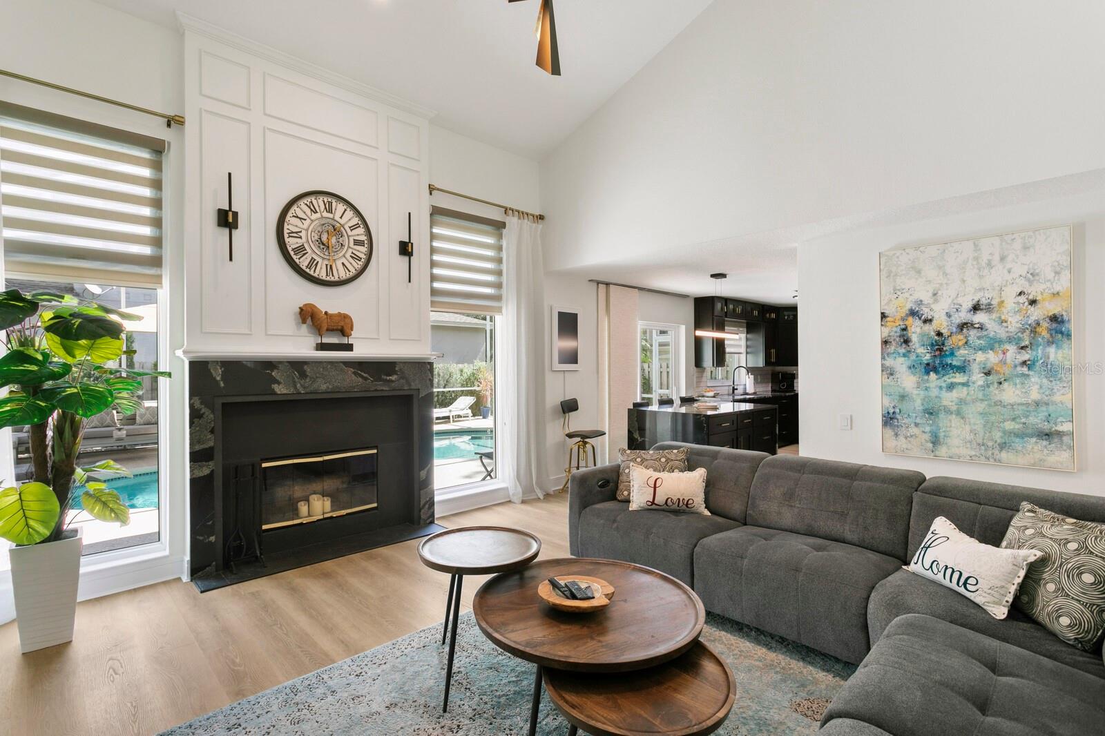 ------Buyer's Financing Fell Through! Appraisal and Home Inspection all good!------ Welcome to true Florida indoor, outdoor, and community living. This home is nestled at the corner end of a quiet cul-de-sac in Parkside of the prestigious Hunter’s Green community, this beautifully remodeled residence is surrounded by stately oak trees and showcases exceptional curb appeal from the moment you arrive. The exterior has been thoughtfully designed with a combination of mature and new professional landscaping, solar uplighting that highlights the architecture and trees at night, and a fenced in yard for added privacy. This all leads to a new front door that sets the tone for the modern elegance found inside. The first floor is completely remodeled with all new flooring, baseboards, paint, and decorative wood trim and LED modern light fixtures. It continues with a new back door slider and custom 9 foot energy-efficient windows facing a beautiful screened in lanai and pool area. The newly opened living and formal dining room features a striking custom wine display wall that doubles as art display. The family room is a showstopper with soaring 18-foot ceilings that create a grand sense of scale. A custom wood-burning Brazilian granite fireplace serves as the focal point, framed by contemporary lighting, designer wall moldings, and a built-in display wall with cabinetry and soft uplighting and a remodeled powder room. The renovated chef’s kitchen includes custom cabinetry with Brazilian granite counter tops to all surfaces, dual spice racks, lazy Susans, a deceptive large pantry storage, premium Z-Line appliances, which includes an induction stove top oven, a panel-ready ice fridge, microwave/oven combo and a waterfall island with storage that is pre-wired for an under-counter refrigerator, making it a perfect effortless transition to entertaining. Upstairs, the primary suite offers a spa-inspired bath with custom shower, tiled soaking tub, dual vanities, large walk-in closet and updated flooring. The guest bath is equally impressive with sleek Italian tile and designer fixtures. An updated second floor laundry room with Italian tile is conveniently located. All bedrooms include high end accent wall coverings. Step outside to a beautifully refinished pool and deck. The pool is accented by LED lighting and surrounded by lush landscaping for added privacy. With over $150,000 in thoughtful enhancements, this home is truly move-in ready and located in one of New Tampa’s most desirable gated communities. Additionally, adjacent to the property is the community park for tennis/pickleball, basketball, volleyball, soccer, baseball, kids park,dog park. You have the option to join Hunter's Green Country Club which feature an 18-Hole Tom Fazio designed golf course and a Tennis and Athletic Center. Close by is Flatwood Nature Park with a 7-mile loop for biking, hiking, and bird watching. Hunter's Green offers a community elementary school and easy access to I-75, Moffitt Cancer Center, Advent Health, Bay Care Hospital, USF and regional malls.