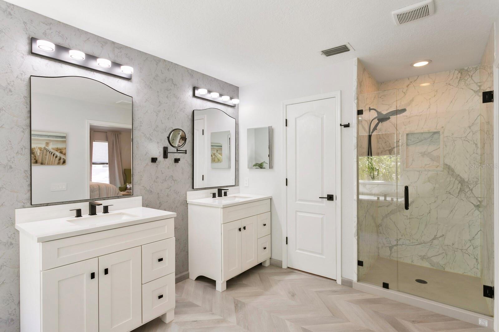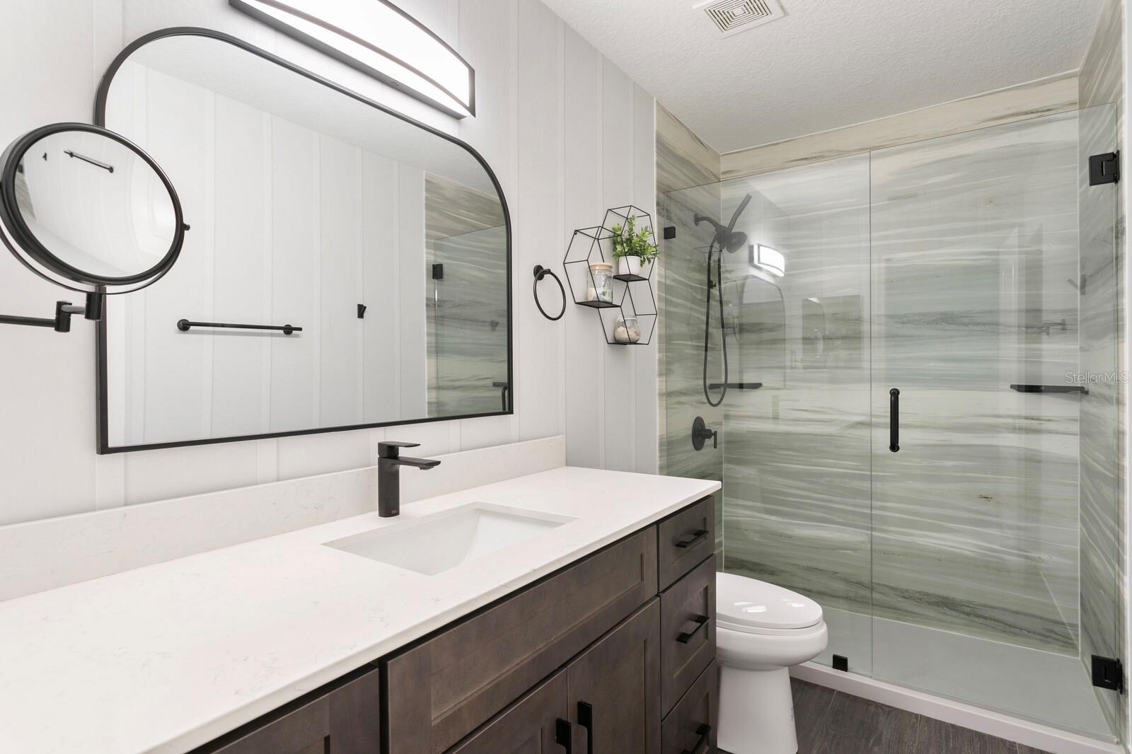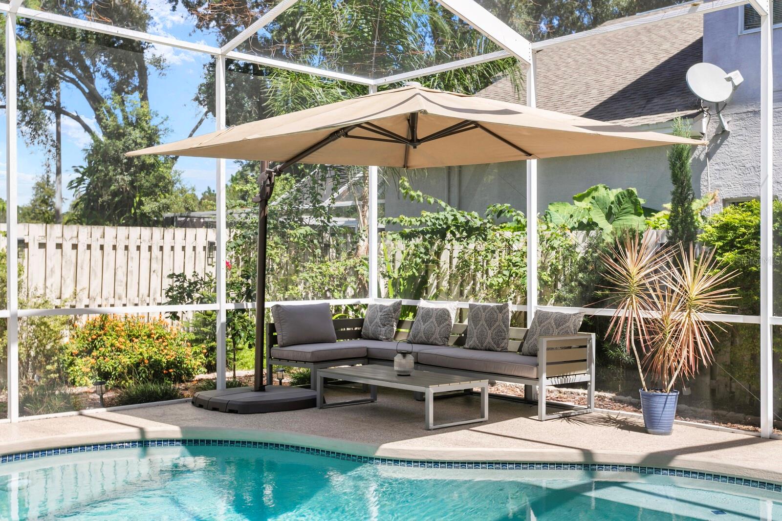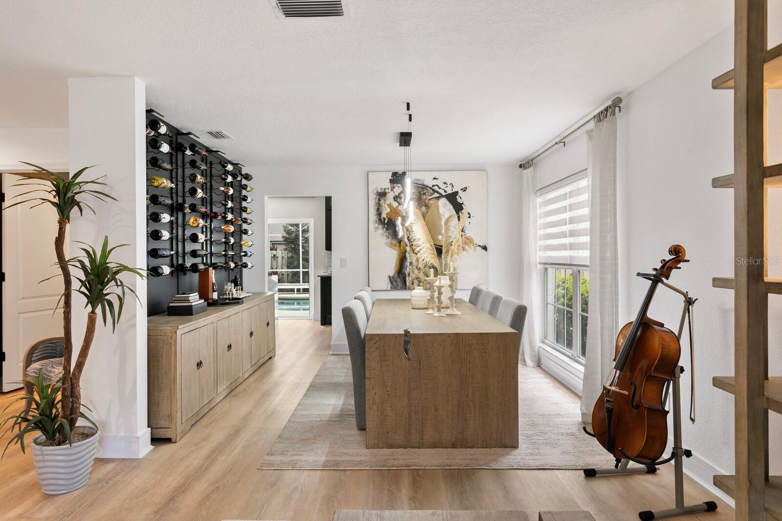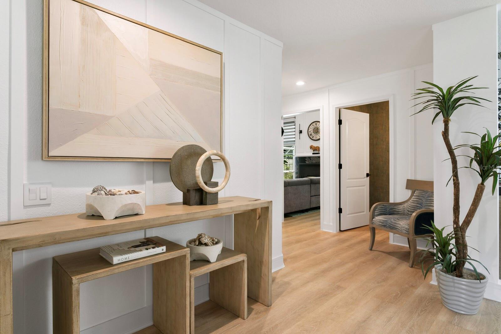 ------Buyer's Financing Fell Through! Appraisal and Home Inspection all good!------ Welcome to true Florida indoor, outdoor, and community living. This home is nestled at the corner end of a quiet cul-de-sac in Parkside of the prestigious Hunter’s Green community, this beautifully remodeled residence is surrounded by stately oak trees and showcases exceptional curb appeal from the moment you arrive. The exterior has been thoughtfully designed with a combination of mature and new professional landscaping, solar uplighting that highlights the architecture and trees at night, and a fenced in yard for added privacy. This all leads to a new front door that sets the tone for the modern elegance found inside. The first floor is completely remodeled with all new flooring, baseboards, paint, and decorative wood trim and LED modern light fixtures. It continues with a new back door slider and custom 9 foot energy-efficient windows facing a beautiful screened in lanai and pool area. The newly opened living and formal dining room features a striking custom wine display wall that doubles as art display. The family room is a showstopper with soaring 18-foot ceilings that create a grand sense of scale. A custom wood-burning Brazilian granite fireplace serves as the focal point, framed by contemporary lighting, designer wall moldings, and a built-in display wall with cabinetry and soft uplighting and a remodeled powder room. The renovated chef’s kitchen includes custom cabinetry with Brazilian granite counter tops to all surfaces, dual spice racks, lazy Susans, a deceptive large pantry storage, premium Z-Line appliances, which includes an induction stove top oven, a panel-ready ice fridge, microwave/oven combo and a waterfall island with storage that is pre-wired for an under-counter refrigerator, making it a perfect effortless transition to entertaining. Upstairs, the primary suite offers a spa-inspired bath with custom shower, tiled soaking tub, dual vanities, large walk-in closet and updated flooring. The guest bath is equally impressive with sleek Italian tile and designer fixtures. An updated second floor laundry room with Italian tile is conveniently located. All bedrooms include high end accent wall coverings. Step outside to a beautifully refinished pool and deck. The pool is accented by LED lighting and surrounded by lush landscaping for added privacy. With over $150,000 in thoughtful enhancements, this home is truly move-in ready and located in one of New Tampa’s most desirable gated communities. Additionally, adjacent to the property is the community park for tennis/pickleball, basketball, volleyball, soccer, baseball, kids park,dog park. You have the option to join Hunter's Green Country Club which feature an 18-Hole Tom Fazio designed golf course and a Tennis and Athletic Center. Close by is Flatwood Nature Park with a 7-mile loop for biking, hiking, and bird watching. Hunter's Green offers a community elementary school and easy access to I-75, Moffitt Cancer Center, Advent Health, Bay Care Hospital, USF and regional malls.