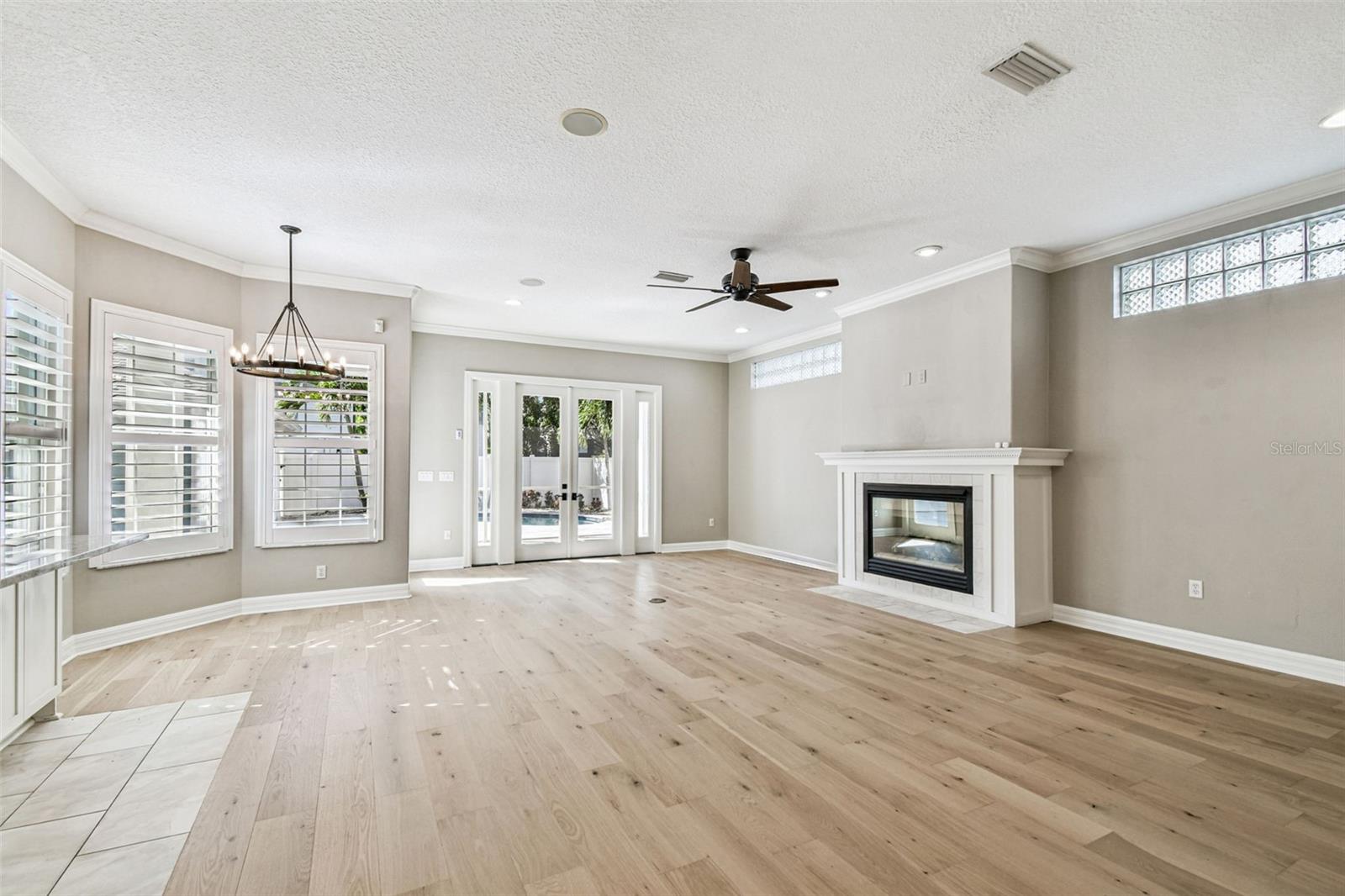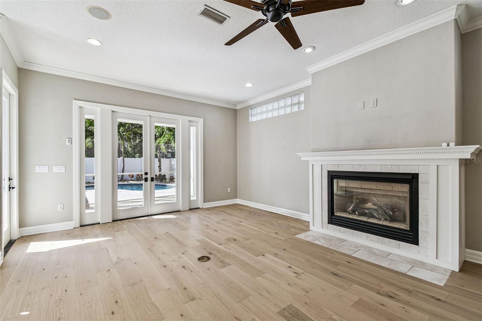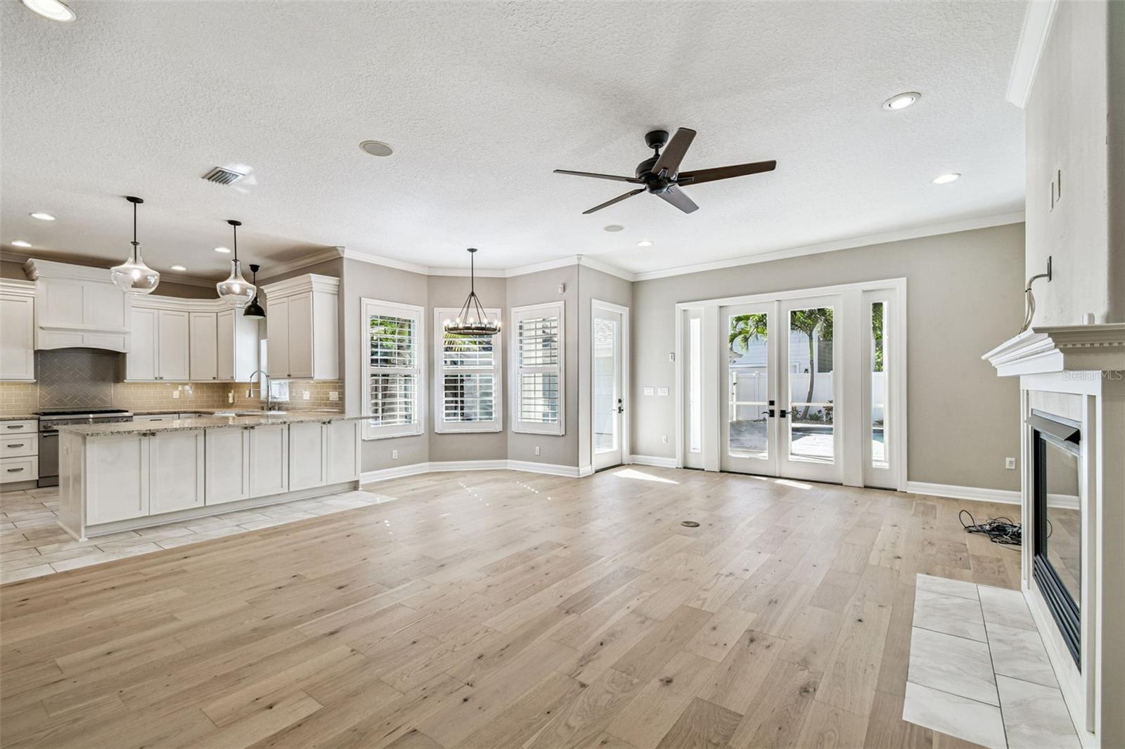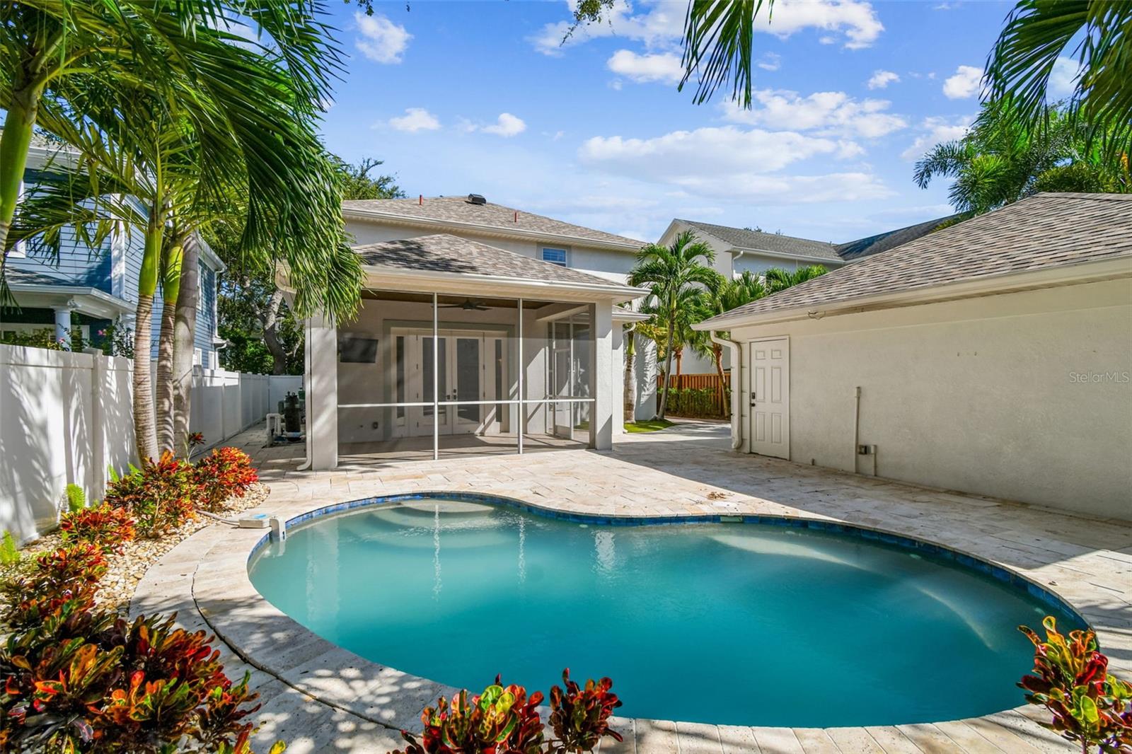 Welcome to this lovely POOL home in New Suburb Beautiful, one of the most coveted neighborhoods in all of South Tampa, known for picturesque tree lined streets, top schools, convenient location, and a HIGH AND DRY elevation giving you stress free living where no flood insurance is required. From the welcoming front porch you will step through the front door onto brand new wide plank white oak flooring installed throughout the entire home. As you enter the home the living area and dining room are on your left. Towards the back of the home is the beautifully updated kitchen with a Thermador 6 burner gas range, all stainless-steel appliances, a microwave drawer, a wine fridge, and an eat-in kitchen nook. The kitchen is open to the expansive family room with gas fireplace and French doors leading to the screened in lanai all overlooking the heated pool with light colored travertine pavers. The detached 2 car garage is accessed through the privately GATED driveway with front and rear doors for easy and convenient drive through ally access. The first floor also features a bedroom which would make a perfect guest suite/den/office along with a full bath. Upstairs are 4 more spacious bedrooms, a guest bathroom, laundry, and the owner’s suite with a vaulted ceiling, walk-in-closet, a timeless black and white tiled bathroom with double sinks, a jacuzzi tub and a separate walk-in shower. You must see this perfectly maintained home in this gorgeous neighborhood!