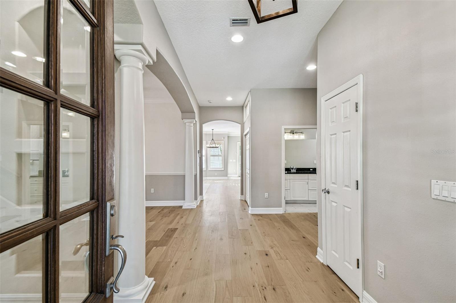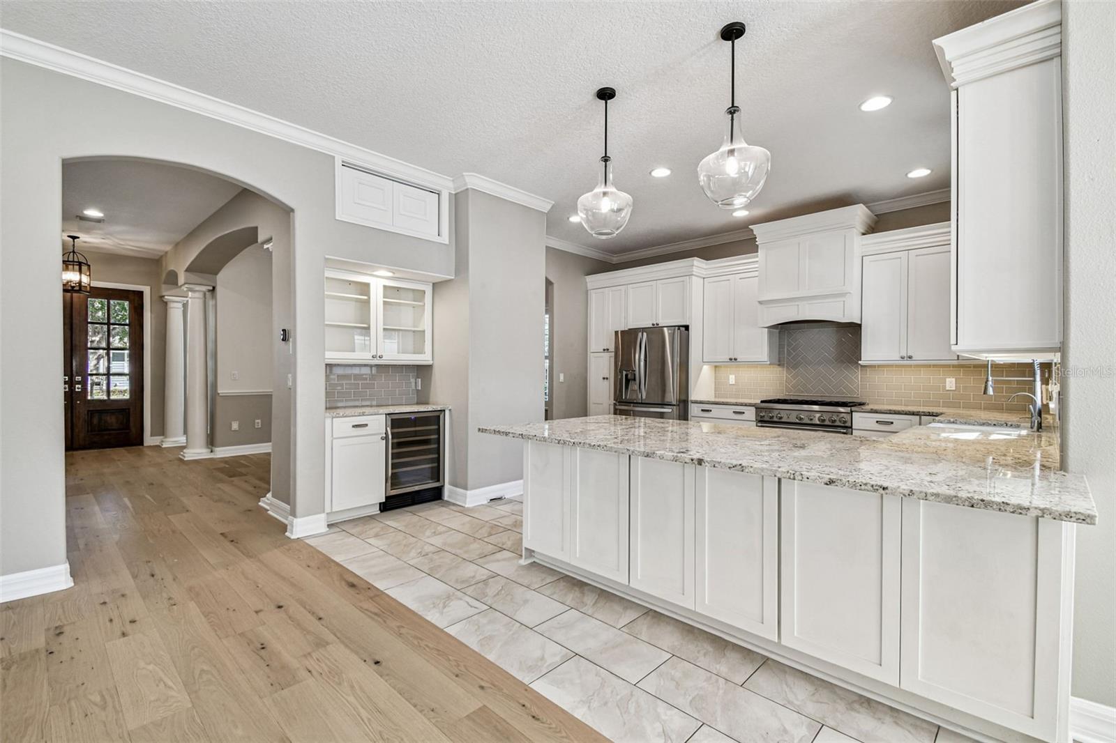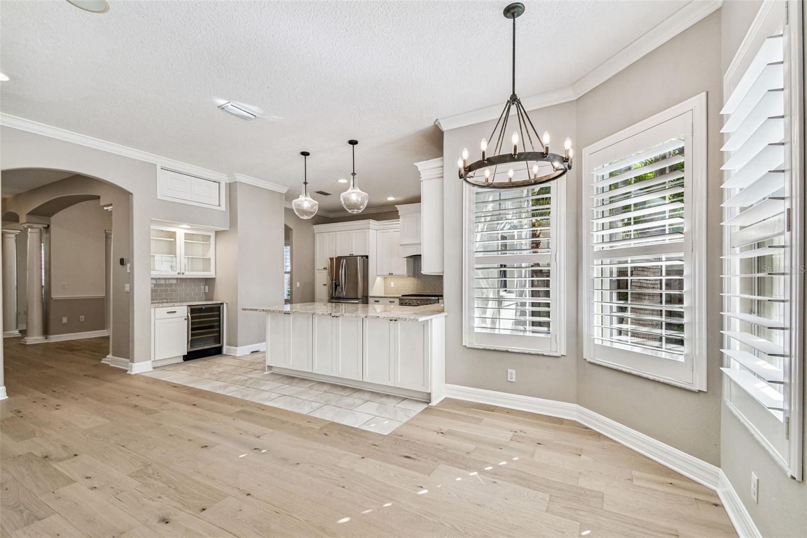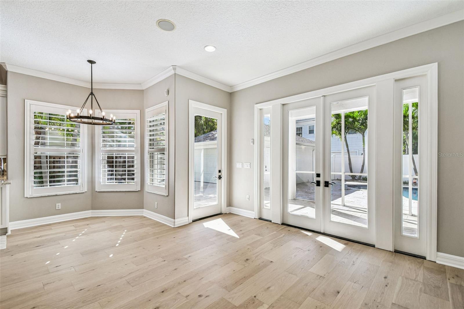 Welcome to this lovely POOL home in New Suburb Beautiful, one of the most coveted neighborhoods in all of South Tampa, known for picturesque tree lined streets, top schools, convenient location, and a HIGH AND DRY elevation giving you stress free living where no flood insurance is required. From the welcoming front porch you will step through the front door onto brand new wide plank white oak flooring installed throughout the entire home. As you enter the home the living area and dining room are on your left. Towards the back of the home is the beautifully updated kitchen with a Thermador 6 burner gas range, all stainless-steel appliances, a microwave drawer, a wine fridge, and an eat-in kitchen nook. The kitchen is open to the expansive family room with gas fireplace and French doors leading to the screened in lanai all overlooking the heated pool with light colored travertine pavers. The detached 2 car garage is accessed through the privately GATED driveway with front and rear doors for easy and convenient drive through ally access. The first floor also features a bedroom which would make a perfect guest suite/den/office along with a full bath. Upstairs are 4 more spacious bedrooms, a guest bathroom, laundry, and the owner’s suite with a vaulted ceiling, walk-in-closet, a timeless black and white tiled bathroom with double sinks, a jacuzzi tub and a separate walk-in shower. You must see this perfectly maintained home in this gorgeous neighborhood!