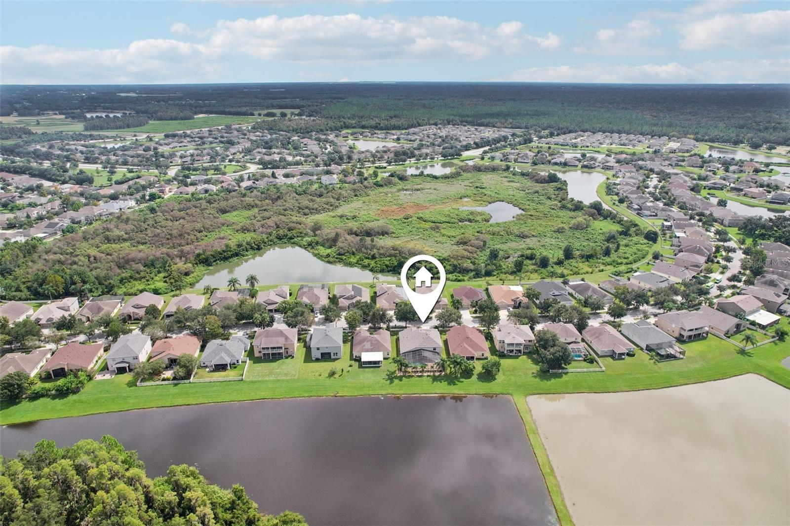 Welcome to Easton Park! This stunning 6-bedroom, 4-bathroom pool home offers over 3,400 sq/ft of living space and was built in 2008. BRAND NEW ROOF!!!Perfectly situated on a tranquil pond with wooded views, the property features an oversized screened pool and patio—ideal for relaxing or entertaining. Step inside to a grand foyer with a custom tiled medallion, leading to both formal living and dining areas. The open-concept kitchen and family room create the heart of the home, featuring 42” wood cabinets, stainless steel appliances, and plenty of counter space. The first-floor owner’s suite provides comfort and privacy, while upstairs offers generously sized bedrooms—perfect for a game room, home office, or guest space. Additional highlights include volume ceilings, crown molding, fresh interior and exterior paint, new carpet, and a convenient laundry room. Easton Park is a sought-after New Tampa community with amenities including a pool and playground. Located near top-rated schools, a state-of-the-art public library, shopping, dining, and entertainment, this home offers both convenience and luxury. Don’t miss the opportunity to make this exceptional property yours—schedule your showing today!