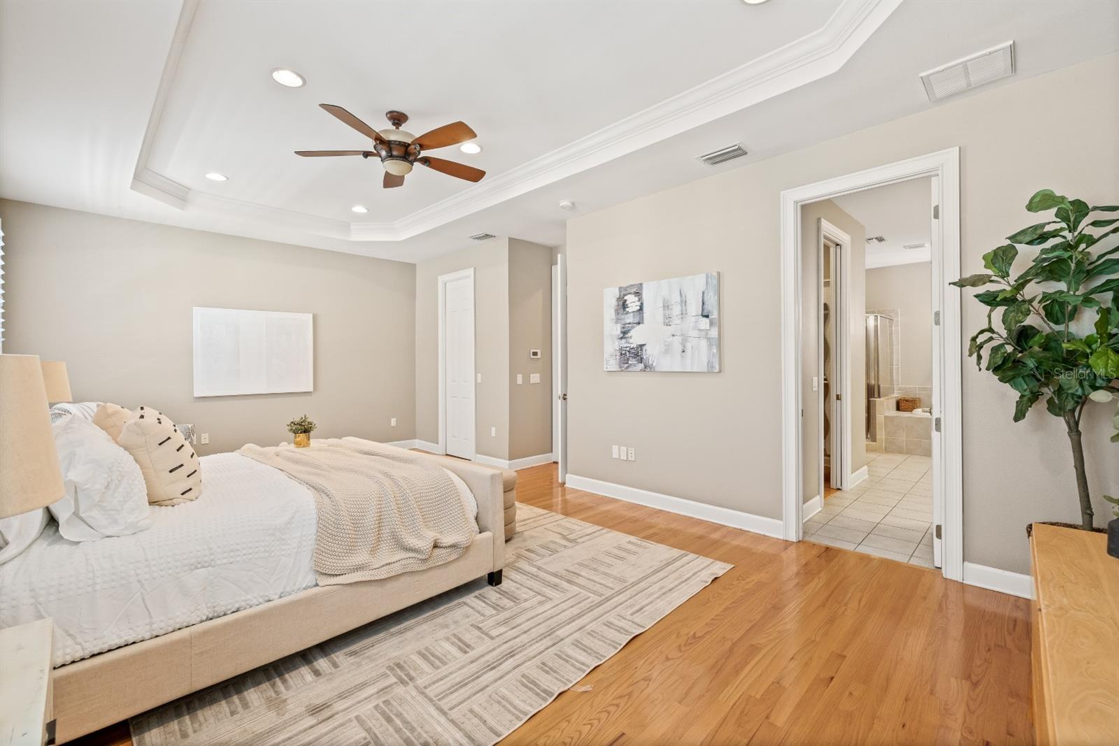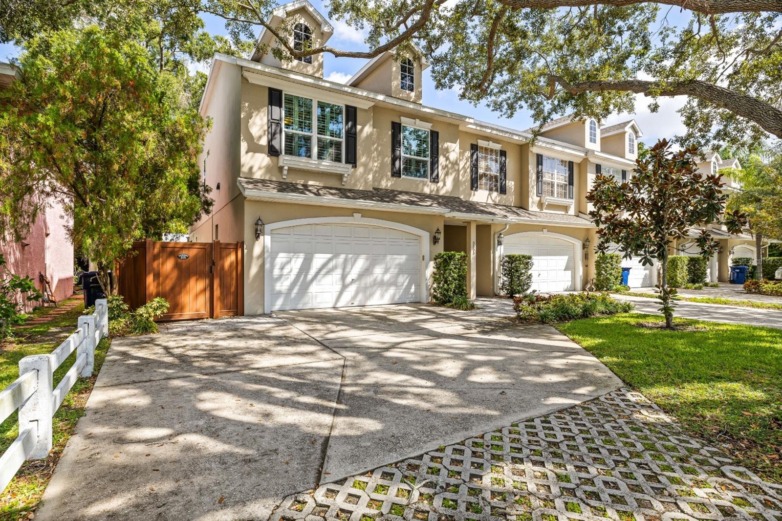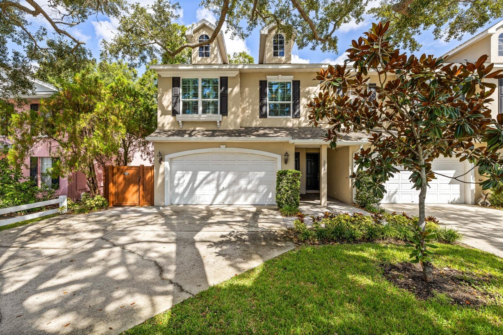 Live in one of the most desirable areas of South Tampa! This beautiful end-unit townhouse in Palma Ceia has 3 bedrooms, 2.5 bathrooms, and a little over 2300 square feet. You will love the floorplan and 10ft ceilings with 8ft doors throughout. As you walk inside you will see the door leading to the 2-car garage. There is a nice first floor half bathroom as well. The kitchen is large with a walk-in pantry and opens into the dining nook and living room area. Just off the dining nook there is a gorgeous, large, screened and covered patio. Perfect for relaxing in the shade! Upstairs is the main bedroom as well as 2 secondary bedrooms. The main bedroom has tray ceilings, lots of light, and 2 large closets. The main bathroom has a large soaking tub and separate shower. The laundry closet is upstairs with the bedrooms. Both secondary bedrooms are a great size with a lot of storage. A second full bathroom completes the upstairs. The windows were replaced in 2020 as well as gorgeous interior shutters. The A/C was replaced in 2023 for ease of mind, roof in 2024 and water heater in 2021. This townhouse is in Flood Zone X and has not had any history of flooding. Within walking distance to shops and restaurants including Louis Pappas and Kelp Sushi. Zoned for some of the best schools. Less than 15 minutes to MacDill, 10 minutes to downtown Tampa, and less than 20 minutes to the airport. One or more photos is virtually staged.
