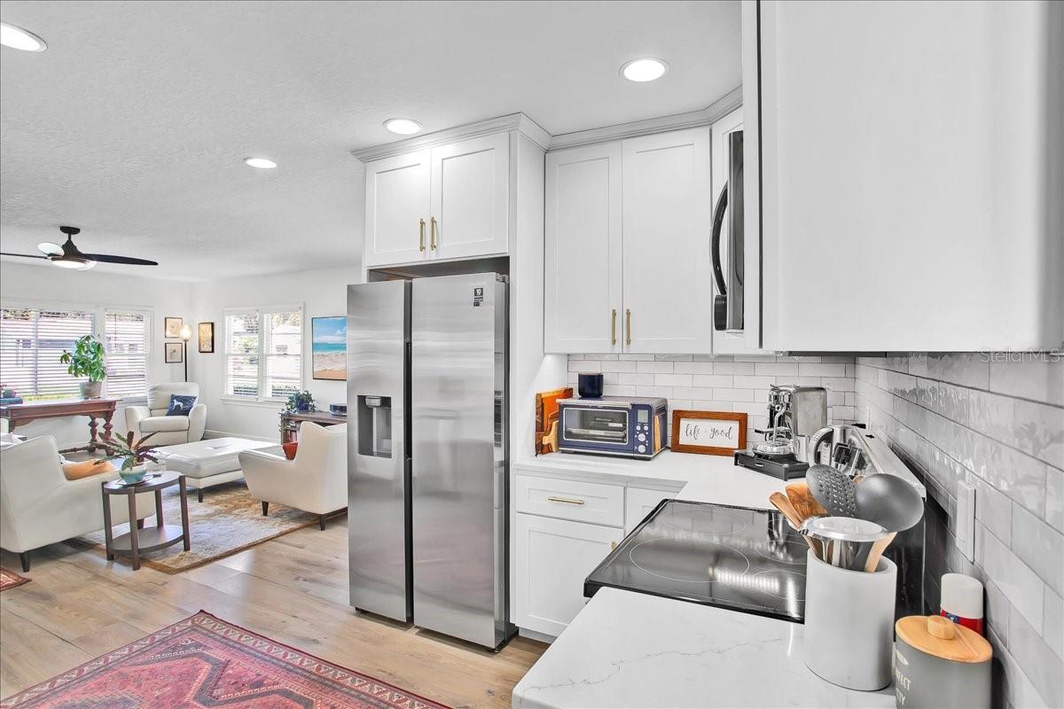 Charming Renovated Cottage in Seminole Heights located within walking distance to Rivercrest Park and the Hillsborough River, and just minutes from Armature Works, downtown Tampa, hospitals, universities, and Tampa International Airport—this home offers the perfect blend of charm, location, and modern convenience. This beautifully updated 3-bedroom, 2-bathroom home with a carport and a detached one-car garage with a storage room, nestled in the heart of Seminole Heights—one of Tampa’s most sought-after neighborhoods! From the moment you open the custom Craftsman-style front door, you're greeted by an abundance of natural light and a spacious open-concept living and kitchen area, perfect for entertaining. The fully upgraded kitchen boasts modern white and oak shaker cabinets, quartz countertops, designer-curated lighting and hardware, brand-new stainless-steel appliances, and a seamless flow into the living area. Both bathrooms have been completely renovated with new tile, vanities, mirrors, lighting, and plumbing fixtures. The highly desirable split floor plan offers privacy and functionality, with two bedrooms and a full bath on one side of the home, and a private master suite on the other. The master features a walk-in closet and an en-suite bathroom with vertical panel detailing and upscale finishes. Move-in ready with major updates: New roof 2021, new attic insulation 2021, new garage door 2021, new garage door opener 2023, new LVP flooring 2021, interior and exterior paint 2021, new lighting and plumbing fixtures 2021, water heater 2020, transferrable termite warranty 2021. Enjoy the outdoors in the fully fenced backyard, featuring a covered porch, storage shed, and ample space to relax, entertain, or add a pool. The detached garage offers potential for a MIL suite or studio, adding even more value and flexibility.