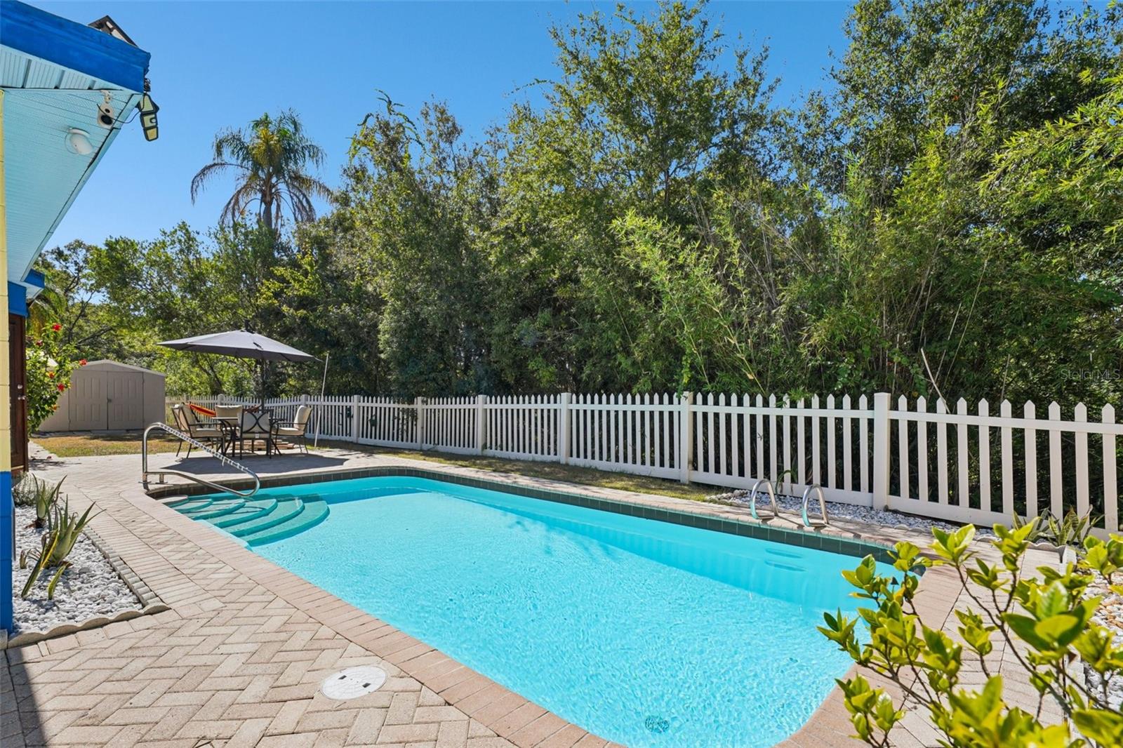 VA LOAN IS ASSUMABLE TO ALL BUYERS WITH ACCEPTABLE OFFER - 2.875% interest, approx $322,000 principal balance! Welcome to this inviting 3-bedroom, 2-bathroom pool home with no HOA—offering the freedom to live your way! All furniture is negotiable, making this an easy and flexible move-in opportunity. You’re greeted by a spacious screened courtyard, perfect for morning coffee or evening relaxation. Inside, natural light fills the open layout, creating a bright and welcoming atmosphere throughout. The spacious living area features a striking stone double-sided fireplace, adding warmth and character to the heart of the home. The kitchen offers an island and breakfast bar, seamlessly flowing into the dining area where you can enjoy views of the sparkling pool. The primary bedroom provides comfort and space, complete with dual closets and a private ensuite with shower. Two additional bedrooms share a full bath, ideal for guests or a home office. The fenced backyard is a private retreat with an inground pool, plenty of patio space for entertaining, and a shed for extra storage. A 2-car garage adds convenience, and security cameras (subscription required) provide peace of mind. An assumable VA loan is also available, adding even more value to this move-in-ready home that perfectly captures the spirit of relaxed Florida living—no HOA, great outdoor space, and a layout designed for comfort and connection.