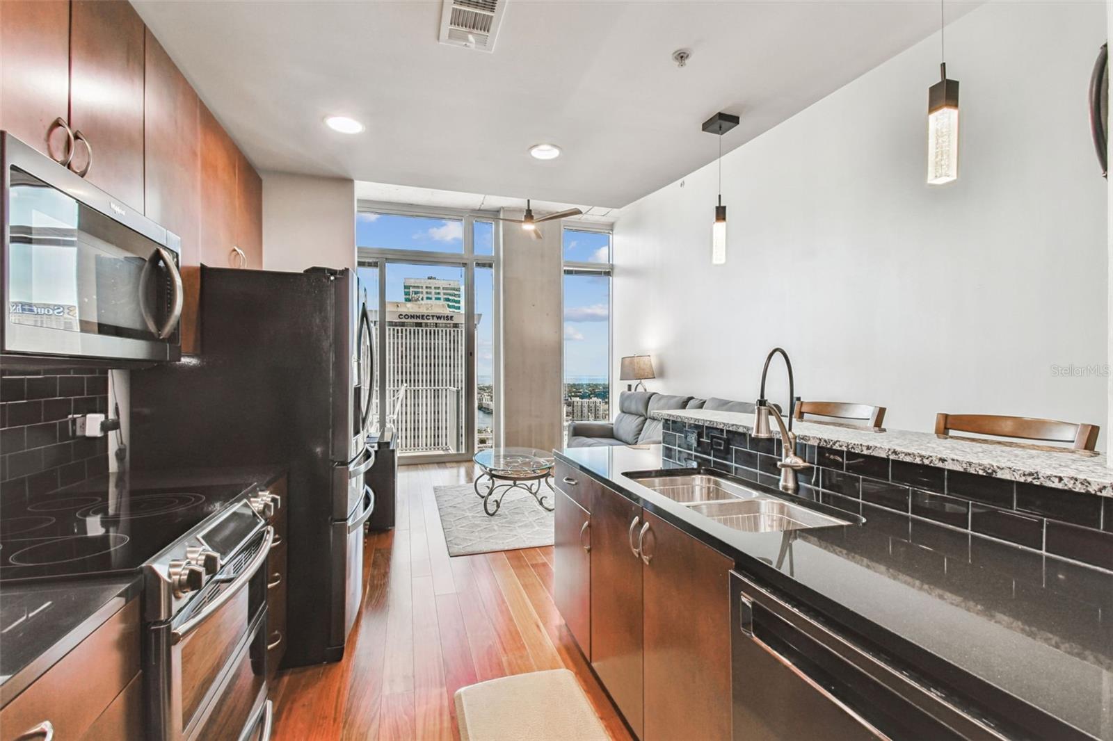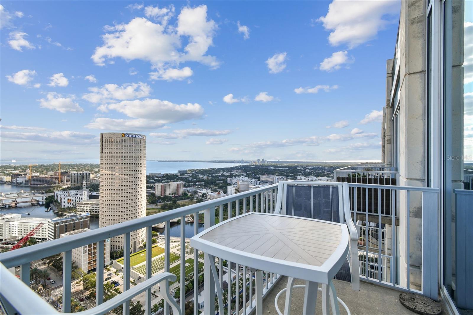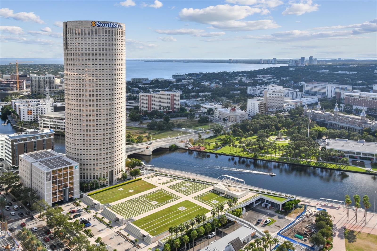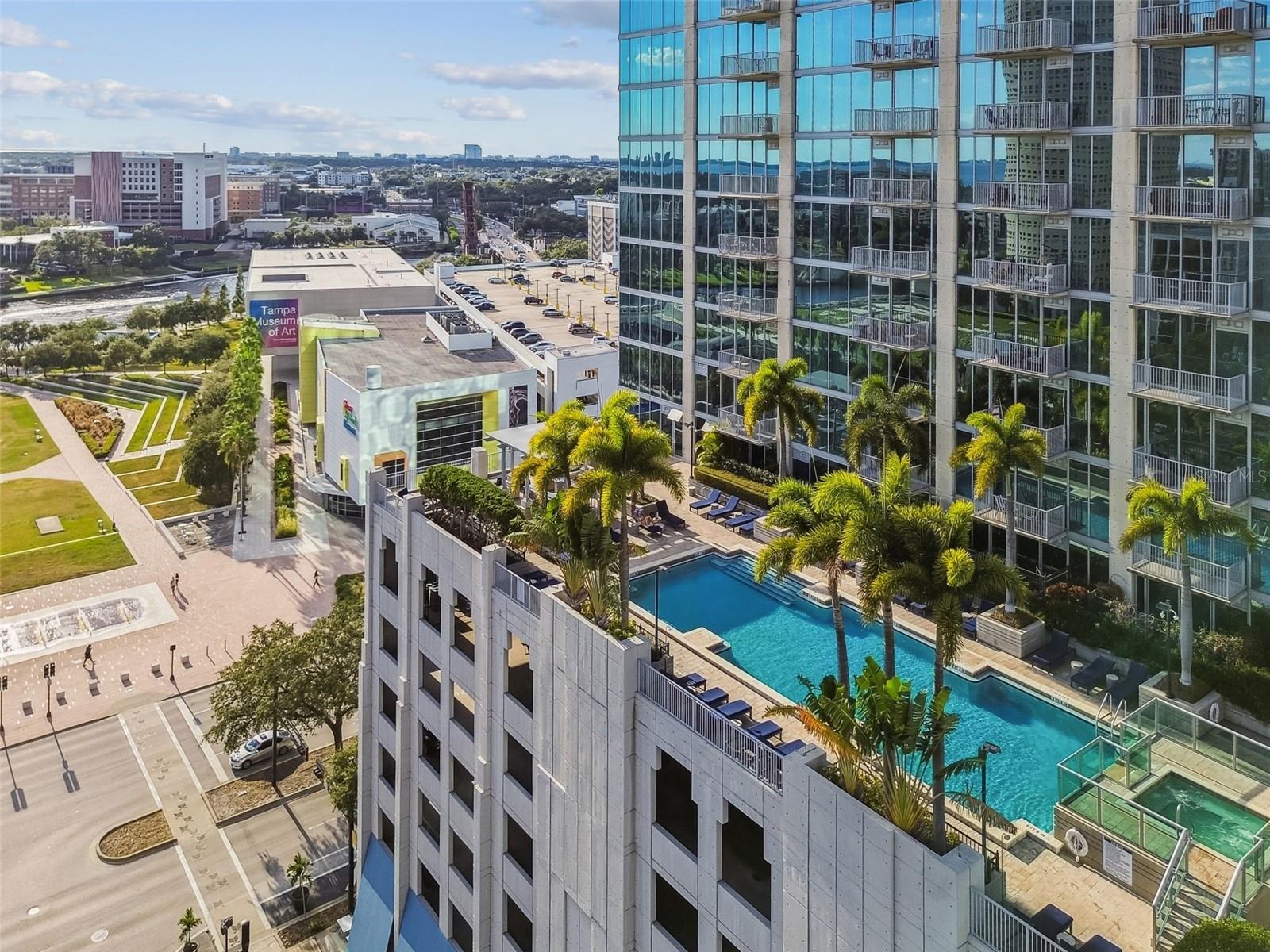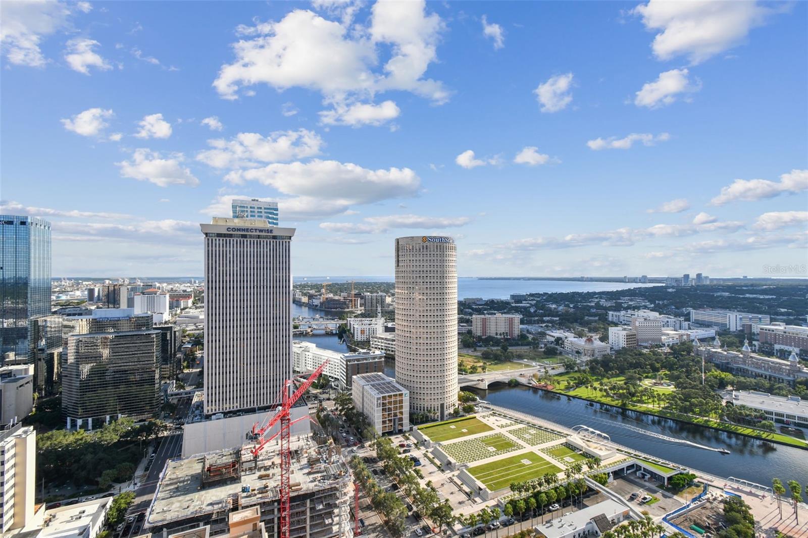 Welcome to SkyPoint — Luxury High-Rise Living in the Heart of Downtown Tampa! Imagine being in the energized urban center of all that Tampa has to offer. Walk to concerts and hockey games at Benchmark Arena, shows at the Straz Center, or exhibits at the Museum of Art. Dine at dozens of nearby restaurants, or cross the street to Curtis Hixon Park where festivals and city events take place year-round. Stay active with yoga or Zumba in the park, or enjoy a jog along the scenic Riverwalk. This PENTHOUSE LEVEL, south-facing condo offers incredible views of Tampa Bay and the Hillsborough River through dramatic 12-foot, floor-to-ceiling windows. Relax on your private balcony as you take in breathtaking sunsets. SkyPoint is a well-managed, pet-friendly building with low HOA dues and resort-style amenities: a 24-hour concierge, 1 gig internet, two fitness centers (cardio and weight rooms), heated rooftop pool and spa, media room, and 8th-floor club level with theater room, billiards, full kitchen, and tropical-style lounge areas with multiple grilling stations. A prime second-floor parking spot and newer appliances complete this exceptional offering.