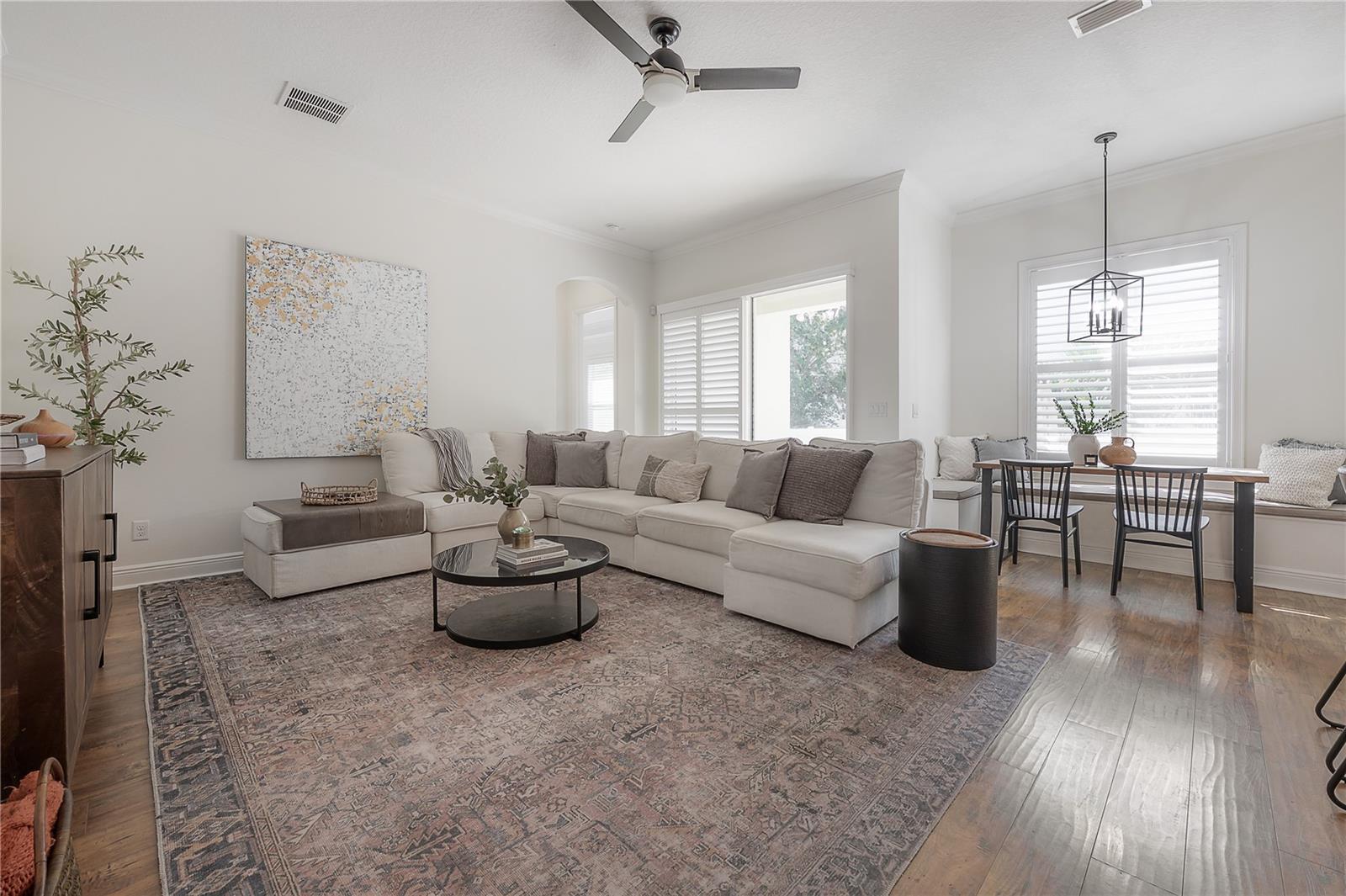Welcome to 3623 S Renellie Drive, a beautiful home ideally located on a large cul-de-sac with a sprawling park and lush green space just steps away. Inside, the thoughtfully designed floor plan is filled with natural light and features 5 bedrooms, including a first-floor primary suite, a pristine kitchen with granite countertops, stainless steel appliances, and a custom pantry, plus comfortable living areas perfect for both everyday life and entertaining. Step outside to your private backyard oasis, complete with multiple seating areas, turf, pavers, and a resort-style saltwater pool and heated spa—ideal for hosting gatherings or enjoying quiet Florida evenings. Additional highlights include a spacious primary suite, a large loft, a versatile flex space currently used as an office (easily converted to another bedroom), and abundant storage. Combining style, comfort, and an unbeatable location, this home offers the ultimate Florida lifestyle.