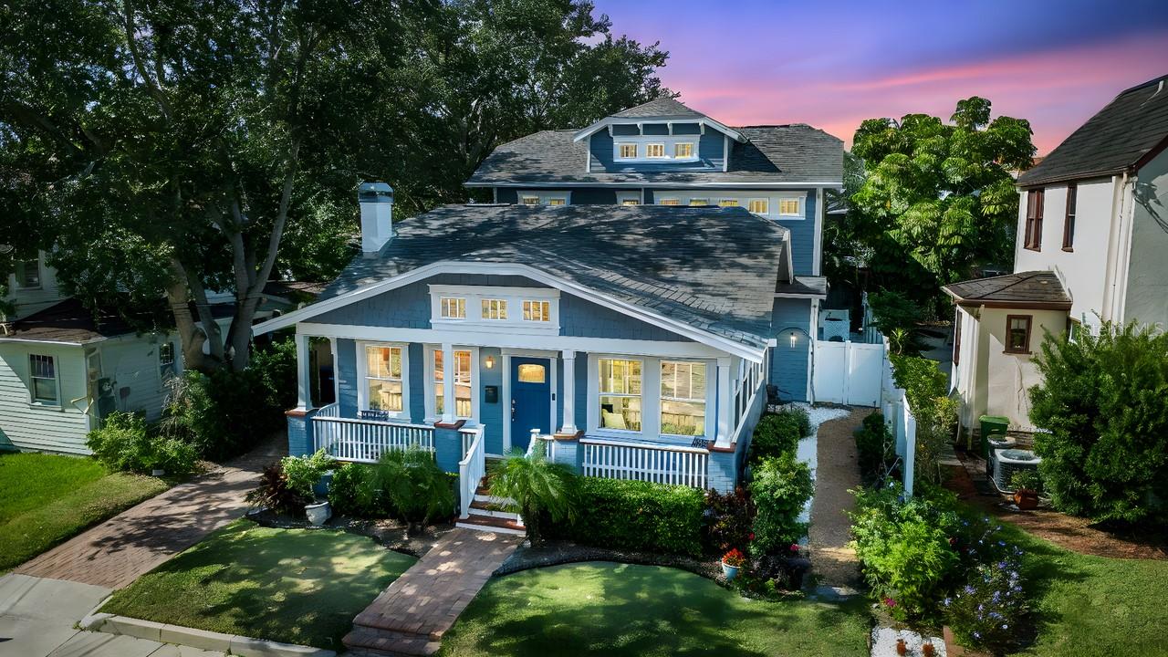 Step into a perfect blend of South Tampa charm and contemporary refinement. From the inviting front porch of this Craftsman-inspired home—with its strong horizontal profile, tapered brick piers, “bungalow meets modern addition” feel—you immediately sense a graceful balance of heritage and upgrade. The covered porch welcomes guests into the heart of this residence. On the inside, the main level opens with wide oak plank flooring, 9-foot ceilings, and a natural light stream through tall windows. A formal living room anchors the home with a stylish wood-burning fireplace and custom mantle, while adjacent you’ll find a sunroom filled with light and a formal dining area ideal for entertaining. The kitchen was designed with thoughtfulness and style: a center island/breakfast bar, stainless-steel appliances (including an induction cooktop and built-in convection oven), and beautiful granite countertops. The kitchen flows directly into a family room that opens to the backyard patio, creating a seamless indoor/outdoor zone perfect for daily living or hosting guests. The owner’s suite is located on the main floor and delivers both comfort and elegance: dual vanities, a pedestal free standing tub, and a separate glass-enclosed shower. A flexible office/den just off the main level can serve as a guest room, home office or secondary living space. A quaint powder bath is conveniently located adjacent to the study. Upstairs, a well-lit secondary primary suite sits alongside two additional bedrooms, a full bathroom and a convenient upstairs laundry room — creating a thoughtful layout for family or visiting guests. Through every space, architectural details shine: crown molding, wood casings and built-ins honor the earlier bungalow character while the scale of the addition (added in 2017 to the original 1300 sqft bungalow) holds its own for modern life. With approx. 3,224 sq ft of living space, this two-level residence delivers both formal and casual zones, private and shared spaces, and a timeless palette of finishes. Outside, you’ll find a backyard sanctuary designed for both activity and relaxation. A contemporary lap pool (added in 2018) offers a clean, long swim lane and crisp resort-like edges. French doors from the family room open the house to the outdoors, reinforcing the sense of continuous living. The result is a fully fenced-in backyard retreat tailored to lifestyle. Mature landscaping and a low-maintenance lawn border the space, providing privacy and a lush backdrop. Parking and garage access are handled with the same notion of thoughtful design: there is a detached one-car garage, accessed via a long driveway and granting a separate side entry to the kitchen area for everyday ease. An electric vehicle charger is conveniently located nearby and conveys with the home. This home is truly a rare find—melding South Tampa’s street-charm, walkability, bay-close lifestyle, and contemporary amenities. From the welcoming front porch to the refreshed interior and the pool-side retreat, every detail has been sculpted for style, comfort and function. The Sellers are including a 1 year American Home Shield Warranty. You don't want to miss this one!! Call for your private showing.