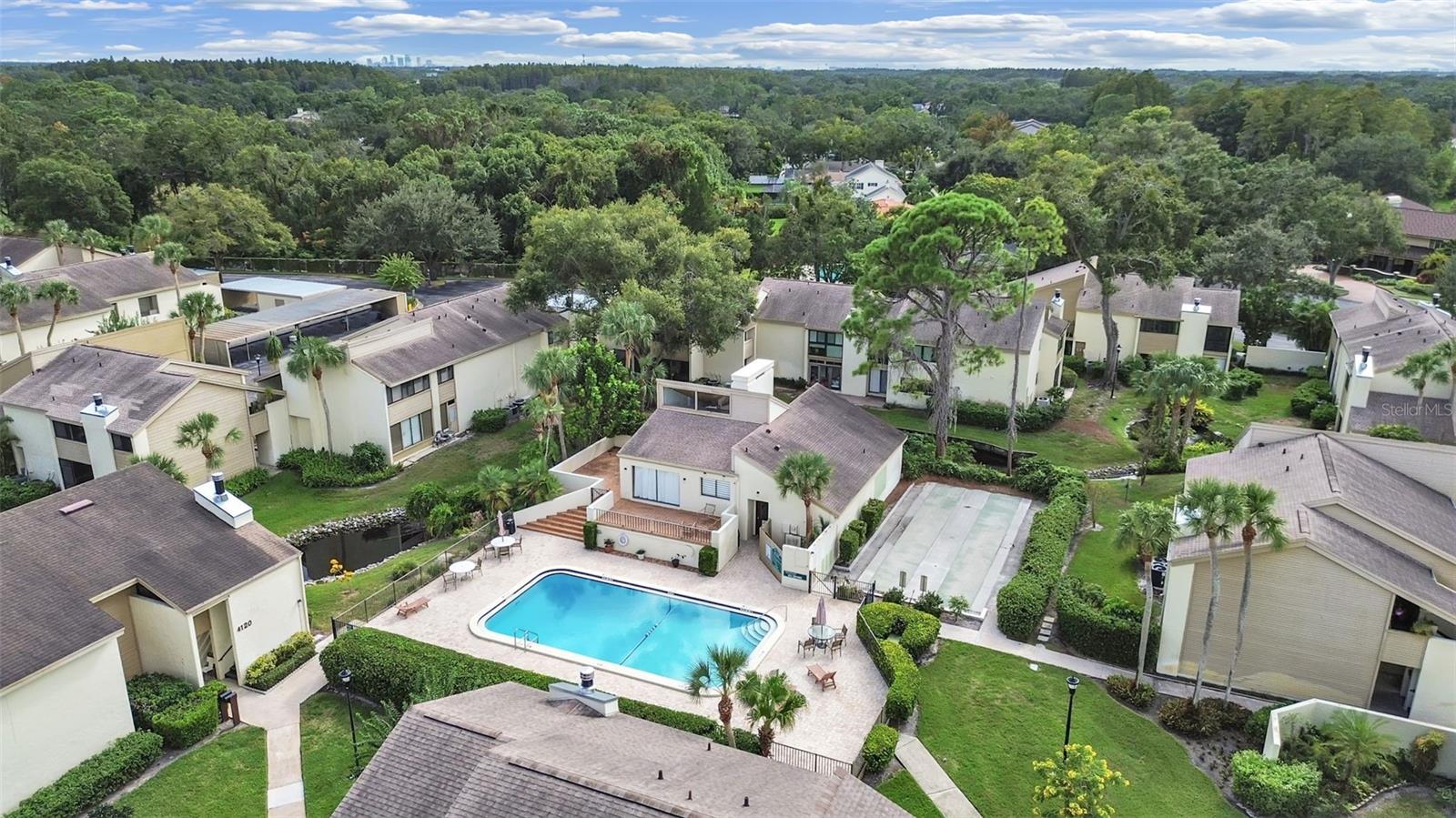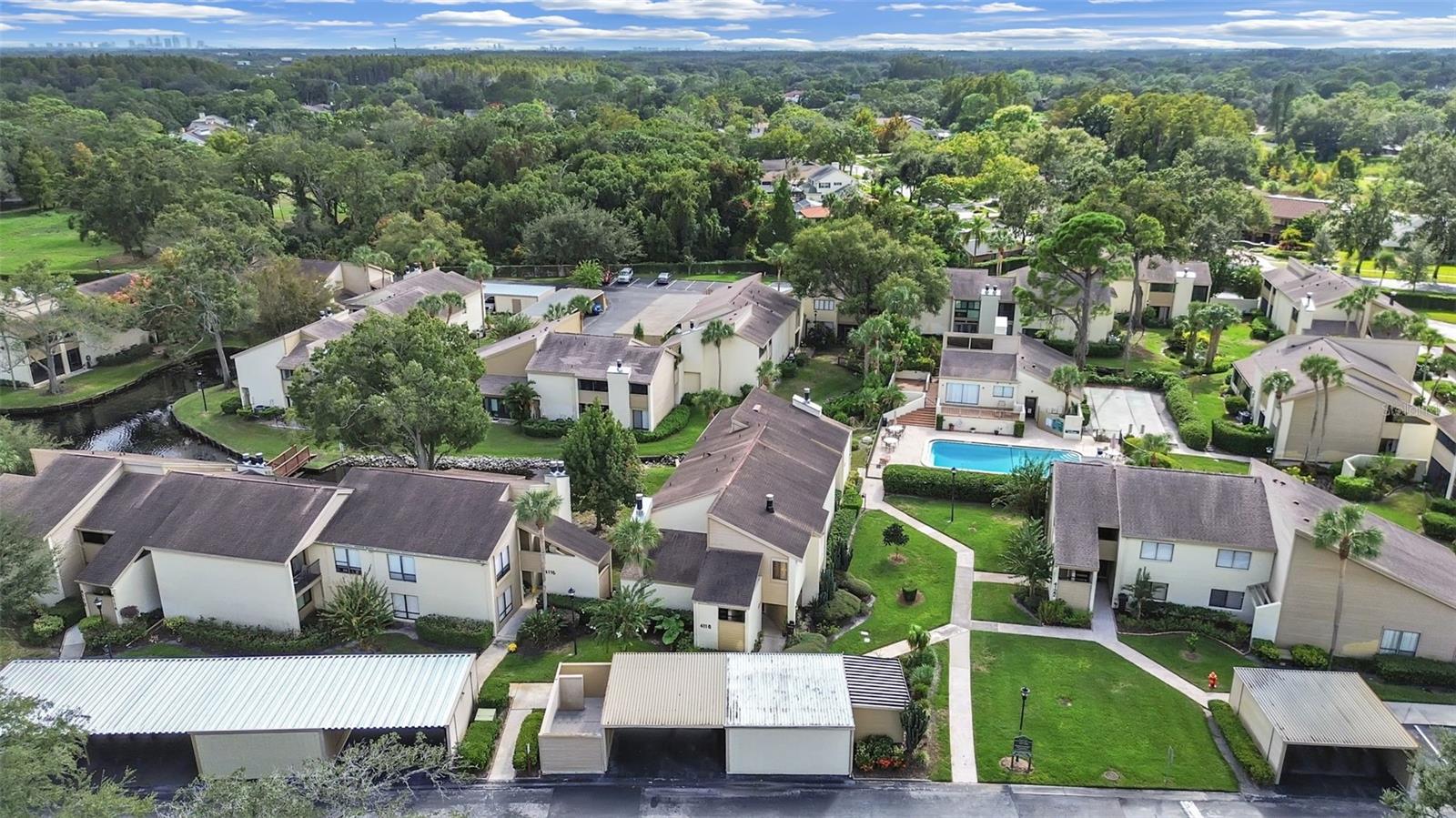 Offering a Great Deal in Carrollwood Village!! This FIRST FLOOR 2 bedroom, 2 bath home has plenty of space inside and out! Seller is motivated and ALSO offering an "update credit". The great room with cathedral ceiling opens to the dining room area/or flex space; maybe additional living area? Eat-In Kitchen with lots of cabinets and counter space, plus additional storage in laundry area and a separate closet pantry. The window over the kitchen sink looks onto the patio & opens as a pass-through to the shelf in the patio area ~ great for entertaining. The oversized primary bedroom currently fits the bed, a couch and a desk area! The 'wall of closets’ offers plenty of closet & storage space. Convenient Ensuite bath. The second bedroom also has a large closet. The enclosed patio is screened to allow the option of leaving the sliders open in nice weather. The patio is quite private and the exterior area can be extended with pavers for outside use. Pretty water view in back. Home is located just around the corner from the Clubhouse and large pool. The carport is close to the front entrance (& your private mailbox)...plus additional personal storage area in the same building. The monthly fee covers: full Spectrum cable with 200+ channels, internet, water, trash collection, building insurance, exterior building and grounds maintenance as well as the community pool and clubhouse. You'll also be able to enjoy use of Carrollwood's beautiful parks and playgrounds. The home is located near major shopping, retail, restaurants, and in the 'heart of Tampa'.