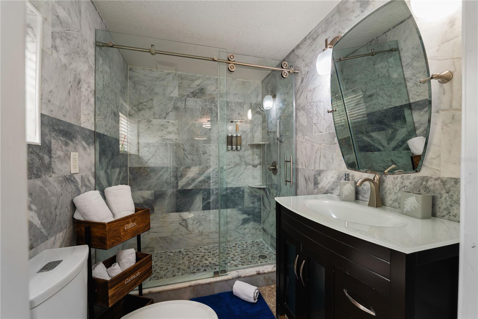 NO CDD, NO HOA, THIS HOUSE HAS A LONG LIST OF UPGRADES!! The garage was converted into a master suite with full bath by the previous owners and has since been remodeled with top quality materials. The kitchen has modern cabinets with a fully functional island, and granite countertops. All stainless steal appliances will convey! The owners favorite part of the property is the backyard. This fully paved yard has a full outdoor kitchen next to the oversized inground pool. You will need to come and see the shed that they have modified into a tiny home! It is definitely an attention grabber and could be great for a guest house or hang out room. On the left hand side of the home there is also an additional shed that will convey with the property. Enjoy this corner lot with direct access to the Tampa Bay trail. There is a repaired sinkhole for this property on 2008