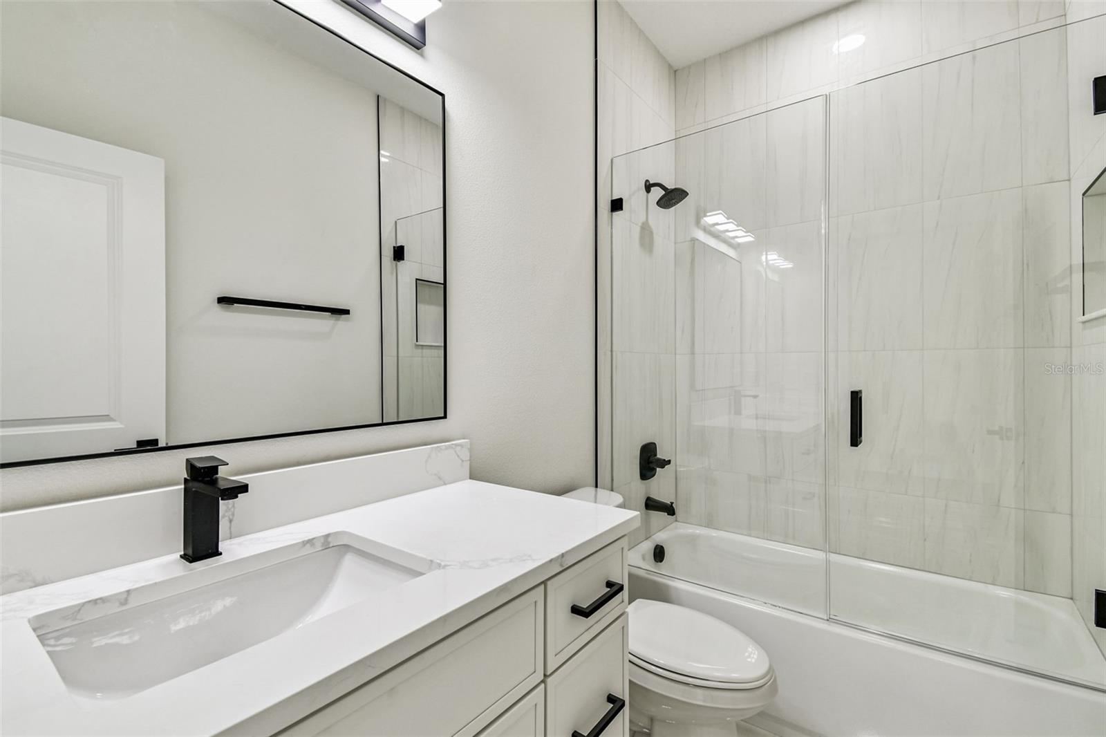 Welcome to this sleek and stylish contemporary 4-bedroom, 3-full bathroom home in the heart of a vibrant neighborhood! The moment you step inside, you’ll immediately feel the attention to detail; 9’ ceilings, a modern interior paint scheme, and cement-look tile flooring that spans the entire first floor. Just off the entry, you’ll find a formal dining room to one side and a versatile bedroom to the other, which is perfect as an office, guest space, media room, playroom, or whatever fits your lifestyle. The kitchen is a true showpiece, featuring slim shaker cabinets, quartz countertops, ample cabinet storage, a striking 8-ft waterfall island, and a substantial porcelain tile backsplash. Adding a touch of elegance, you'll find a stylish wine nook tucked beneath the staircase. Upstairs you’ll find luxury vinyl flooring and the spacious primary suite along with two additional bedrooms and a full laundry room that makes daily tasks convenient and efficient. The primary suite includes a tray ceiling, a walk-in closet, and its own private bathroom with dual sinks and a walk-in rainfall shower wrapped in premium tile-work. Impact windows have been installed on the second floor for added peace of mind. No flood insurance required, and there is NO HOA and NO CDD. This home is centrally located, placing you minutes from everything Tampa has - Midtown, Downtown, Tampa International Airport, International Plaza, Hillsborough River, Armature Works, major highways, beaches, restaurants, and shopping. Here is your opportunity to own a brand-new modern home without the wait of building. Don't let it pass you by!