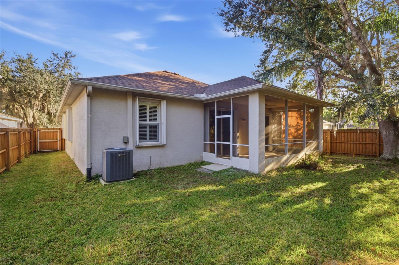 One or more photo(s) has been virtually staged. Tucked within the peaceful Cross Creek community, this MI Homes Oxford II model offers 4 bedrooms, 2 bathrooms, and 1,868 sq ft of beautifully refreshed living space designed for comfort, connection, and everyday ease. As you approach 10232 Grant Creek Drive, lush landscaping guides you toward the covered entryway, setting a warm, welcoming tone for what awaits inside. Step through the front door and instantly feel the openness created by abundant natural light dancing across the home’s architectural inlay, a detail that adds depth and elegance as you enter. New flooring flows seamlessly throughout, enhancing the bright, cohesive feel of the space. Just off the entryway, the spacious Family Room/Dining Room combo creates a perfect backdrop for life’s celebrations—holiday dinners, birthdays, or cozy gatherings with friends. The layout invites you to design this space to suit your lifestyle, whether you envision a formal dining setting or a more casual family space. Continuing down the hall, the heart of the home unfolds into a beautifully updated kitchen featuring quartz countertops, a subway tile backsplash, modern fixtures, stainless steel appliances, and a charming eat-in nook ideal for morning coffee or relaxed dinners. Just beyond the kitchen are the generously sized second and third bedrooms—perfect for family, guests, or a home office—along with the first full bathroom. As you move toward the rear of the home, the living room welcomes you with warmth and versatility. This space is ideal for movie nights, quiet evenings, or weekend entertaining. Glass sliding doors offer a view of the peaceful outdoors and provide effortless access to the lanai, blending indoor and outdoor living. The expansive primary suite sits privately on the opposite side of the home, offering a tranquil retreat at the end of the day. Wake up to conservation views, enjoy direct access to the outdoor space, and appreciate the spacious walk-in closet. The en-suite bathroom features a dual-sink vanity, soaking tub, and glass-enclosed walk-in shower—creating a spa-like ambiance designed for relaxation. Bedroom four is thoughtfully tucked at the rear of the home, also showcasing serene conservation views—an ideal guest room, office, or flex space. Step outside to a fully fenced backyard designed for both leisure and play. The screened lanai, equipped with rain and debris guards, invites year-round enjoyment, whether you're sipping morning coffee, hosting a weekend barbecue, or unwinding at sunset. Additional features include hurricane shutters, a Rain Bird irrigation system, and gutters for added peace of mind. Notable upgrades include a 2022 roof and 2015 AC, ensuring comfort and value for years to come. Cross Creek offers community amenities including a playground and tennis courts, making it easy to enjoy an active lifestyle close to home. Conveniently located near major highways I-75 and I-275, this home is just minutes from Advent Hospital, PHSC, AdventHealth Center Ice, The Shops at Wiregrass, and Tampa Premium Outlets—placing daily conveniences and weekend fun within effortless reach. Don’t miss the opportunity to own this exceptional home. Schedule your private showing today, and for a virtual tour, click the provided link to experience the charm and tranquility of 10232 Grant Creek Drive.