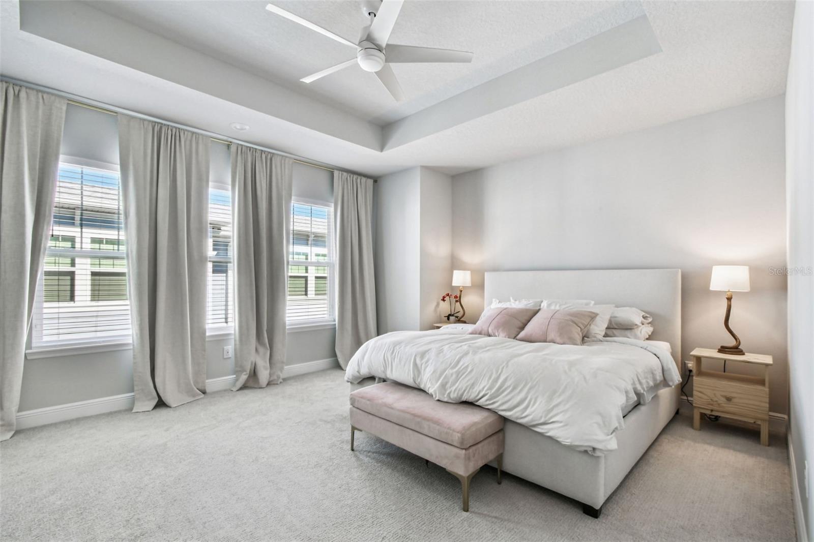 Located in the heart of South Tampa's vibrant SOHO district, this beautifully maintained end-unit townhome offers a rare blend of privacy, style, and convenience. With only one shared wall and guest parking right outside your door, this residence lives more like a single-family home. Enter through a private pavered courtyard framed by tropical palms and manicured hedges into a light-filled interior finished in a timeless neutral palette. The first floor features a welcoming foyer, full guest suite, and a two-car garage. The second floor showcases an open-concept design anchored by an expansive 12-foot kitchen island, butler's pantry, gas appliances, powder bath, and balcony just off the living area and kitchen, perfect for morning coffee or evening relaxation. Upstairs, the spacious primary suite impresses with a tray ceiling, large bay windows, and a custom-built walk-in closet. The spa-inspired bath features double shower heads, sparkling white quartz counters, and a private water closet. A third en-suite bedroom and convenient laundry area complete the top floor. Set within the Plant High School district and just moments from South Tampa's best dining, boutiques, and nightlife, this residence offers an exceptional lifestyle in one of Tampa's most coveted neighborhoods.