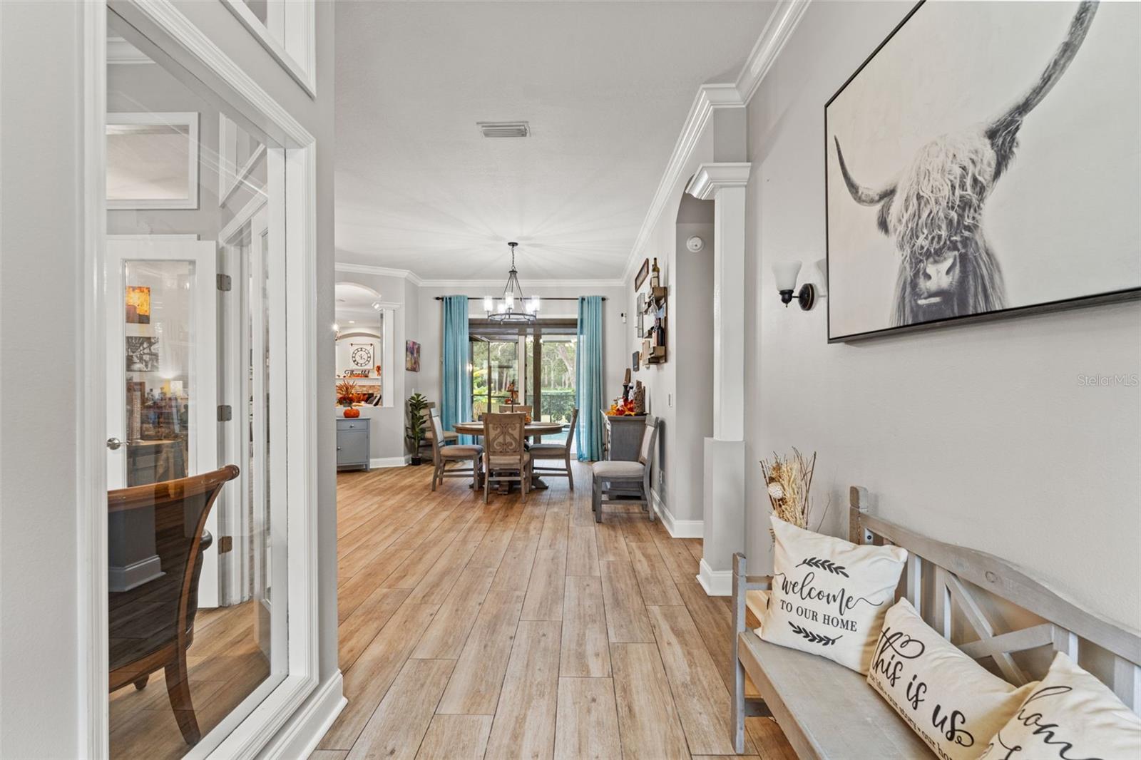 Welcome to this one-of-a-kind home in Casey Lake Manors, located in the highly desired Carrollwood! This unique property sits on almost one acre and backs up to a conservation area—offering serene nature views and no direct rear neighbors. Enjoy open green space, privacy, and an extra-large backyard that truly feels like your own oasis. The homeowners have extensively updated both the interior and exterior, allowing you to simply move in and enjoy. Improvements include a brand-new roof and chimney, new gutters, resurfaced pool, new pool equipment, new screens, hurricane-impact windows and sliding doors, a new paver fire pit, and much more. (See attached “Updates List” for full details.). This home features a true split floor plan with four bedrooms plus a dedicated office filled with natural light and a beautiful palm tree view. The primary suite includes patio access, two closets, and a bright, spacious bathroom with a convenient walk-in shower. The formal dining room is light and inviting, with direct patio access for seamless al fresco dining. The kitchen offers ample cabinetry, stunning granite countertops with bar seating perfect for entertaining, and a cozy breakfast nook. The open layout between the kitchen and living room creates an ideal gathering space, complete with a wood-burning fireplace and multiple access points to the patio. Step outside and enjoy the Florida lifestyle by the saltwater pool on your covered patio while taking in peaceful nature views. Additional highlights include a three-car garage and a large paver driveway. Located within the highly rated Carrollwood school district, this home offers an unbeatable location with access to monthly farmers markets just a brisk walk away, the Carrollwood Country Club, and the Carrollwood Village Park. You’ll also enjoy being close to restaurants, cafés, shopping, and having quick access to Tampa International Airport and the City of Tampa.