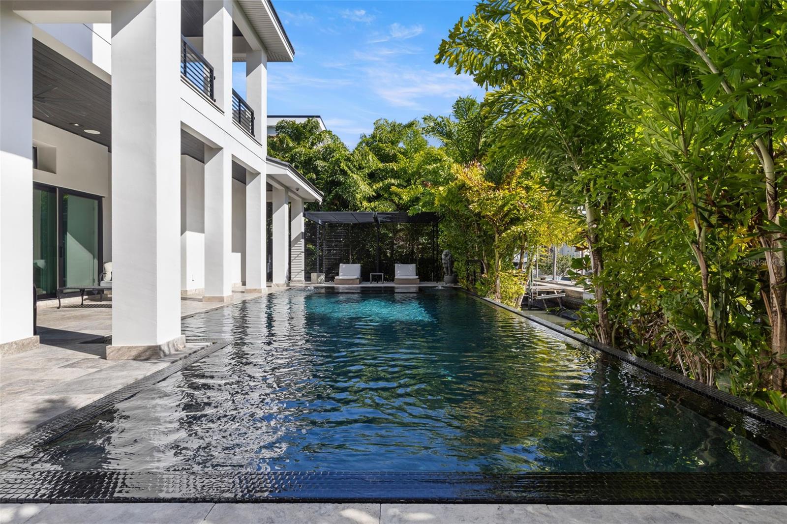 This home and pool remained fully intact through two hurricanes in 2024! Experience waterfront luxury in this one-of-a-kind contemporary masterpiece in South Tampa, custom built to elevate modern living. Step through the striking steel pivot door and enter a world of exceptional craftsmanship, where architectural steel accents set the tone for the dramatic design throughout the home. A grand foyer opens into an expansive great room with flowing, light-filled spaces and disappearing sliding glass doors that blur the line between indoors and outdoors. The terrace unveils a custom resort-style waterfront pool, steel pergola, and fully equipped outdoor kitchen—perfect for elevated entertaining or quiet relaxation. Boaters will love the 13,000 lb boat lift and the canal’s center, dredged in 2023, providing effortless access to the bay directly from your backyard. The stunning chef’s kitchen showcases professional-grade Viking appliances, a wet bar, and a spacious butler’s pantry. The great room features a steel-and-stone gas fireplace and a temperature-controlled glass wine room, while the sophisticated dining room is enhanced by designer lighting. A private office with custom steel doors and built-in cabinetry and a full mother-in-law suite complete the main floor. Upstairs, a generous open loft area offers the perfect space for a pool table, lounge, or retreat. The luxurious master suite includes a sitting area with serene water views, a spa-inspired bathroom with a dramatic Blue Agate feature wall, a custom-designed closet system, and a morning bar. A covered outdoor balcony area provides a year-round escape to enjoy the beautiful Florida weather. The oversized family room or game room with a wood-paneled wall features its own bar, adding practicality to this luxurious home. Three additional bedroom suites and a laundry room complete this masterpiece. This 5,889 sqft under-air home and 8,280 sqft total is professionally decorated with top-of-the-line custom finishes, designer lighting, professional quality appliances, smart home technology, solar panels, generator, and outdoor lighting. Enjoy the convenience of being just minutes away from downtown, the airport, beaches, recreation, shopping, dining, and entertainment - all while being situated in an A rated school district. Don't miss this opportunity to own your own slice of paradise!