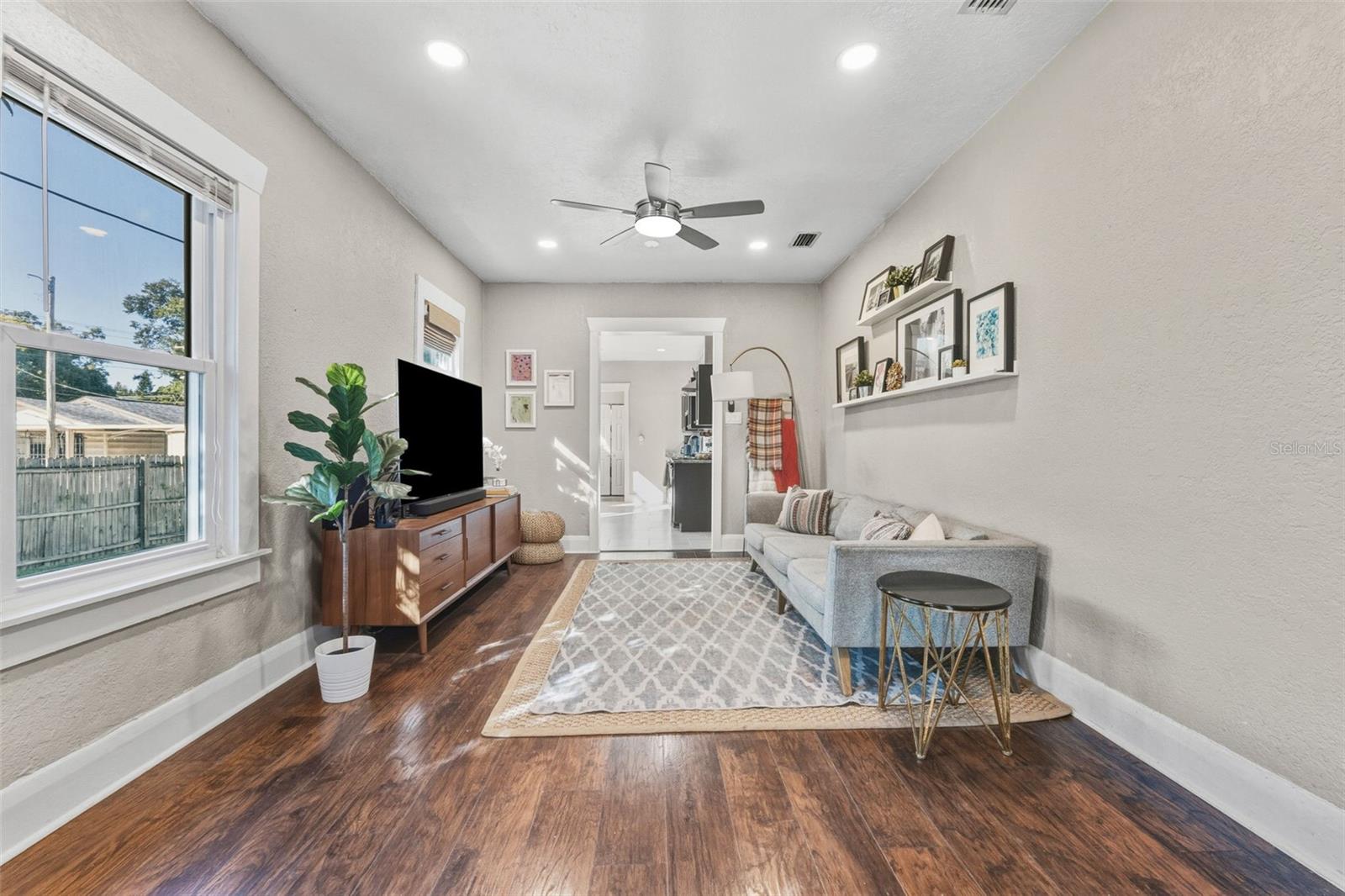 Welcome to 1202 E. Ida Street, a beautifully preserved historic bungalow in the heart of Seminole Heights, where timeless character and modern comfort live in perfect harmony. The home features updated windows throughout and new vinyl wood flooring, creating a bright and open feel from the moment you enter. The front door opens into an open-concept living and family room that flows directly into the kitchen. Off the living room of the home are Bedrooms 1 and 2, along with a full bathroom. The updated kitchen includes tile flooring, stainless steel appliances, and contemporary cabinetry. Just off the kitchen is Bedroom 3, which also functions well as an office or flex room. Past the kitchen is the private primary bedroom with an ensuite bath and a large window overlooking the oversized backyard. The yard includes mature oak trees and offers ample space for outdoor enjoyment. This property provides a rare four-bedroom layout for the neighborhood and convenient access to restaurants, parks, and local amenities in Seminole Heights. Moments from beloved neighborhood spots like Trip’s Diner, Rooster & the Till, Southern Brewing, and Heights Public Market, this home captures the soulful energy of one of Tampa’s most cherished districts. If you’ve been searching for a place with history, heart, and the right updates in all the right places, welcome home to 1202 E. Ida Street.