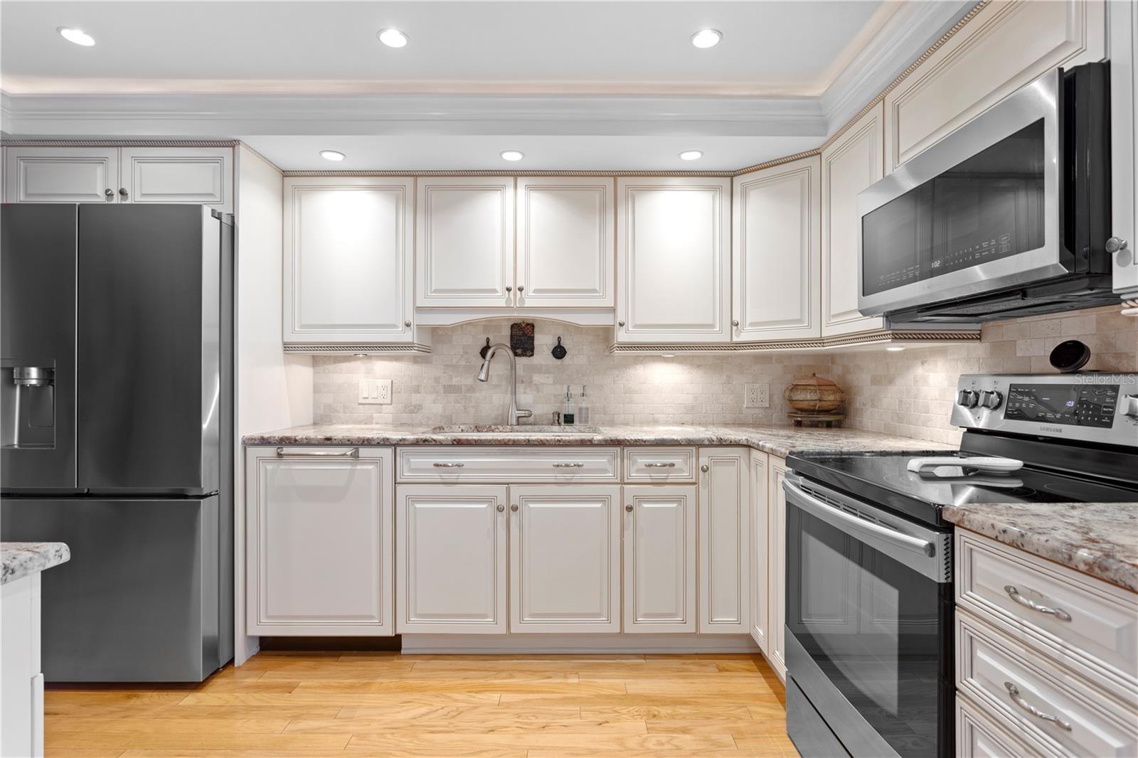 COMPLETELY RENOVATED Monte Carlo Towers BALCONY unit has breathtaking views of the Bay & Downtown! Enter the Double Doors to a spacious foyer with hard wood floors which lead into the hallways, dining room, living room, bedrooms & Kitchen! Custom Kitchen boasts solid wood raised panel cabinetry with rope crown molding, soft close doors and drawers, tile backsplash, granite counters, under cabinet lighting, wine rack, stainless steel appliances, walk-in pantry & your own private trash chute! EXQUISITE Master ensuite has stunning views, crown molding, glazed solid wood cabinets, granite countertops, walk-in shower and custom closet system! 2nd bedroom/den includes 2 large closets and beautifully renovated bath with single sink and walk-in shower just steps away. 3rd bedroom consists of murphy bed, private bath and walk-in closet. This stunning unit is complete w/HURRICANE SHUTTERS on all windows, NEW SLIDING DOOR replaced (2017), CARRIER HVAC (2017), plantation shutters throughout, LARGER DOORWAYS were installed, inside laundry includes a new combined 1-unit washer/dryer (2024), tankless hot water heater (2023). New LG refrigerator (2024), BOSCH dishwasher (2020) and new microwave (2021). Enjoy the convenience of 2 DEDICATED PARKING SPACES, a shared storage space, and a climate-controlled storage cage. Monte Carlo Towers offers resort style amenities: a 24,000 SF marble lobby, 24-hour concierge, two guest suites, heated pool, grilling area, social room with commercial kitchen, library, fitness center with saunas, and tennis/pickleball courts. Located in a top-rated school district and just minutes to Downtown, Hyde Park, SOHO, Riverwalk, and Tampa International/St. Pete Clearwater Airports, easy access to major highways, including I-275, I-4, and the Selmon Expressway with the nation’s longest continuous sidewalk right outside your door. Experience elevated living at its best—schedule your private tour today!