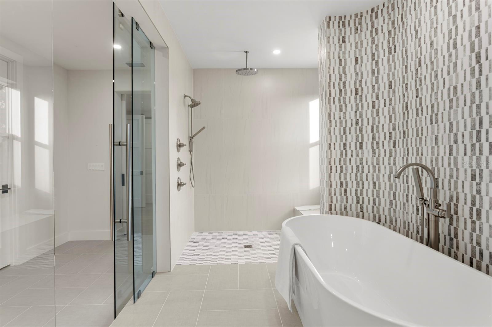 Brand new construction on a rare 120x150 double lot in Sunset Park - space to stretch out, entertain, and truly live. This transitional luxury home by Adobe Homes balances design and comfort beautifully, with soaring ceilings, walls of windows, and tranquil greenery views that set a calm backdrop for everyday life. The dramatic tiered front and backyard showcase the expansiveness of the 18,000+ SF property. The heart of the home is a magazine-worthy kitchen featuring a dramatic double-island layout, Wolf/Sub-Zero appliances, quartz counters, picture-frame windows, and a stunning butler's pantry. Multiple flexible living spaces offer room for everyone: a private first-floor guest suite tucked away for comfort and privacy, a dedicated office with its own terrace, a loft and upstairs bonus room with wet bar ideal for media, play, or fitness, and an elevated theater/bonus level that's quiet and separate for focused use. The primary suite feels like its own retreat with a private balcony overlooking the resort-style backyard, a spa-inspired wet room with soaking tub and rain shower, and a massive closet. Outside is where this home truly stands apart - a huge pool and spillover spa with automatic floor cleaners, expansive pool deck, wide green lawn, lush privacy landscaping, and a covered lanai with gas fireplace and outdoor kitchen, all surrounded by mature trees. Additional notable features include impact-rated windows and doors, a built-in elevator shaft, custom millwork, smooth drywall, wide-plank flooring, smart wiring, and a three-car garage with epoxy floors. Move-in ready and perfectly located within short walking distance to Mabry, Coleman, and St. Mary's, and zoned for Plant High School. 4624 W. San Jose St - where elevated luxury meets everyday living. Welcome home.