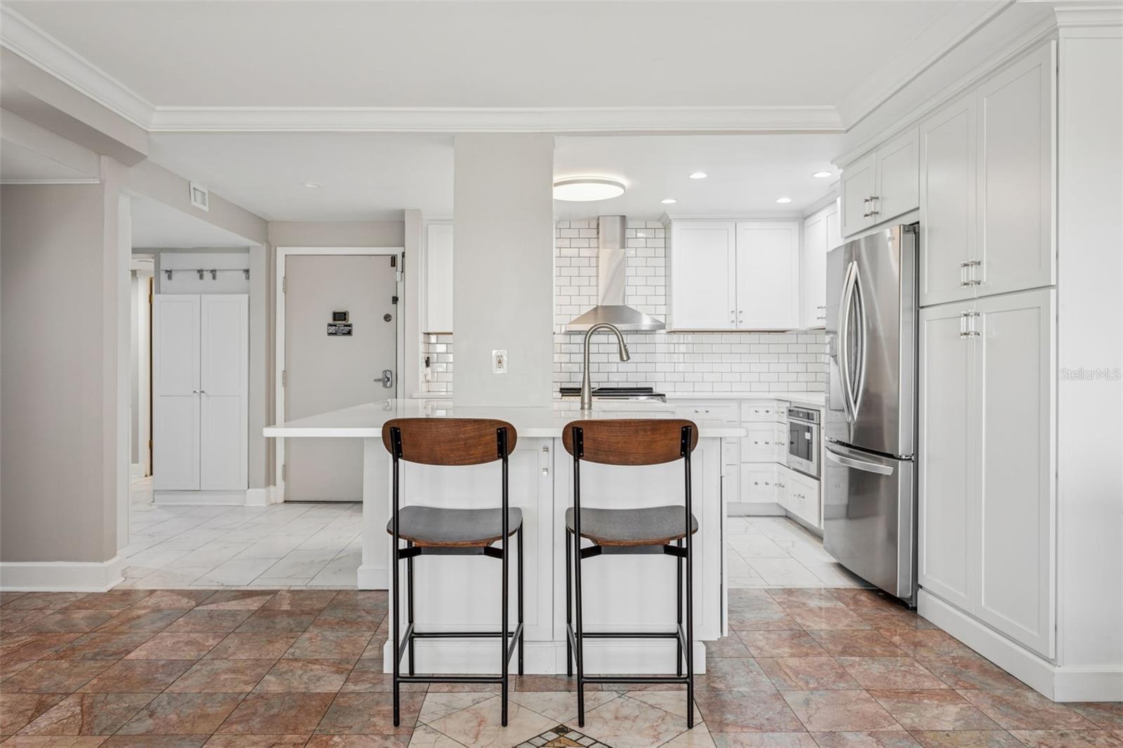 The Pinnacle Condominium is a fully funded reserve community with completed Milestone report and structural integrity reserve study (SIRS) completed. Sitting right on Bayshore Boulevard, this corner unit has views along the southern portion of the water and Bayshore Blvd as well as an eastern view of the South Tampa peninsula. The unit itself has an open floor plan with plenty of natural light. The kitchen was updated in 2022 with white shaker style cabinets, quartz counters with subway tile backsplash, and island that seats 3-4 persons, stainless appliances with range hood, farmer style sink, and a cabinet pantry will pull outs. The laundry area also has multiple cabinets for additional storage. Multiple sliding glass doors lead from the living room and two of the bedrooms to the spacious balcony with southern views of Bayshore Blvd. and Tampa Bay. The spacious primary bedroom has dual built-in closets and sliding doors to the main balcony. The primary bathroom features a large shower with seated bench and large vanity. The third bedroom is exceptionally large and has a private balcony with eastern views. The showers in both guest bedrooms were redone in 2010. Other features include: Impact rated exterior door/sliders installed in 2016, A/C & water heater 2017; 4x5 storage unit, marble floors throughout living areas and bedrooms; cabinetry installed in parking space; This unit also has two designated parking spaces (one covered in the garage, and one above). The community features a manned security desk, on-site management office, an observation deck with views of Bayshore Blvd, two gyms (one for cardio, one for weights – both with saunas), large community pool, multiple recreation rooms with full kitchen, dog walk, bike rack, and 2 suites available for rent by guests. Located just minutes from downtown Tampa, Benchmark Arena, MacDill AFB, Hyde Park Village, retail/restaurants, and the Tampa International Airport.