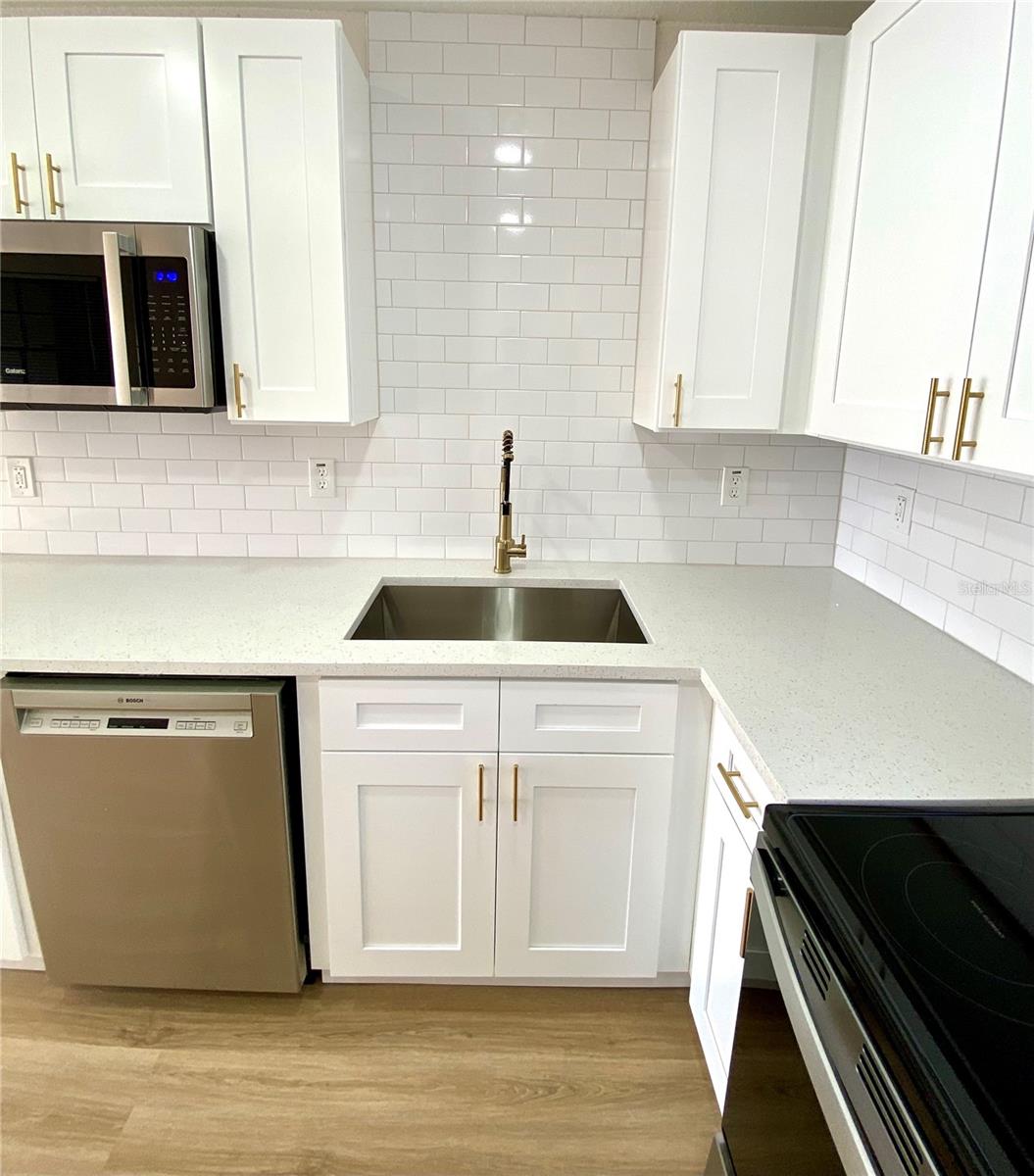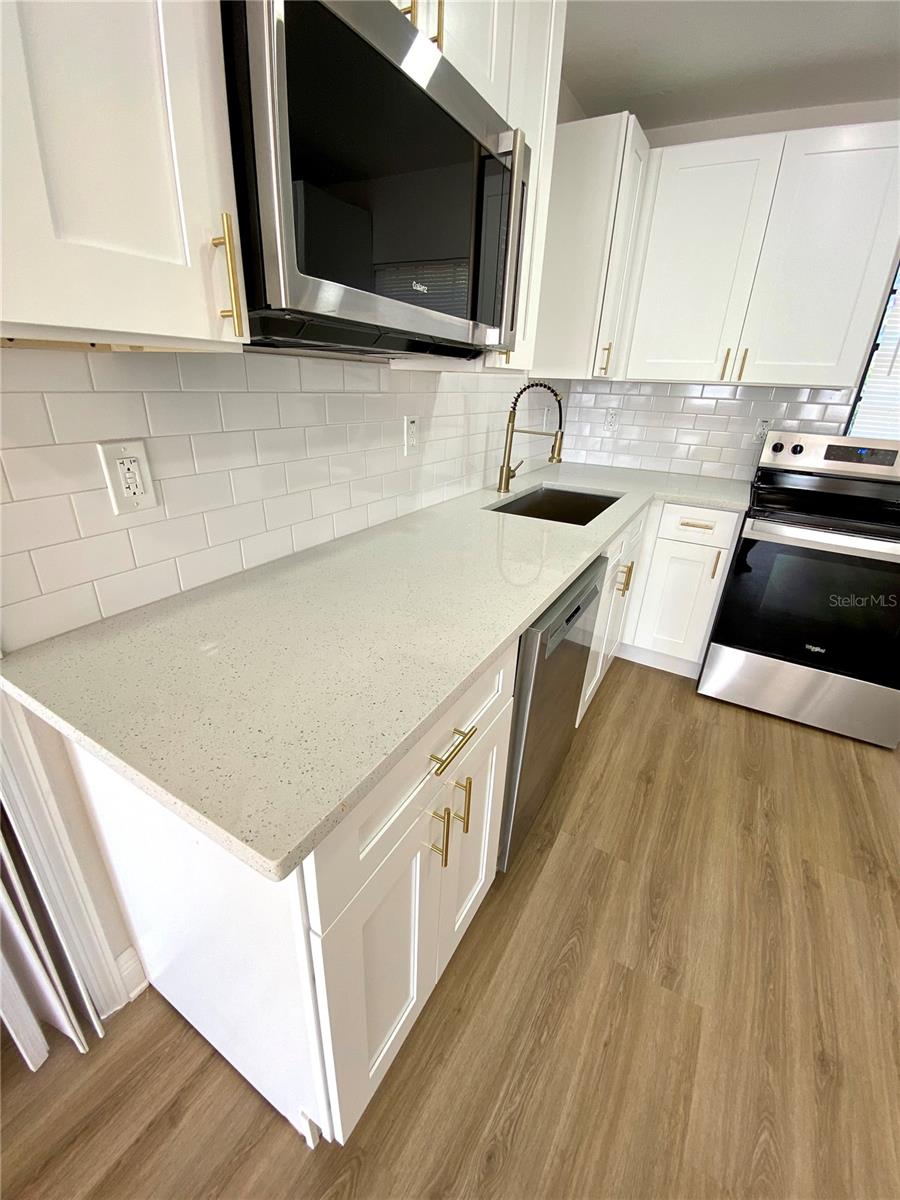 Back on Market! Welcome to this charming 3/2 1,075 sqft. block home situated on a spacious double lot in a quiet Tampa neighborhood. Featuring an attached garage and an inviting covered front porch, this home offers both comfort and curb appeal. Step inside to an open layout filled with natural light, showcasing quartz countertops throughout, shaker cabinets in the kitchen and both bathrooms, and tasteful finishes that make the home feel fresh and modern. The en suite master bathroom features elegant floor-to-ceiling tile, and the guest bath includes a bathtub with matching floor-to-ceiling tile and quartz vanity. Your buyers will have peace of mind with the brand new 2025 roof, plus newer AC and water heater. A large indoor laundry room adds extra convenience and storage space. Outside, enjoy a very large backyard with endless possibilities, perfect for gatherings, pets, gardening, or future expansion. Located on a quiet street just minutes from local schools, this property offers both comfort and convenience. Don’t miss this beautifully updated home with modern finishes and a rare oversized lot!