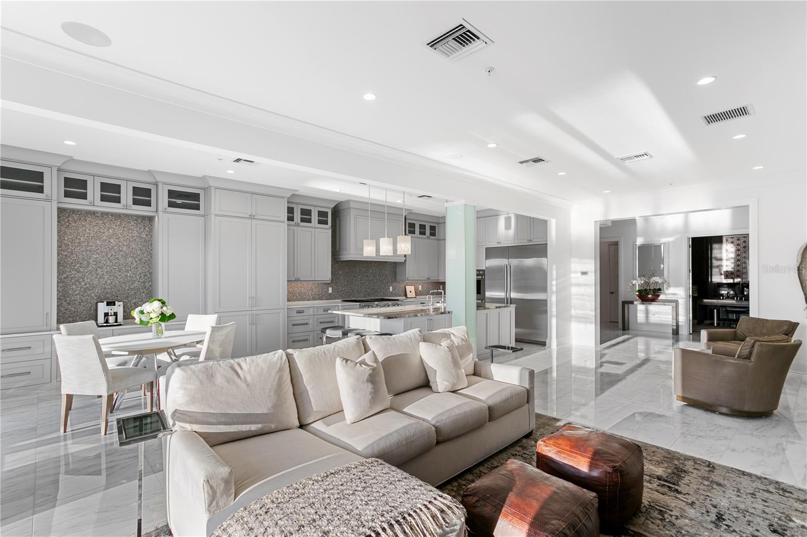 Live where the city meets the water. Welcome home to this fully reimagined single-family home, meticulously renovated top to bottom by renowned Soleil Design. The thoughtful design lives in the fine details. A set of double doors opens to a warm, inviting entryway revealing the home’s showstopping glass elevator and open-concept living space. The chef’s kitchen is a work of art, outfitted with double Wolf ovens, a Wolf six-burner gas cooktop, a Sub-Zero 60" refrigerator, and a separate wine and beverage fridge—your guests will never go hungry or thirsty. High-impact doors and windows flood the space with natural light and frame views of the sparkling PebbleTec pool with AquaLink system, outdoor kitchen with gas grill, and a private boat dock with lift and brand-new seawall. Functional and custom built-ins can be found throughout the home in the family room, office and upstairs. To complete the first floor living space is an office or optional fifth bedroom with adjacent bathroom and the first of two laundry utility rooms. Whether you take the stairs or glide up in the glass elevator, the second and third floors continue to impress. The split floor plan gives the primary retreat a wing to itself, complete with a private balcony overlooking serene water views, a double-vanity bathroom, walk-in closet, and a soaking tub positioned to capture its own waterfront vista. Additional bedrooms are beautifully appointed, and the second floor features a secondary laundry room for everyday convenience, along with the home’s integrated smart-home systems. Ascend to the third floor and discover a flexible bonus space—perfect as a guest suite with a full bath or an entertainment lounge that opens onto a rooftop deck made for sunset gatherings. Harbour Island’s 24-hour guarded gates ensure serenity, yet you’re mere steps from Tampa’s vibrant Riverwalk, Bayshore Boulevard, Water Street, and the city’s premier arts and dining districts. Commuters appreciate quick access to I-275, the Lee Roy Selmon Expressway, and Tampa International Airport, making every aspect of daily life effortless. Move right in and begin living the waterfront dream you’ve always imagined—sunsets, sailing, and sophisticated entertaining await.