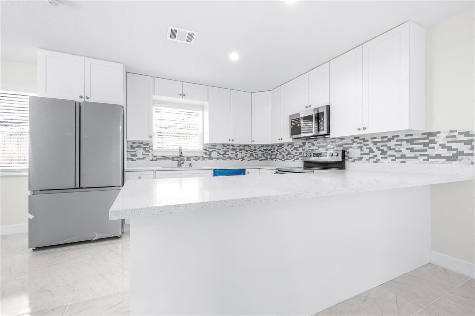 Welcome to your move-in-ready home in the quiet, family-friendly Crescent Park neighborhood of South Tampa. This beautifully remodeled 3-bedroom, 2-bath gem is nestled in a peaceful, established community just minutes from MacDill Air Force Base, with Bayshore Boulevard, Ballast Point Park, and a serene lake all within an easy walk—offering that perfect small-town, neighborly feel while keeping you close to everything South Tampa is loved for. Fully updated in 2025 with classy, high-end finishes throughout, this home boasts a brand-new roof, energy-efficient windows and doors, fresh vinyl siding, stunning tile flooring, and crisp neutral paint. The gorgeous open-concept living area flows seamlessly into a chef’s kitchen featuring quartz countertops, new shaker cabinetry, stainless steel appliances, a stylish tile backsplash, and a huge farmhouse sink. The luxurious primary suite impresses with a massive walk-in shower, dual-sink vanity, and generous closet space, while the spa-like hall bath offers a deep soaking tub and elegant tilework. An oversized indoor laundry room and a rare 2-car garage with new attic stairs add everyday convenience. Step outside to a huge, fully fenced, and beautifully shaded backyard—perfect for family, pets, or weekend gatherings. Best of all, this home sits in a non-flood zone, delivering true peace of mind. Just minutes from downtown Tampa, the Riverwalk, Tampa International Airport, top dining, and waterfront parks, you get South Tampa living at its finest.