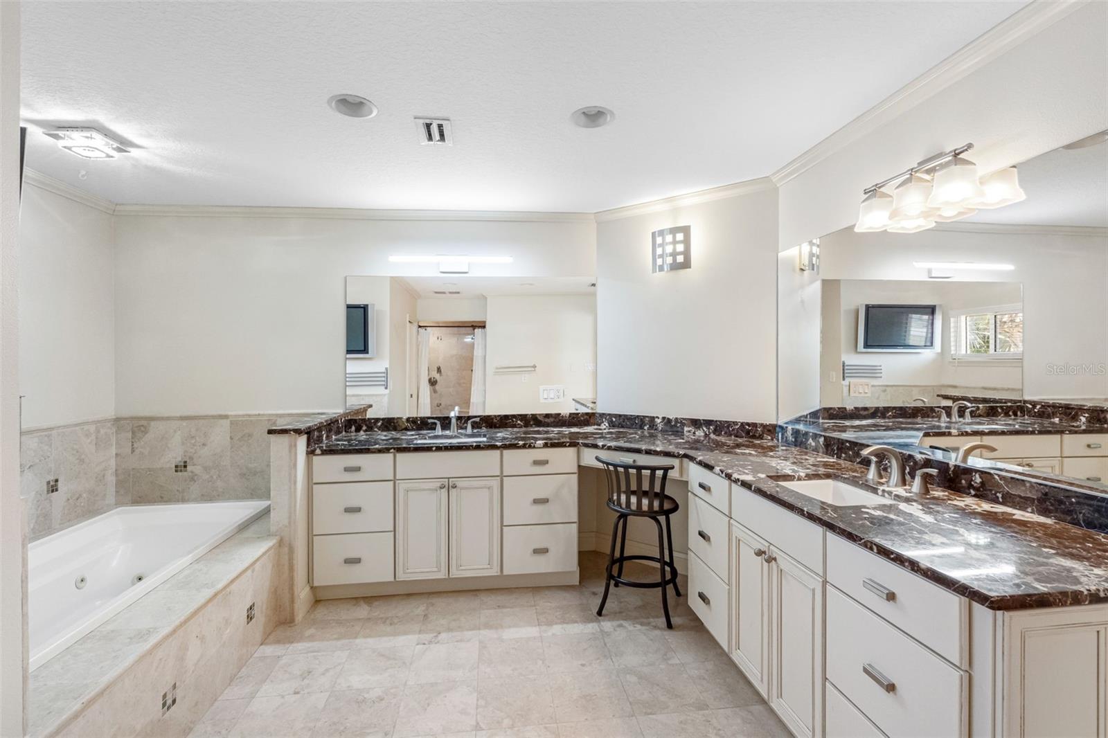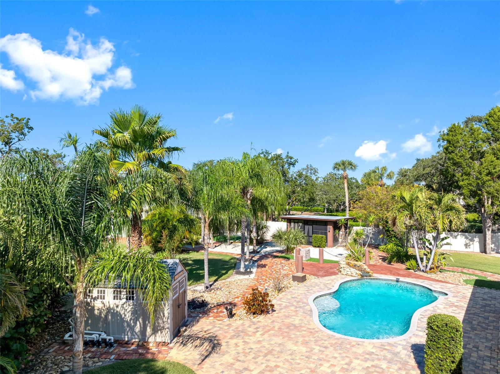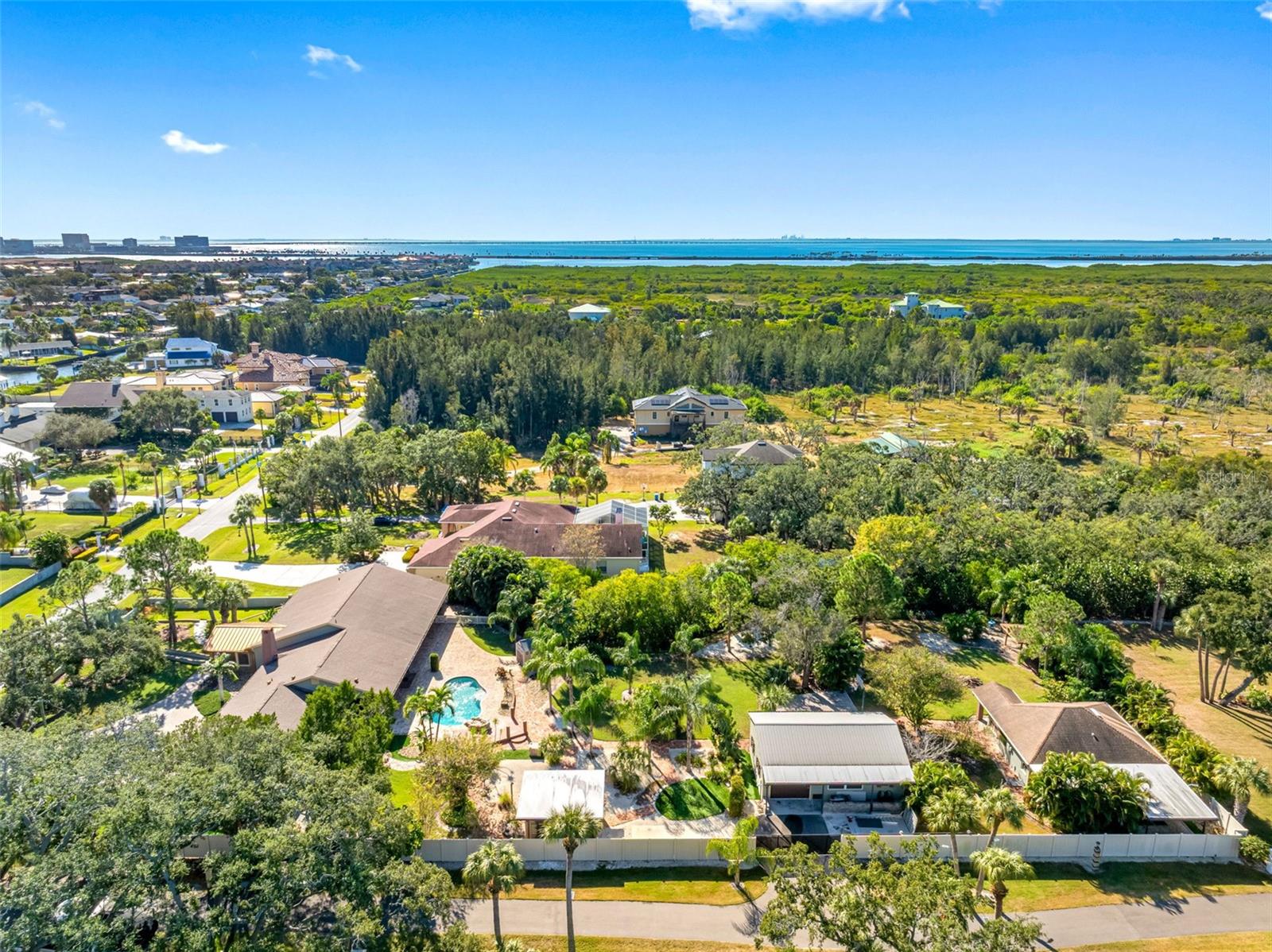 One or more photo(s) has been virtually staged. Welcome to this unique, one-of-a-kind, executive gated estate sitting on 1.25 acres of pristine landscaping. As you enter the home you are greeted by a large foyer with plenty of natural light. The oversized family room offers vaulted ceilings, updated custom tile flooring, updated lighting, dual ceiling fans and a stone accent wall. Just off the family room you will find an updated half bath. The kitchen has been fully remodeled including granite countertops and a custom tile backsplash, and stainless-steel appliances-a true chef’s dream. A large farmers sink with a window overlooks the rear pool area, and a center island with unique exposed granite edging complete with slide out convection microwave. An abundance of cabinets offers plenty of storage and space in the eat-in nook with custom flooring. A wood burning fireplace with a large hearth and propane option for added convenience completes this area. The main home has all bedrooms located on the first floor with an upstairs oversized bonus room (16x20), perfect for a play area, media room, home office or to use as an additional bedroom. The primary bedroom has an en-suite bathroom featuring dual sinks, granite countertops, a jetted tub with a tv and a large walk-in shower with multiple shower heads. The walk-in closet is a separate room with custom shelving, sitting area, windows allowing plenty of lighting with a door leading to an outdoor sitting area. Down the hall you will find several built-in closets for storage, two additional spacious bedrooms, and an updated full bathroom with a walk-in shower, all offering plenty of space with large windows. From the eat in kitchen you will find French doors leading to the oversized lanai with a custom crafted vaulted wood ceiling and a spa/hot tub. An oversized saltwater pool surrounded by pavers features a raised rock water spill. All the pool equipment was recently updated and includes a storage shed. This property is perfect for large gatherings and is an entertainer’s delight with brick and paver walkways throughout. A detached two-bedroom guest home with separate entrance is located at the rear of the property. Entering you will find a nice-sized living room, with a full kitchen including granite countertops, stainless steel appliances and plenty of cabinet space including a laundry closet & covered private patio area. Perfect for an in-law suite or out-of-town guests. In addition, there is a detached garage complete with air conditioning, a separate side entrance, a workout area and bathroom. A perfect retreat for a game of poker, workshop or hobby room. Just outside the sliding glass door sits a Basketball court. The main home is equipped with a tankless hot water heater and an additional water heater located in the attached 3-car garage for the kitchen and half bath. The garage has storage shelving, a wet sink with granite countertops and wood cabinets. The laundry area has a wood countertop, cabinets and a stone wall accent. The property also offers a fully screened detached building that is perfect for plants or a sitting area. The property is equipped with an RV pad with 50amp service and a 250-gallon propane tank with plenty of room for all your toys! You will notice a combination of paver walkways and brick that was originally from the streets of St. Pete. Most windows have been updated to “impact resistant”. The block walls are reinforced with concrete and makes the construction extremely strong. A must see Home!