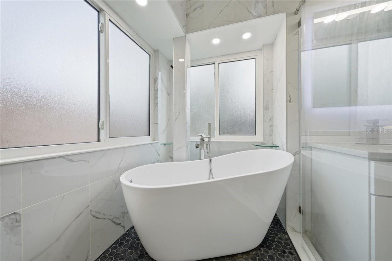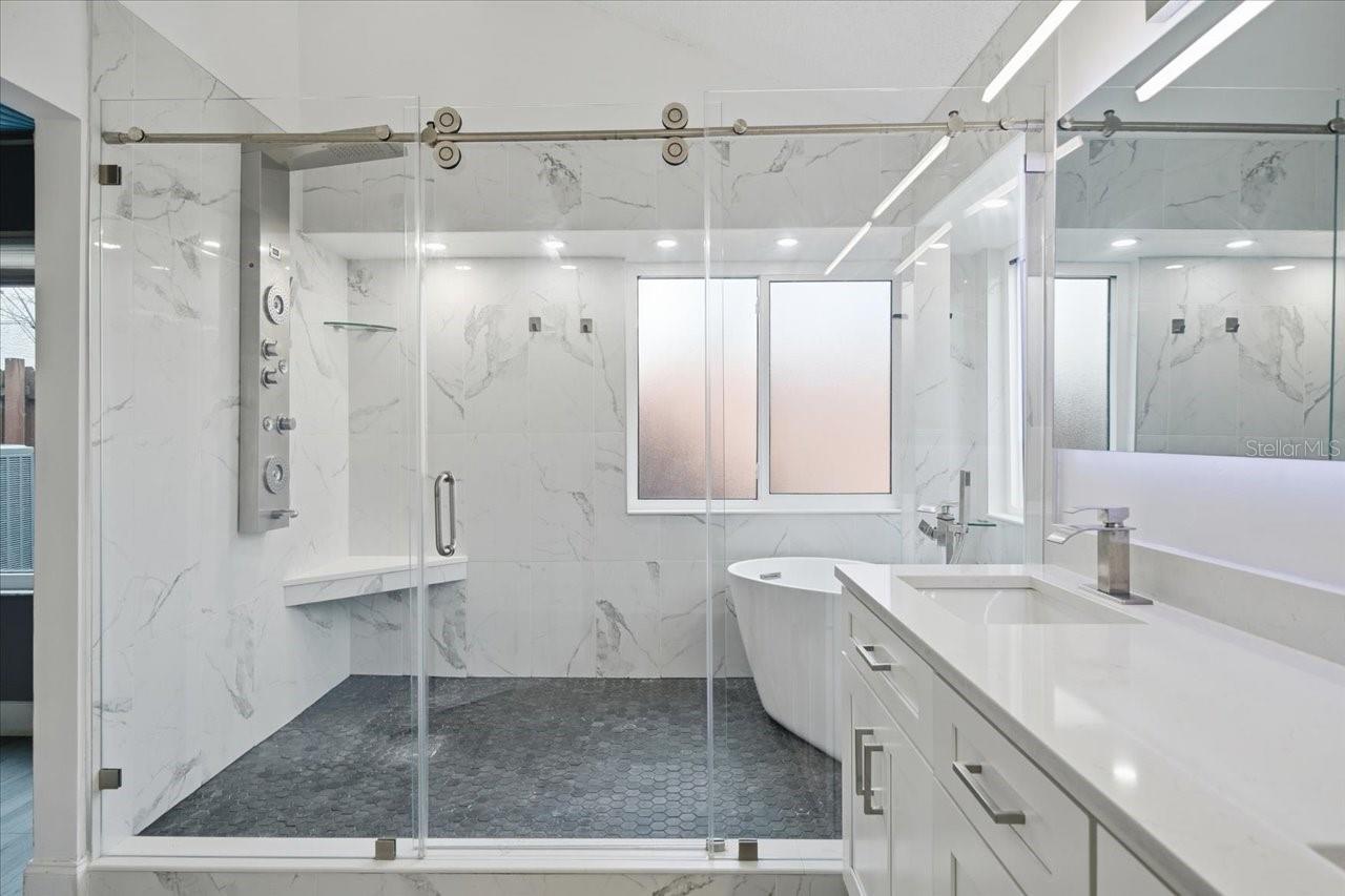 Nestled on a desirable corner lot in the sought-after Turtle Creek community, this inviting 4-bedroom, 2.5-bath home offers the perfect blend of comfort, style, and modern updates. The spacious layout features the Primary Suite conveniently located on the main floor, complete with a spa-like ensuite bath and beautifully updated finishes. The heart of the home is the updated kitchen, offering ample cabinet space, modern appliances, and an easy flow to both the dining area and family room—ideal for everyday living and entertaining. The family room impresses with soaring vaulted ceilings and a cozy wood-burning fireplace, creating a warm and welcoming atmosphere. Step outside to your private screened-in oasis featuring a sparkling pool and spa, perfect for year-round relaxation and gatherings. Enjoy peace of mind with major improvements already completed: new roof, paid-off solar panels, and updated windows and doors for enhanced efficiency and durability. With its prime location, such as easy access to upper tampa bay trail, thoughtful upgrades, an inviting floor plan, this Turtle Creek gem is truly move-in ready
