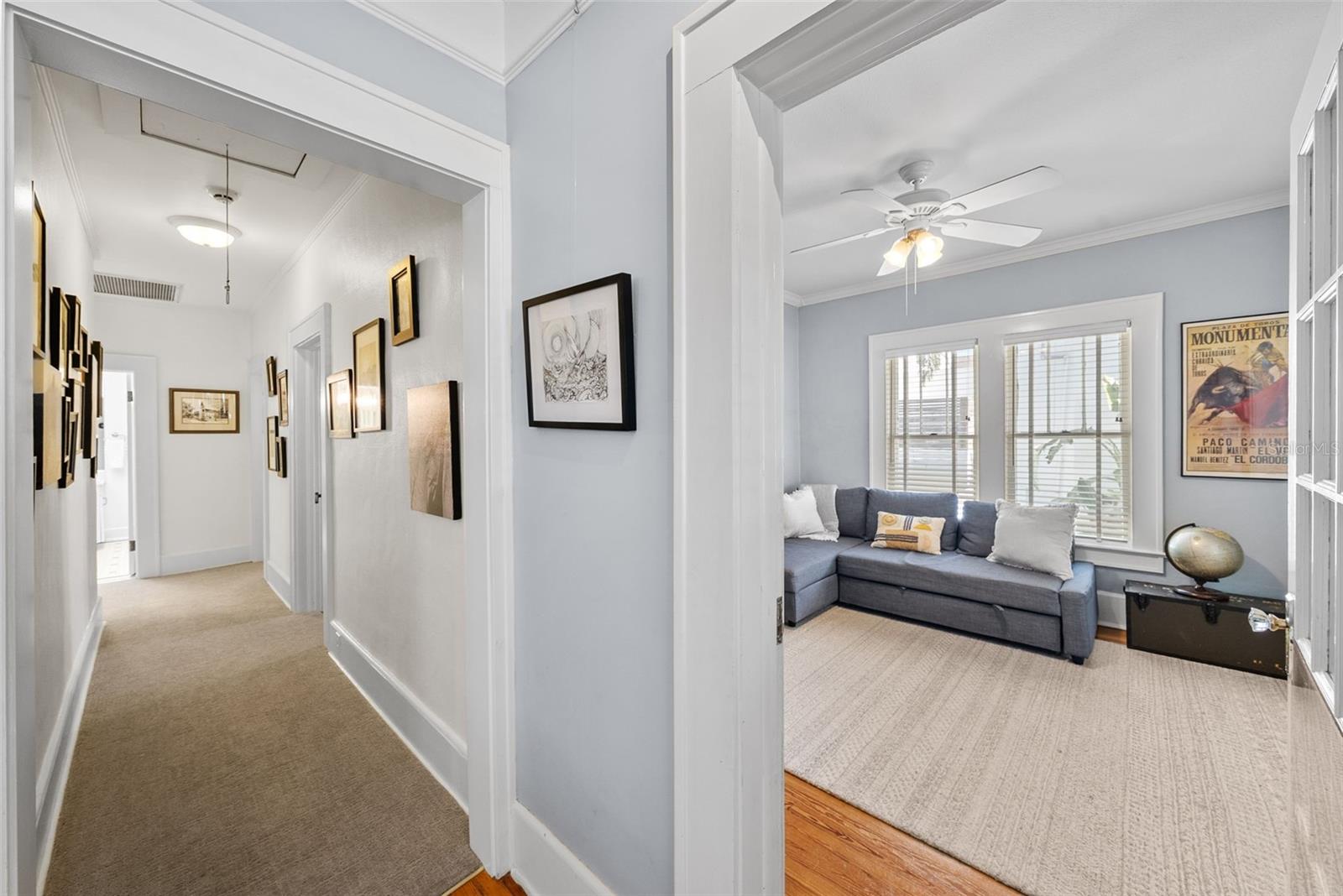 Welcome to the most charming Palma Ceia bungalow—perfectly located in one of South Tampa’s most desirable and walkable neighborhoods. This beautifully updated 3-bedroom, 2-bath home blends classic character with modern luxury, offering light-filled living spaces and thoughtful upgrades throughout. Step inside and immediately feel at home with gorgeous Heart Pine floors, abundant natural light, and a warm, inviting layout. The chef-inspired kitchen (2023) features high-end appliances, a gas cooktop, and reverse osmosis water filtration in the kitchen- perfect for cooking and entertaining. The spacious primary suite is a true retreat, complete with a private walkout to the newly built back deck (2024) and a fully turfed backyard. The outdoor space also includes a paver BBQ patio, drought-friendly landscaping, and no chemical pesticides—ideal for low-maintenance living. Not to mention, Flood zone X, non-flood zone, and high and dry from storms. Additional upgrades include: Roof (2022) with 12-year warranty, Tankless water heater High-end OptimH2O whole-home water filtration & conditioner (non-salt system), in-line fluoride/carbon filter for fridge water/ice, New Carrier DC Inverter AC system (2023), 30A generator connection with manual interlock, New interior & exterior paint (2025). A charming front porch welcomes you as you arrive, setting the tone for this picture-perfect bungalow. With its unbeatable location, walkability to Palma Ceia favorites, and a rare combination of character and modern upgrades, this home is truly move-in ready. Don’t miss your chance to own this Palma Ceia gem—homes like this are exceptionally hard to find!