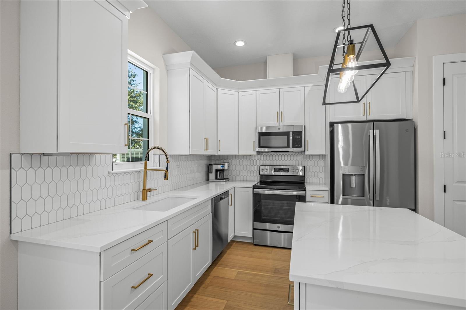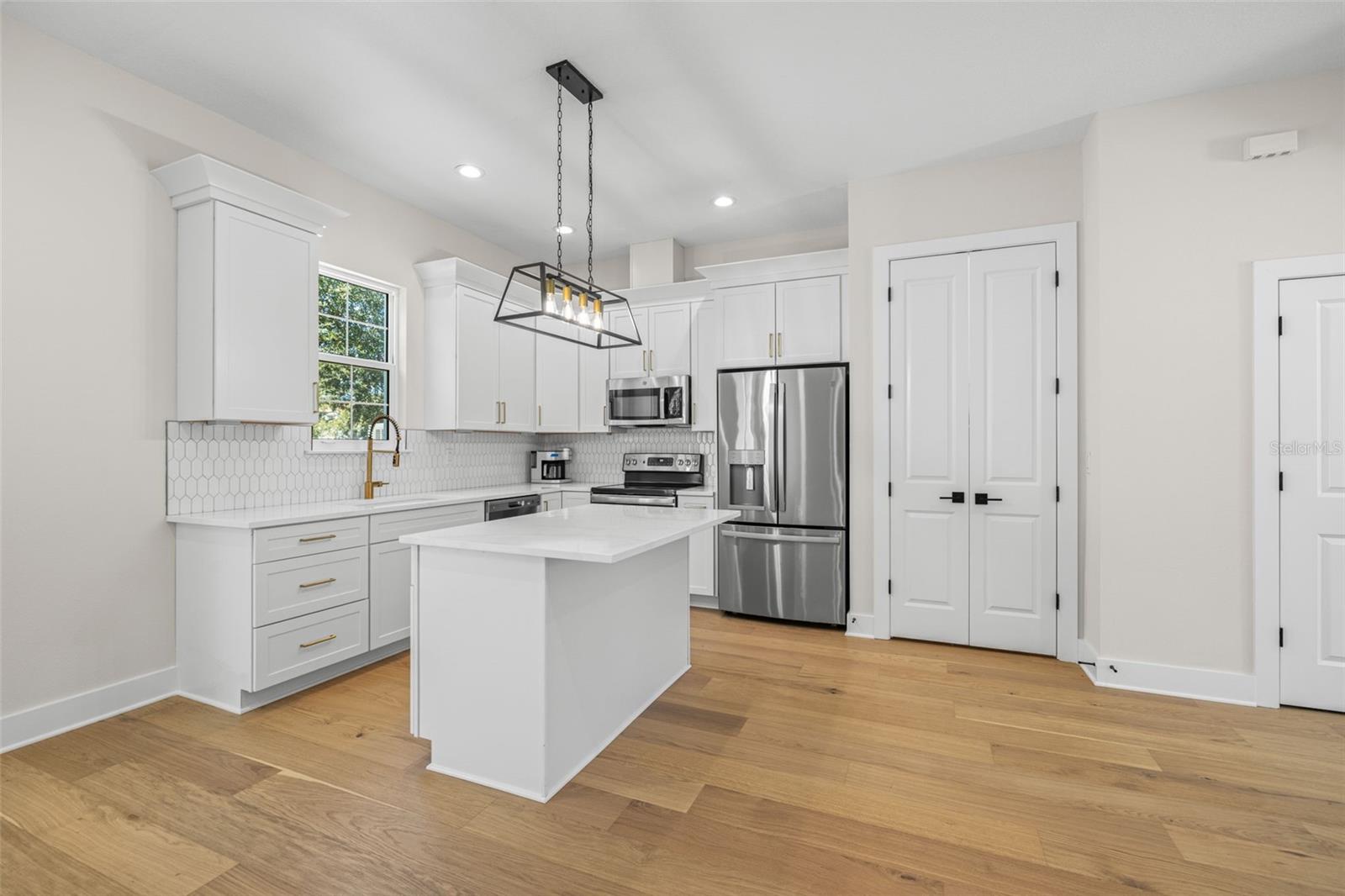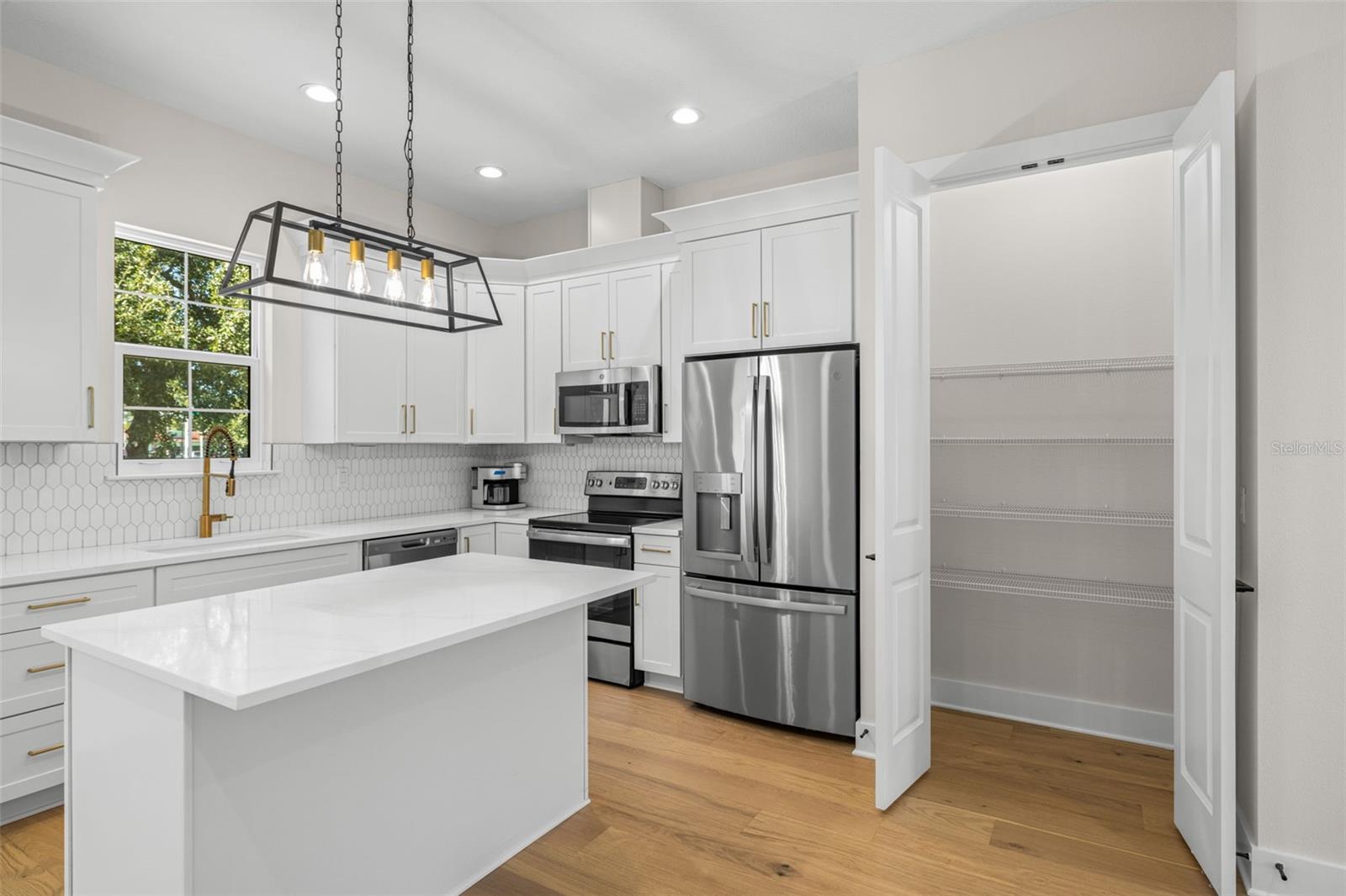 Welcome to this beautifully crafted end-unit 2-story townhome by Milana Custom Homes, offering just over 1,500 sq ft of modern living space with 3 bedrooms, 2.5 baths, and a 1-car garage - plus the rare bonus of a private backyard. Step inside to a bright, open-concept main floor featuring a spacious foyer, a generous living area, and a stylish kitchen. The kitchen is outfitted with a large center island, eye-catching pendant lighting, sleek quartz counters, ample storage, and a walk-in pantry - perfect for everyday living or entertaining. Upstairs, the primary suite provides a peaceful retreat complete with a walk-in closet and a private en-suite bath. Two additional bedrooms share a full bathroom, with one bedroom also offering its own walk-in closet for extra convenience. The upstairs laundry room is centrally located near the landing for easy access. This townhome blends thoughtful design with quality finishes - move-in ready and perfectly situated for comfortable, low-maintenance living.