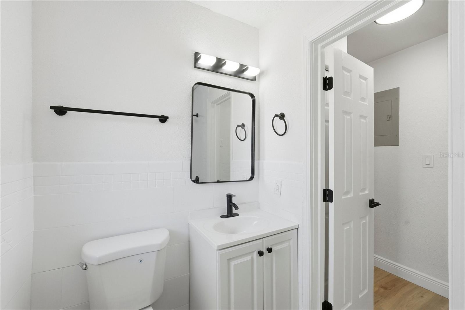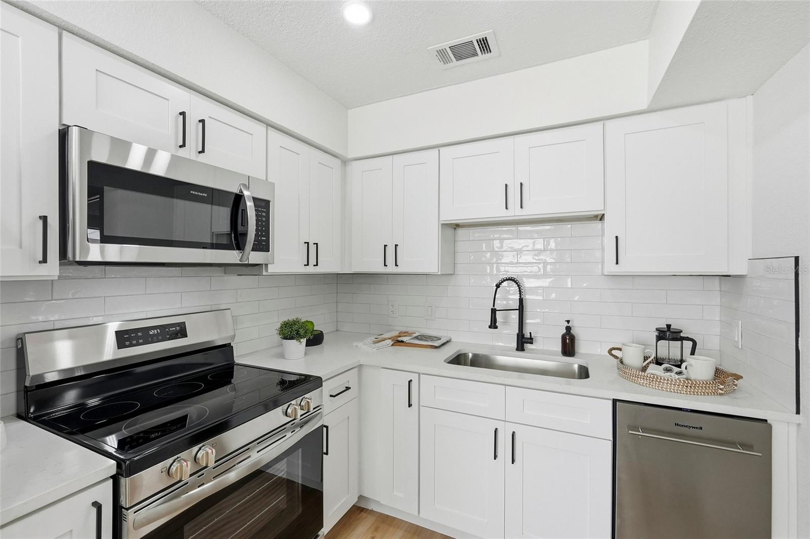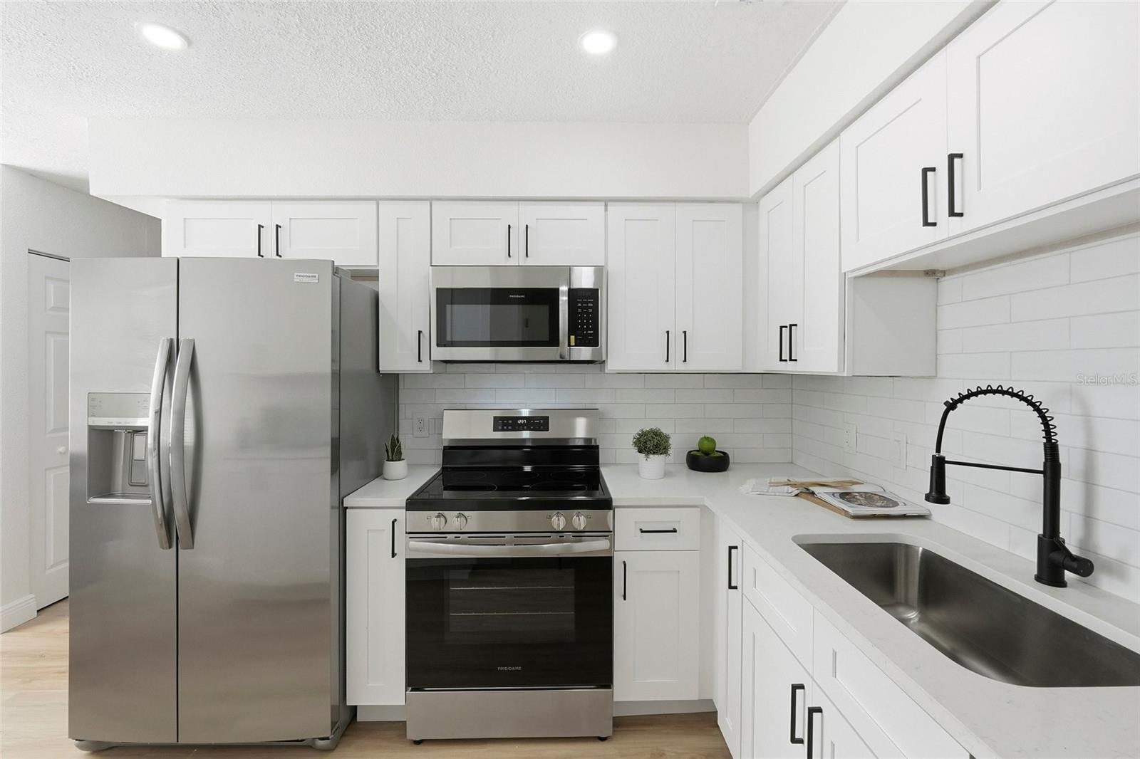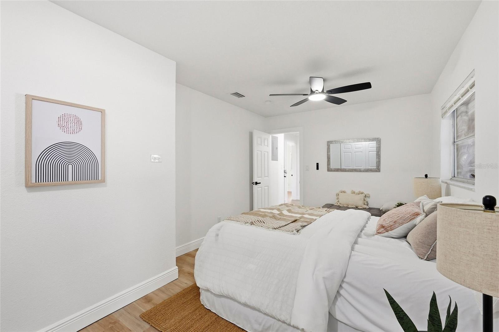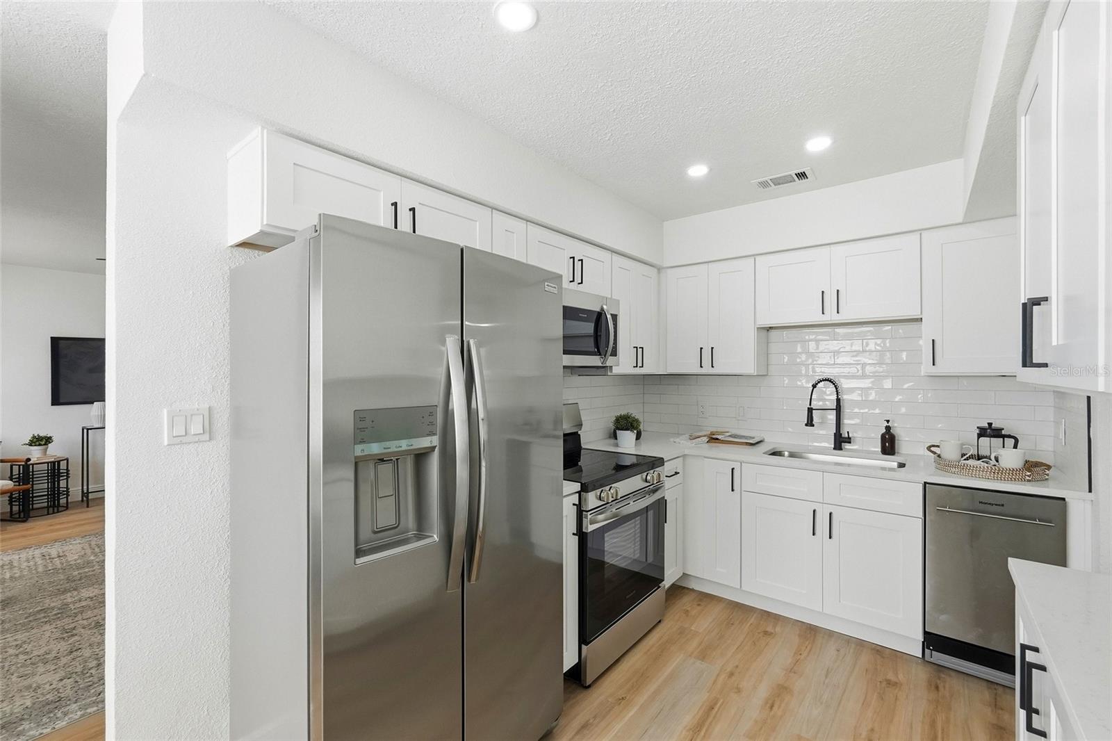 Discover this beautifully renovated SANCTUARY tucked quietly away in the Tilsen Manor Community. This home features 3 bedrooms and 2 elegant bathrooms. The modern kitchen, complete with Quartz Countertops and Stainless-Steel Appliances, opens up to a spacious living room and dining room. This home can accommodate a large family with an additional large family room with high ceilings and an additional office/flex room that could easily be used as an additional bedroom. *LARGE INDOOR LAUNDRY ROOM*. The property sits on a generously sized lot and is equipped with a single vehicle carport, large driveway, and a large covered front porch that is perfect for relaxing. Retreat to your new FULLY FENCED IN BACKYARD with a LARGE STORAGE SHED. This home has a BRAND-NEW 2025 ROOF which will provide peace of mind for years to come! With NO HOA or CDD FEES, this home is even more appealing. Don't miss the chance to make this home yours!