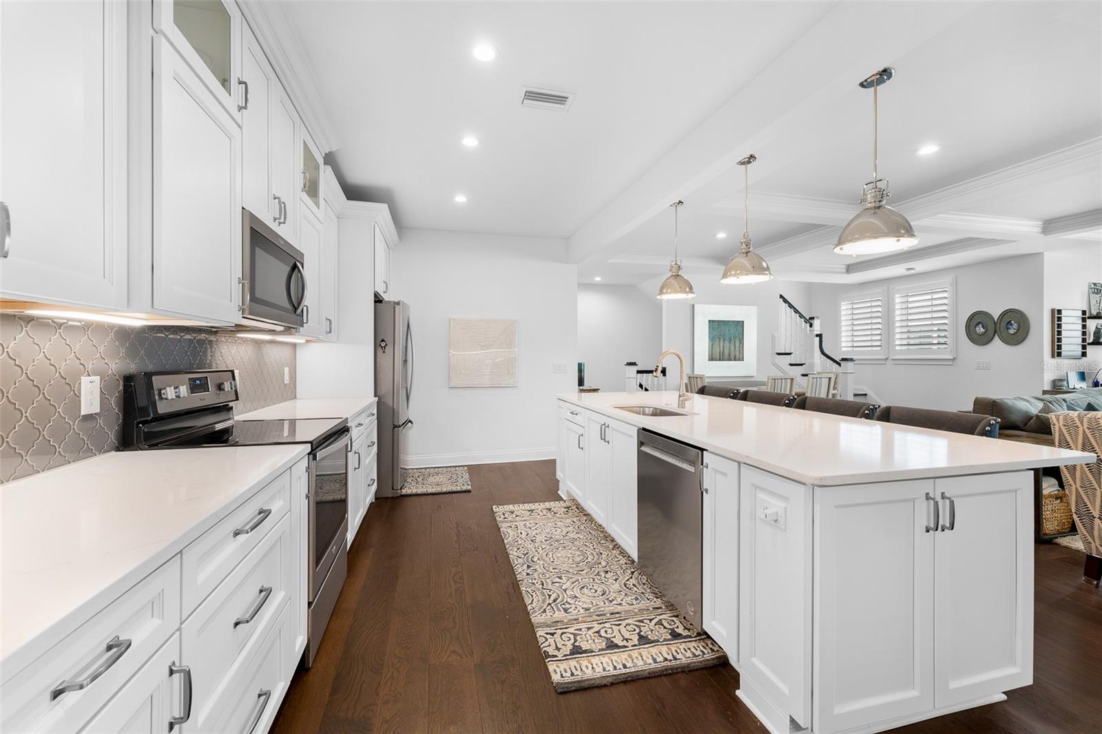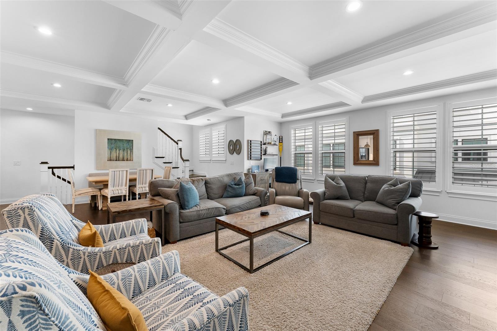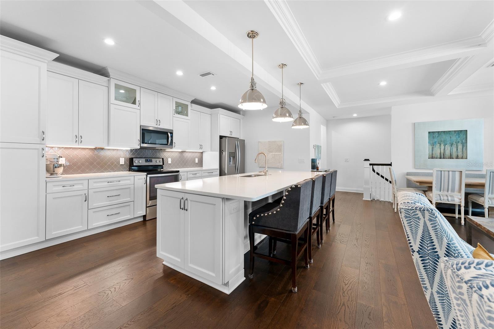 Experience the best of South Tampa living in this impeccably designed 4-bedroom, 3.5-bath luxury townhome, perfectly positioned in the heart of sought-after SoHo. Surrounded by acclaimed dining, vibrant nightlife, boutique shopping, and live entertainment, this residence offers an elevated urban lifestyle with effortless convenience. Spanning an impressive 2,672 square feet, this thoughtfully crafted home showcases exceptional architectural detail and premium finishes throughout. Upon entry, you’re greeted by soaring ceilings and rich engineered hardwood flooring that flows seamlessly through the open-concept living spaces, creating an atmosphere of refined elegance. The chef’s kitchen is both stylish and functional, featuring quartz countertops, custom soft-close cabinetry, a spacious walk-in pantry, and a full suite of Whirlpool stainless steel appliances, including a wine cooler and undermount sink—perfect for entertaining or everyday living. Coffered ceilings and elegant crown molding accent both the main living area and the luxurious primary suite. Retreat to your private sanctuary in the spa-inspired primary bath, complete with a freestanding soaking tub, oversized walk-in shower, and designer finishes. Each bedroom is appointed with plush Mohawk Everstrand carpeting, offering comfort and warmth. Additional high-end features include: • Impact-rated windows (no hurricane shutters required) • 80-gallon water heater with recirculating hot water • Icynene insulation for superior energy efficiency • Double-layer soundproofing between units • Custom-height solid core doors and detailed wainscoting • 4-ton HVAC system with touchscreen thermostat • Zip System walls, floors, and roof for enhanced durability Designed for both relaxation and entertaining, enjoy your private patio with pet-friendly space, brick paver driveway, and an oversized 2-car garage finished with drywall, trim, track lighting, and a whisper-quiet belt-drive door system. This home is pre-wired for wall-mounted TVs and offers abundant storage and closet space—blending smart design with modern luxury. A rare opportunity to own a truly exceptional residence in one of Tampa’s most coveted neighborhoods. Schedule your private showing today.
