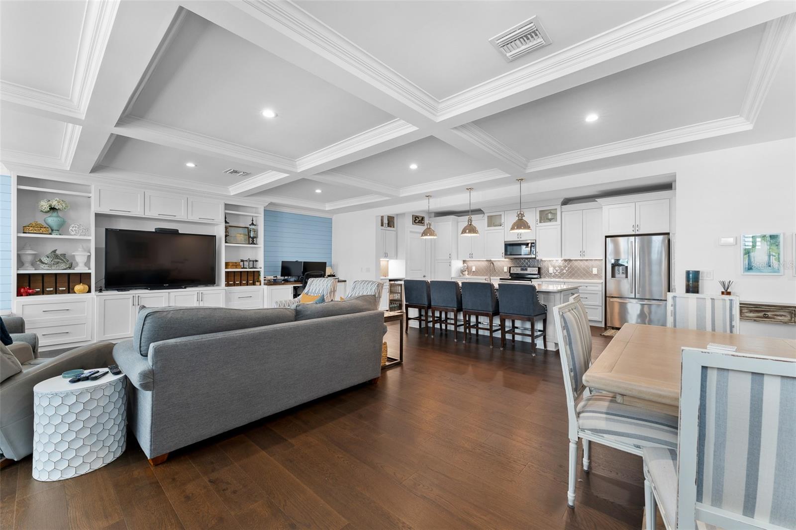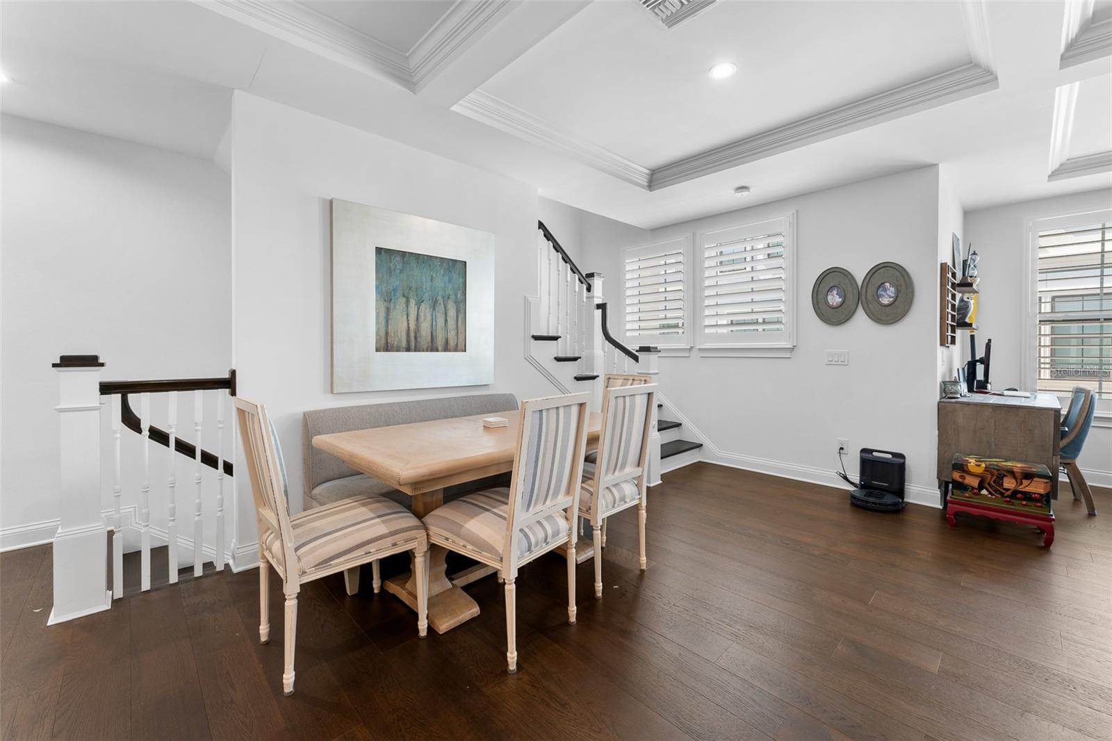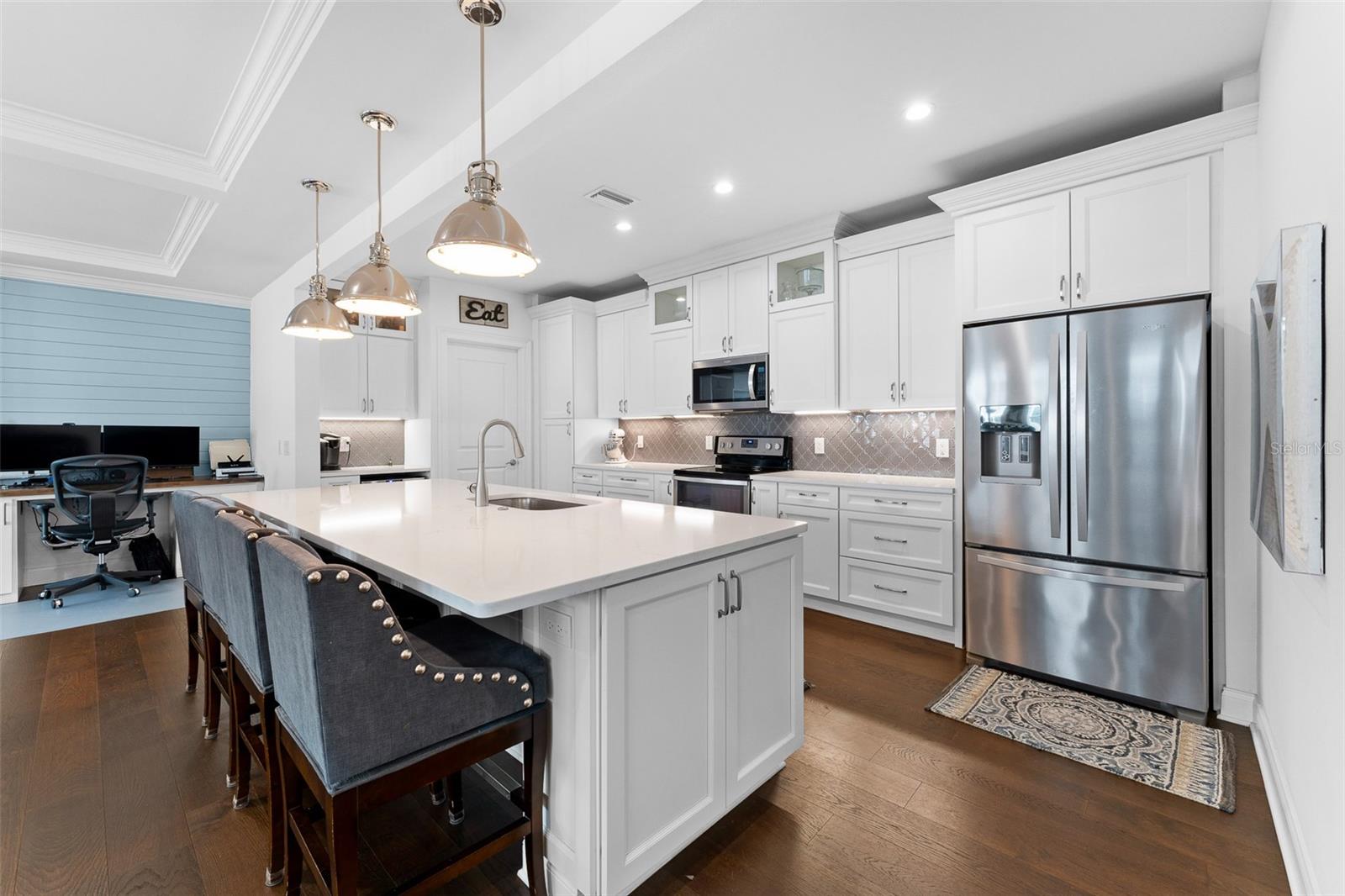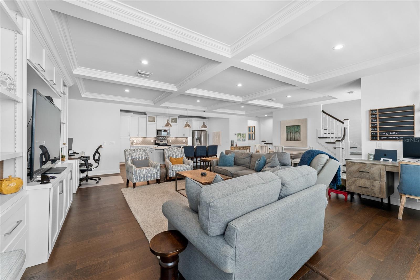 Experience the best of South Tampa living in this impeccably designed 4-bedroom, 3.5-bath luxury townhome, perfectly positioned in the heart of sought-after SoHo. Surrounded by acclaimed dining, vibrant nightlife, boutique shopping, and live entertainment, this residence offers an elevated urban lifestyle with effortless convenience. Spanning an impressive 2,672 square feet, this thoughtfully crafted home showcases exceptional architectural detail and premium finishes throughout. Upon entry, you’re greeted by soaring ceilings and rich engineered hardwood flooring that flows seamlessly through the open-concept living spaces, creating an atmosphere of refined elegance. The chef’s kitchen is both stylish and functional, featuring quartz countertops, custom soft-close cabinetry, a spacious walk-in pantry, and a full suite of Whirlpool stainless steel appliances, including a wine cooler and undermount sink—perfect for entertaining or everyday living. Coffered ceilings and elegant crown molding accent both the main living area and the luxurious primary suite. Retreat to your private sanctuary in the spa-inspired primary bath, complete with a freestanding soaking tub, oversized walk-in shower, and designer finishes. Each bedroom is appointed with plush Mohawk Everstrand carpeting, offering comfort and warmth. Additional high-end features include: • Impact-rated windows (no hurricane shutters required) • 80-gallon water heater with recirculating hot water • Icynene insulation for superior energy efficiency • Double-layer soundproofing between units • Custom-height solid core doors and detailed wainscoting • 4-ton HVAC system with touchscreen thermostat • Zip System walls, floors, and roof for enhanced durability Designed for both relaxation and entertaining, enjoy your private patio with pet-friendly space, brick paver driveway, and an oversized 2-car garage finished with drywall, trim, track lighting, and a whisper-quiet belt-drive door system. This home is pre-wired for wall-mounted TVs and offers abundant storage and closet space—blending smart design with modern luxury. A rare opportunity to own a truly exceptional residence in one of Tampa’s most coveted neighborhoods. Schedule your private showing today.