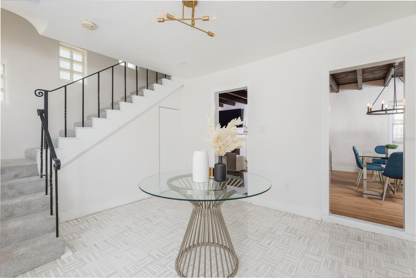 In 1925, D.P Davis set out to transform two islands we now know as Davis Islands. Roy Martin was part of the lucky few who was able to purchase a lot, and he built 53 Albemarle Ave, one of the first homes on Davis Islands. Martin was the owner of a tile company that helped supply many of the clay tile roofs on the islands! Throughout this Mediterranean home you'll find historic charming features tastefully intertwined with modern upgrades. In the living room, the exposed cypress wood beams and wood burning fireplace emulate the cozy allure of historic homes, while the sleek quartz counters and stainless steel appliances in the chef's kitchen provide the lifestyle of a modern home. Just off of the kitchen is a reading room that can be used as a fourth bedroom. As an ode to the 1920s, hidden behind a bookcase in the dining room, is a speakeasy equipped with a wet bar, a half bathroom, and beautiful marble floors. As you head upstairs, you'll notice the wrought iron railing, an original feature to the home. On the second floor you'll find two bedrooms, full bathroom and the master suite with an en-suite bathroom. The master suite has a stunning custom closet lined with windows and marble floors. You'll also find the spa-like bathroom with an oversized shower and marble throughout. On the third floor, lies a bright loft space with 360-degree views of the downtown Tampa skyline and the prominent Mediterranean architecture of Davis Islands. Additional upgrades include refinished original hardwood floors throughout, brand new electric, plumbing, water heater, ACs, fresh landscaping with exterior lighting, a new irrigation system, and fenced in yard. Davis Islands is one of the most renowned neighborhoods in all of Tampa Bay and it's been home to celebrities like Tom Brady, Derek Jeter, and Gisele Bundchen. It's located minutes from downtown Tampa, but still provides the suburban quality of life with amenities like a dog beach, yacht club, pools, tennis courts, parks, and the Peter O. Knight Airport. 53 Albemarle Ave is a short walk away from Davis Islands' quaint downtown populated with restaurants, coffee shops, bakeries and bars! This is your chance to own a part of history, schedule your showing today!