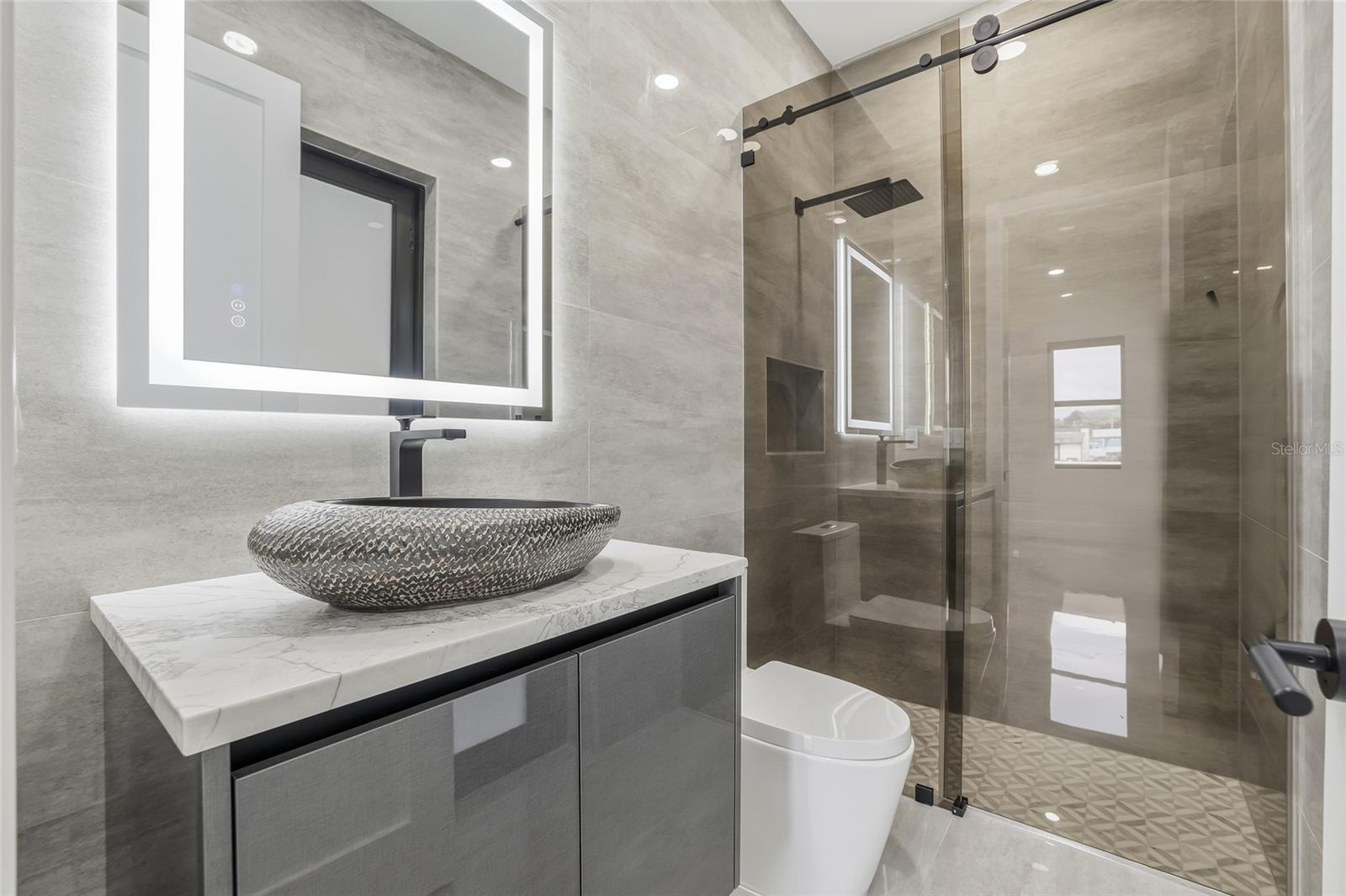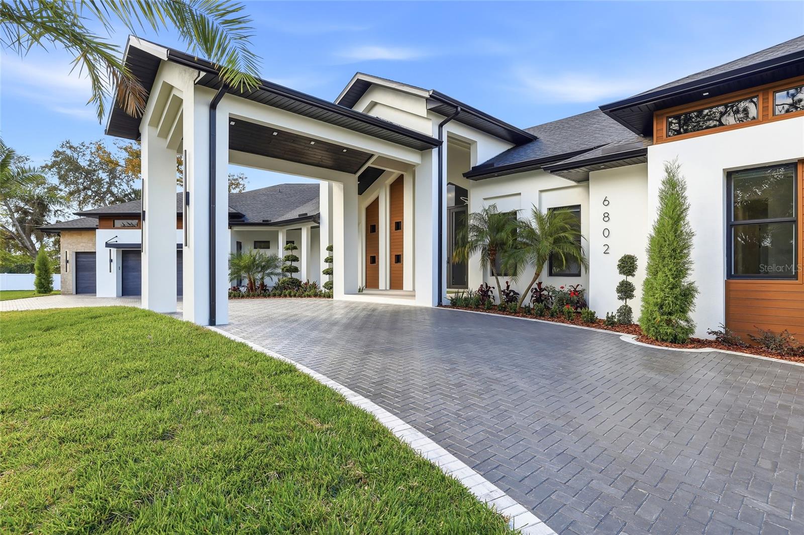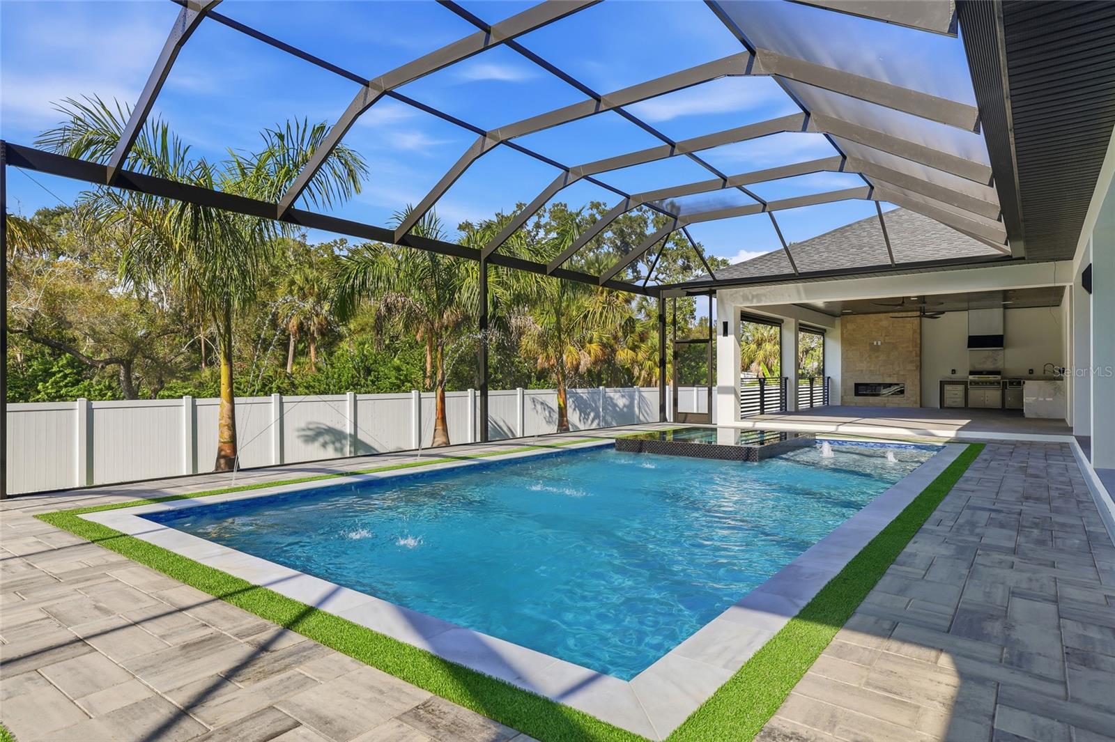 Exceptional new construction luxury home featuring 4 bedrooms, 3 bathrooms, and a 3-car garage, thoughtfully designed with privacy, sophistication, and premium upgrades throughout. The property is fully gated with an electric front gate and perimeter fencing, offering enhanced security and exclusivity. Gorgeous tile flooring flows throughout the entire home, while abundant natural light fills the living spaces, creating an elevated and truly luxurious living experience. High ceilings and custom designer finishes are complemented by motorized interior and exterior window treatments. The modern chef’s kitchen showcases custom cabinetry, a striking 48-inch built-in refrigerator, and high-end appliances, seamlessly opening to expansive living and dining areas. The home also includes a dedicated office, custom wine display with illuminated bar area, built-in entertainment center, and custom cabinetry throughout the kitchen, laundry room, closets, and living spaces. Outdoor living is equally impressive, featuring a panoramic screened pool enclosure, saltwater pool withl saltwater pool system, fully equipped outdoor kitchen, and an outdoor fireplace—ideal for entertaining year-round. Additional highlights include a covered carport entrance, insulated garage doors, pre-wiring for security cameras, a whole-home sound system with in-ceiling speakers indoors and outdoors, custom designer trim throughout, an irrigation system, and professionally designed landscaping with accent lighting. A rare opportunity to own a truly luxury gem where refined design, natural light, advanced technology, and comfort come together seamlessly. Perfectly positioned in a highly desirable central location, this home offers quick and convenient access to Tampa International Airport, major highways, downtown Tampa, and an exceptional selection of shopping, dining, and entertainment options, delivering both everyday convenience and an elevated lifestyle in one of Tampa’s most sought after areas.