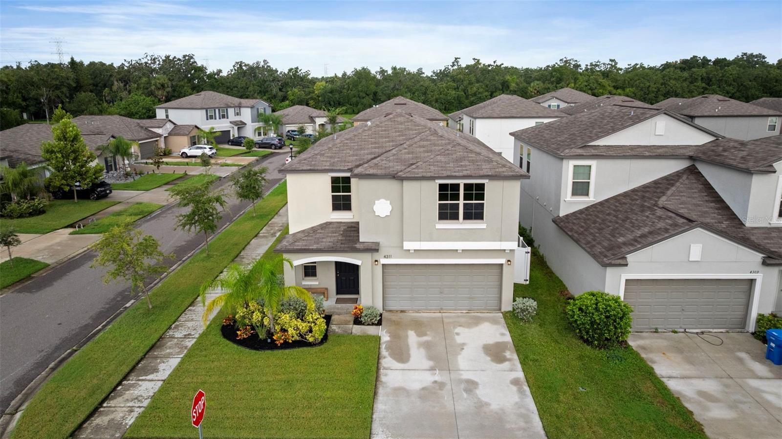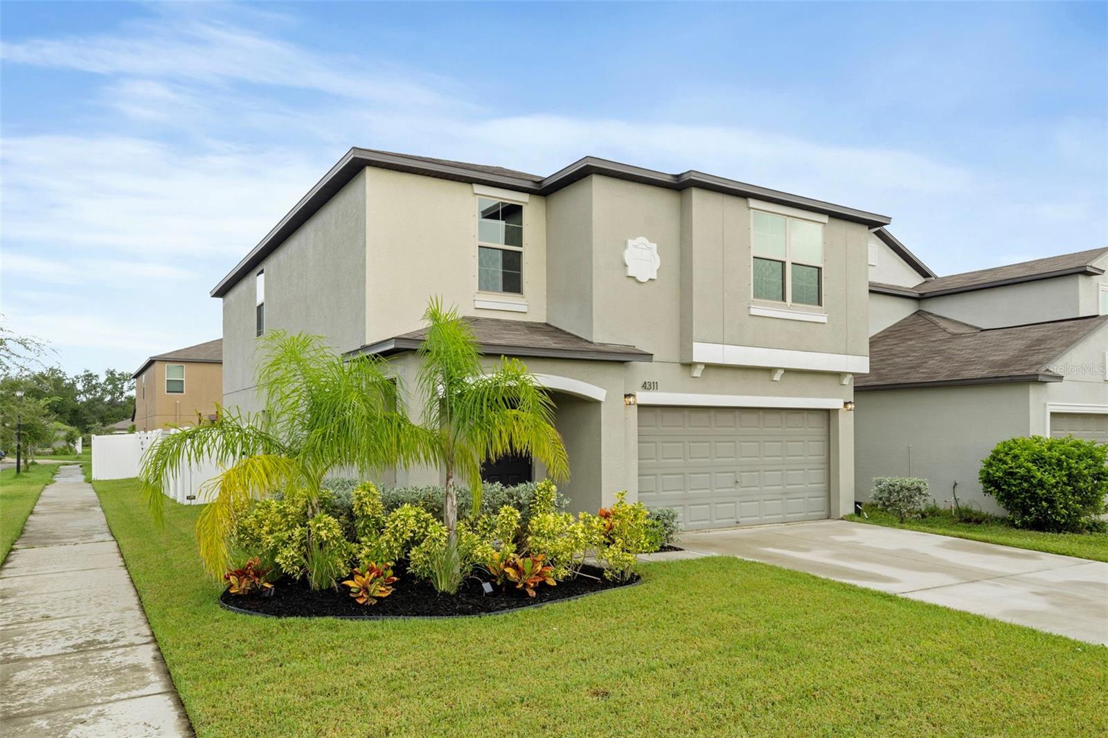 Welcome to this stunning corner-lot home on Romano Busciglio Street, offering 5 bedrooms (PLUS a loft!), 2.5 bathrooms, and 2,264 square feet of thoughtfully designed living space, maximizing every nook and cranny. This residence combines a bright, open floor plan with tasteful upgrades, making it truly move-in ready. Built in 2021, and located high and dry, with no flood insurance required and hurricane shutters that convey, this home is the epitome of easy maintenance and low stress. Step inside to be greeted by abundant natural light, tiled and low-maintenance floors, a wide entry hallway, and a beautifully upgraded half bath featuring stylish wall paneling, fixtures, and modern paint colors. The spacious living room flows seamlessly into the dining area and upgraded kitchen, creating the perfect space for entertaining. The kitchen boasts double-stacked upper cabinets, drawing the eye upward to accentuate the high ceilings and enhancing the sense of space. The kitchen also has stainless steel appliances, plenty of countertop space, a pantry, and a huge, custom-painted kitchen island overlooking the living space! The adjacent laundry room has been transformed with custom wall paneling, a folding station, and additional storage straight out of Pinterest inspiration. Upstairs, a versatile loft offers additional living space, ideal for a media room, play area, or home office; There is even a custom-made undermount media center that conveys! The massive primary suite includes a walk-in closet and a spacious en-suite bathroom with dual sinks, a private water closet, a walk-in shower, and plenty of natural light. Four additional bedrooms and another full bathroom complete the second floor, each offering ample closet space with a layout that is perfection. The completely vinyl-fenced backyard provides a private outdoor retreat, perfect for relaxing or entertaining with TWO tranquil pavered areas with plenty of room to enjoy outdoor seating or create your own backyard oasis. There is a double gate located on the north side of the fence, enabling the owners of the home to pull RVs, Boats, equipment, etc, through! The Touchstone neighborhood is a true planned community, with a resort-style pool, gym, playground, and clubhouse! The location is ideal as well, as it is close to shopping, 15 minutes from downtown, and close to highways. No matter where you need to go, you are only 10-15 minutes away!