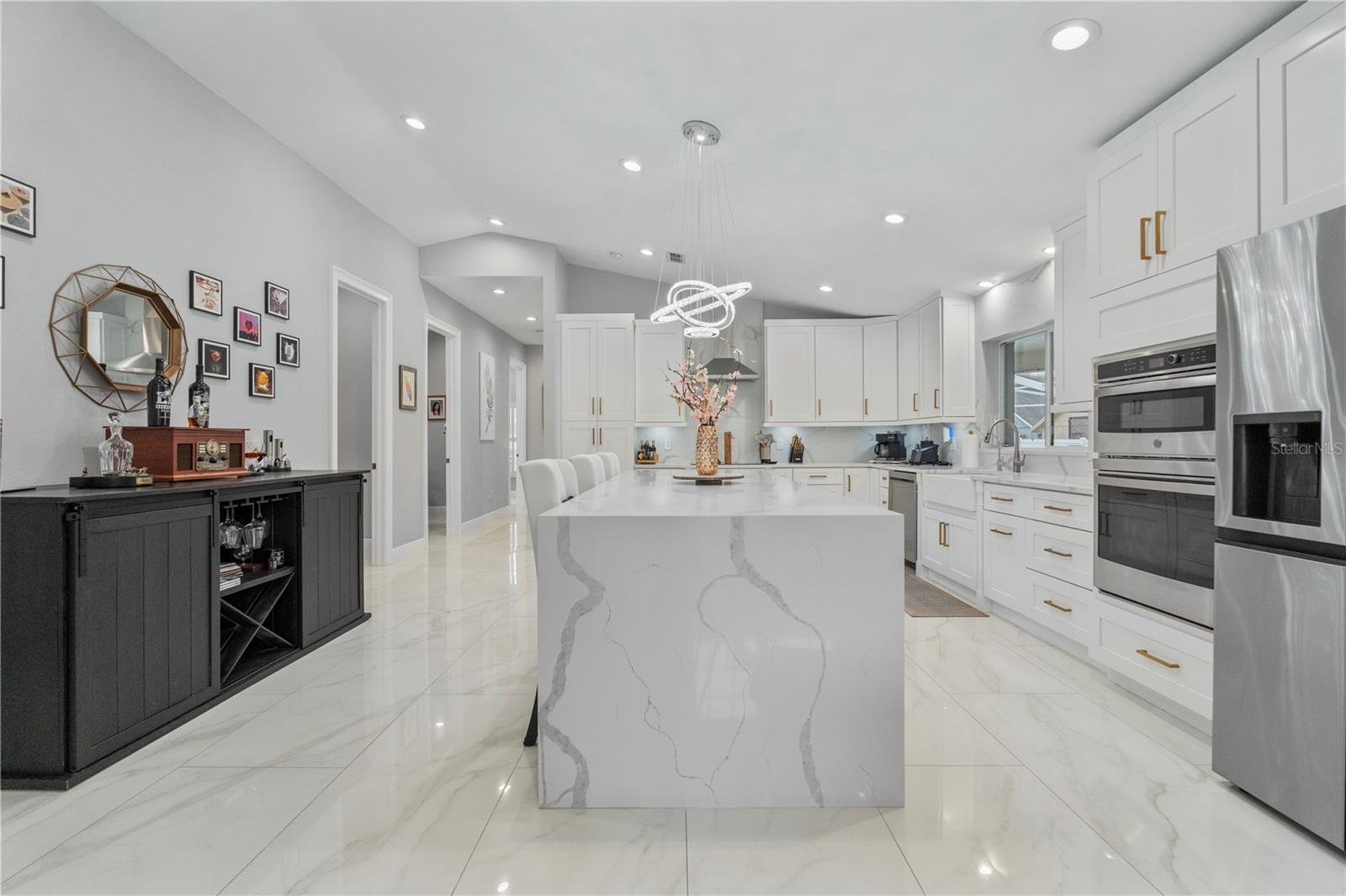 Welcome to this beautifully renovated 5-bedroom, 4-full-bath home located in the highly sought-after Greater Carrollwood area. Offering over 2,000 square feet of thoughtfully designed living space, this home is filled with natural light and features a clean, modern all-white aesthetic throughout. The main living area showcases a striking fireplace set against a custom stone wall, creating a warm and elegant focal point. The heart of the home is a true chef’s kitchen, completely updated with high-end finishes and generous counter space—perfect for entertaining and everyday living. Every detail has been carefully upgraded, making this home truly move-in ready. The spacious primary suite features a luxurious bathroom complete with both a soaking tub and a separate stand-up shower, offering a spa-like retreat. All bathrooms have been fully updated with modern finishes. Step outside to your private screened in and fully fenced backyard, featuring a heated pool and jacuzzi, ideal for year-round enjoyment. Recent major improvements provide peace of mind, including a brand-new 2025 AC unit, a 2020 roof, new pool water heater, and hurricane shutters for added protection. Perfectly situated near top-rated schools, shopping, dining, and major roadways, this home combines luxury, comfort, and convenience in one exceptional package.Schedule your showing now, this home will go fast!