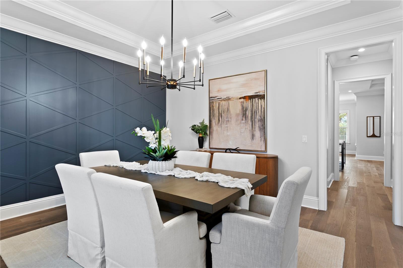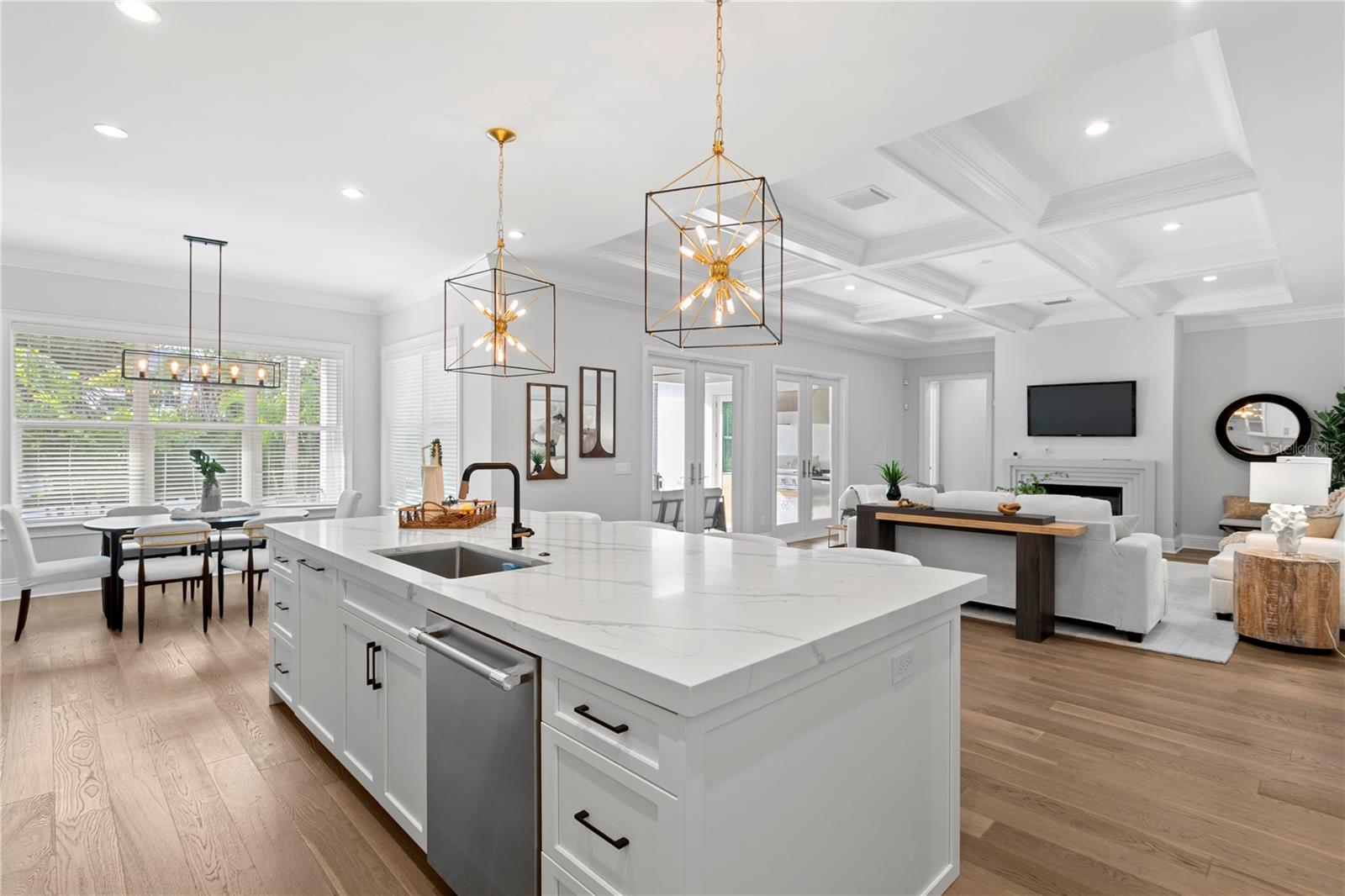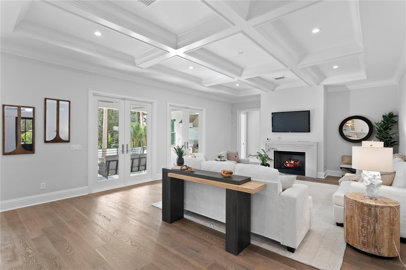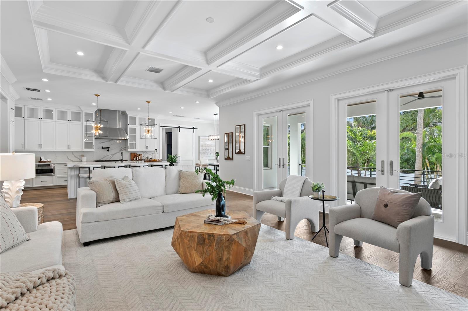 This custom-built Brookshire Homes residence showcases a thoughtfully designed floor plan that seamlessly balances elegance, comfort, and everyday functionality. Positioned on an expansive oversized lot measuring 90x143 (12,870 square feet) in the highly desirable Sunset Park neighborhood of South Tampa, the home offers 5 bedrooms, 6 full bathrooms, a dedicated office, a bonus room, a resort-style pool, and a four-car garage. A striking two-story foyer welcomes you inside, where soaring ceilings create an immediate sense of grandeur. The entry is flanked by a formal dining room and a private office or formal living space, perfectly placed for both entertaining and quiet productivity. Designed with livability in mind, the open-concept main living area and kitchen are filled with natural light from oversized windows and elegant French doors that frame serene views of the pool, lanai, and landscaped backyard. Throughout the home, custom finishes elevate the design, including hardwood floors, crown molding, coffered ceilings, and curated lighting. The chef’s kitchen is as functional as it is beautiful, featuring a six-burner gas range, oversized Thermador refrigerator, a large center island with generous storage, a hidden walk-in pantry with built-in shelving, an eat-in dining area, and a butler’s pantry with a full-size wine refrigerator. The adjacent living space is anchored by a gas fireplace, creating a warm and inviting hub for daily living and entertaining. The first-floor layout offers exceptional versatility, with a private guest suite featuring a marble-tiled en-suite bathroom, ideal for visitors or multigenerational living. A spacious bonus or flex room overlooks the pool and backyard and provides direct outdoor access, while a conveniently located pool bath, laundry room, mudroom, and additional storage enhance the home’s day-to-day functionality. Upstairs, the well-planned second level is anchored by the luxurious primary retreat, complete with a sitting area, spa-like en-suite bathroom, and an expansive walk-in closet with an island, designer built-ins, and direct access to the second-floor laundry room. Three additional upstairs bedrooms each include en-suite bathrooms with striking tile designs and custom storage, ensuring privacy and comfort for all. Designed for seamless indoor-outdoor living, the backyard retreat features a covered lanai, outdoor kitchen, and expansive pool deck—perfect for entertaining or relaxing in the Florida sunshine. Located on a quiet, upscale street within the sought-after Plant High School district, this exceptional home offers a prime South Tampa location with a floor plan that truly supports both refined living and everyday ease.